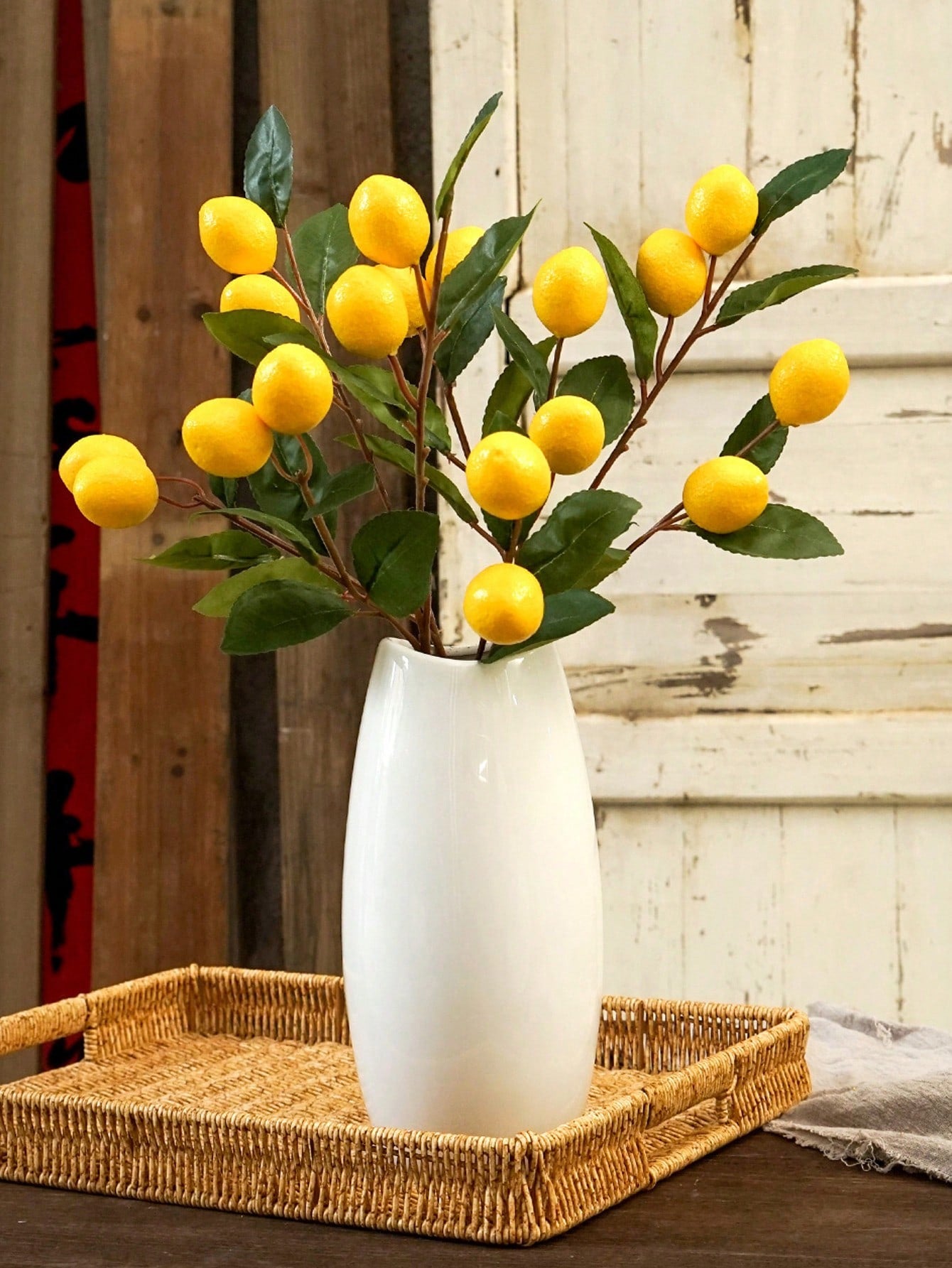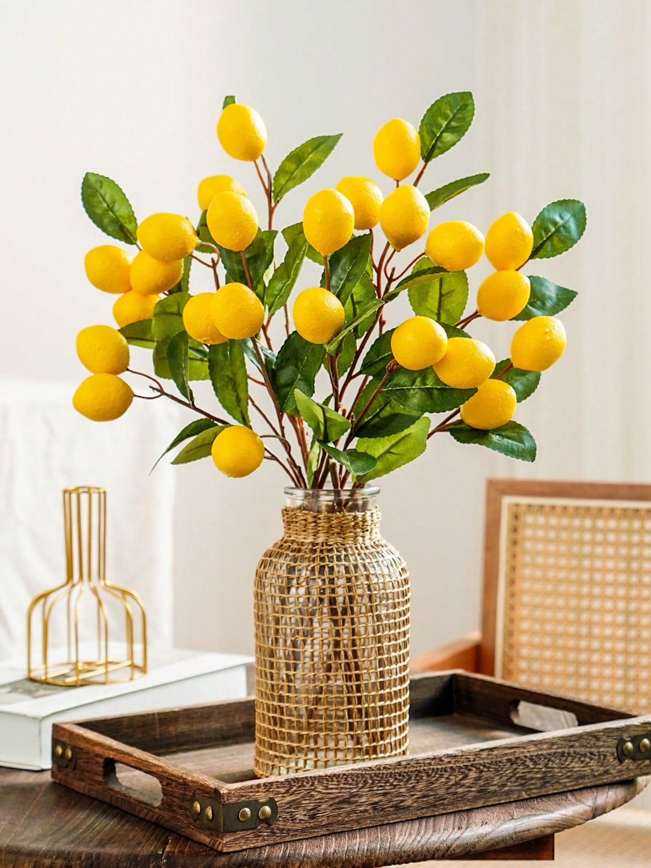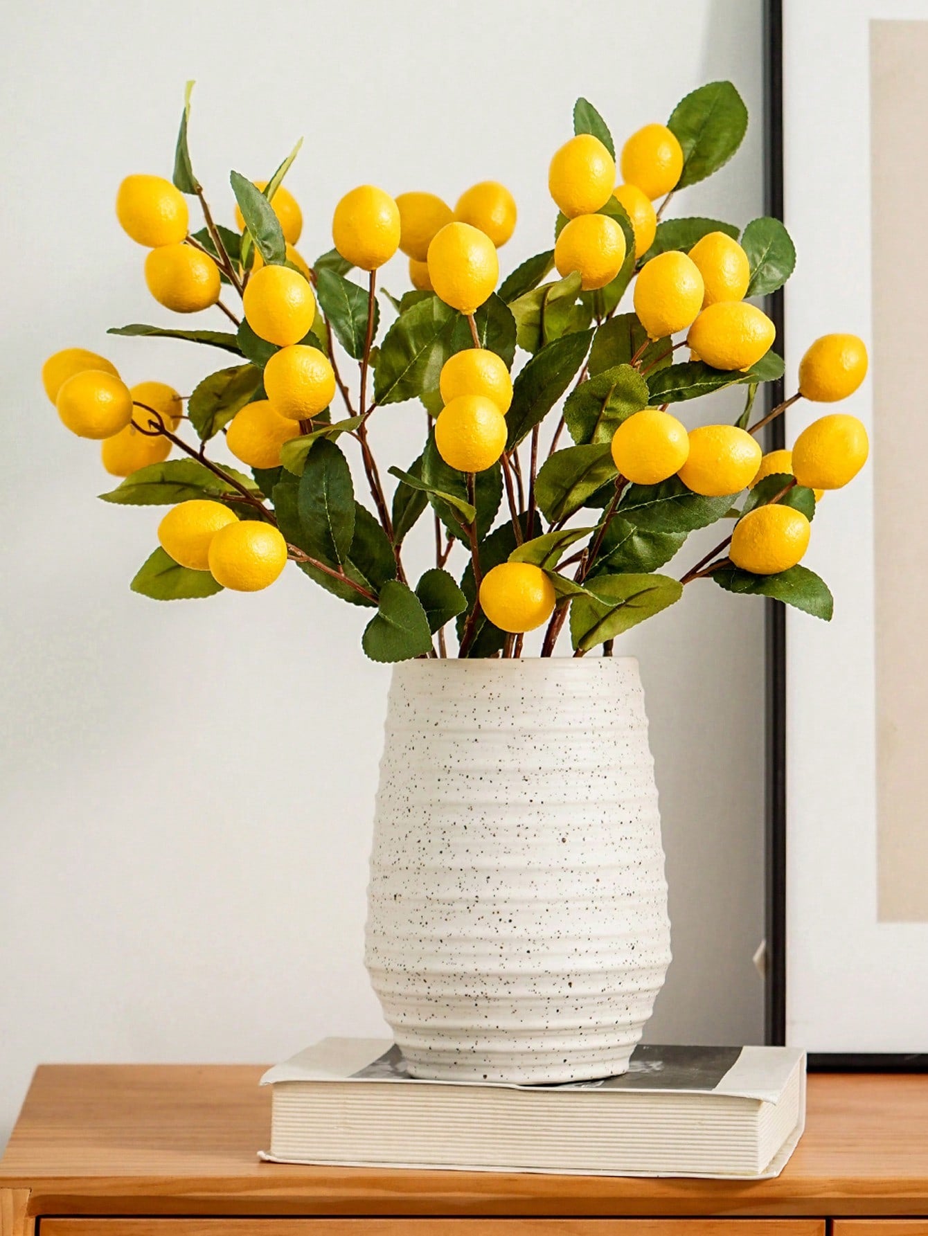 3 قطع من سيقان الليمون الاصطناعية مع 6 حبات ليمون - سيقان فاكهة ليمون صناعية واقعية