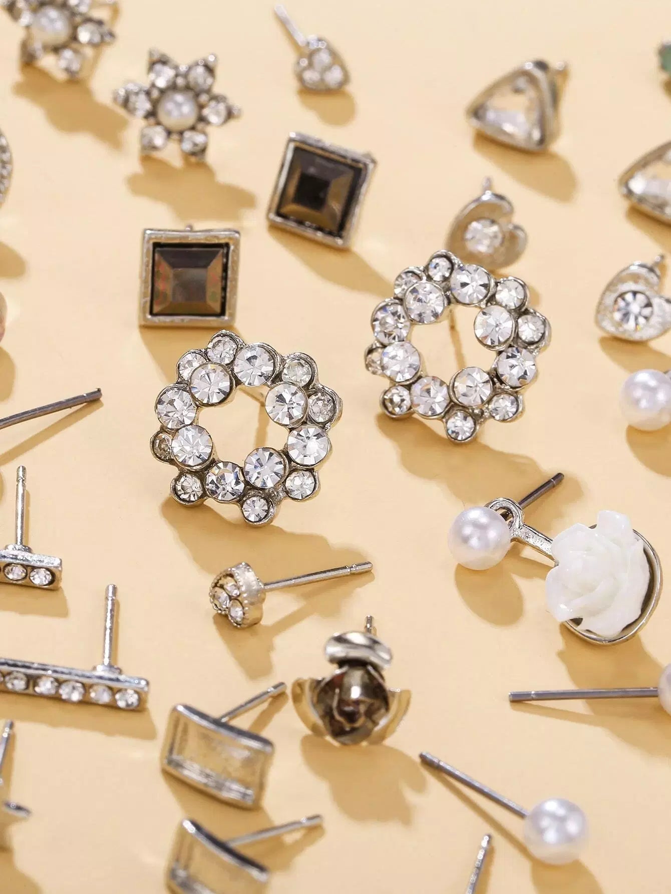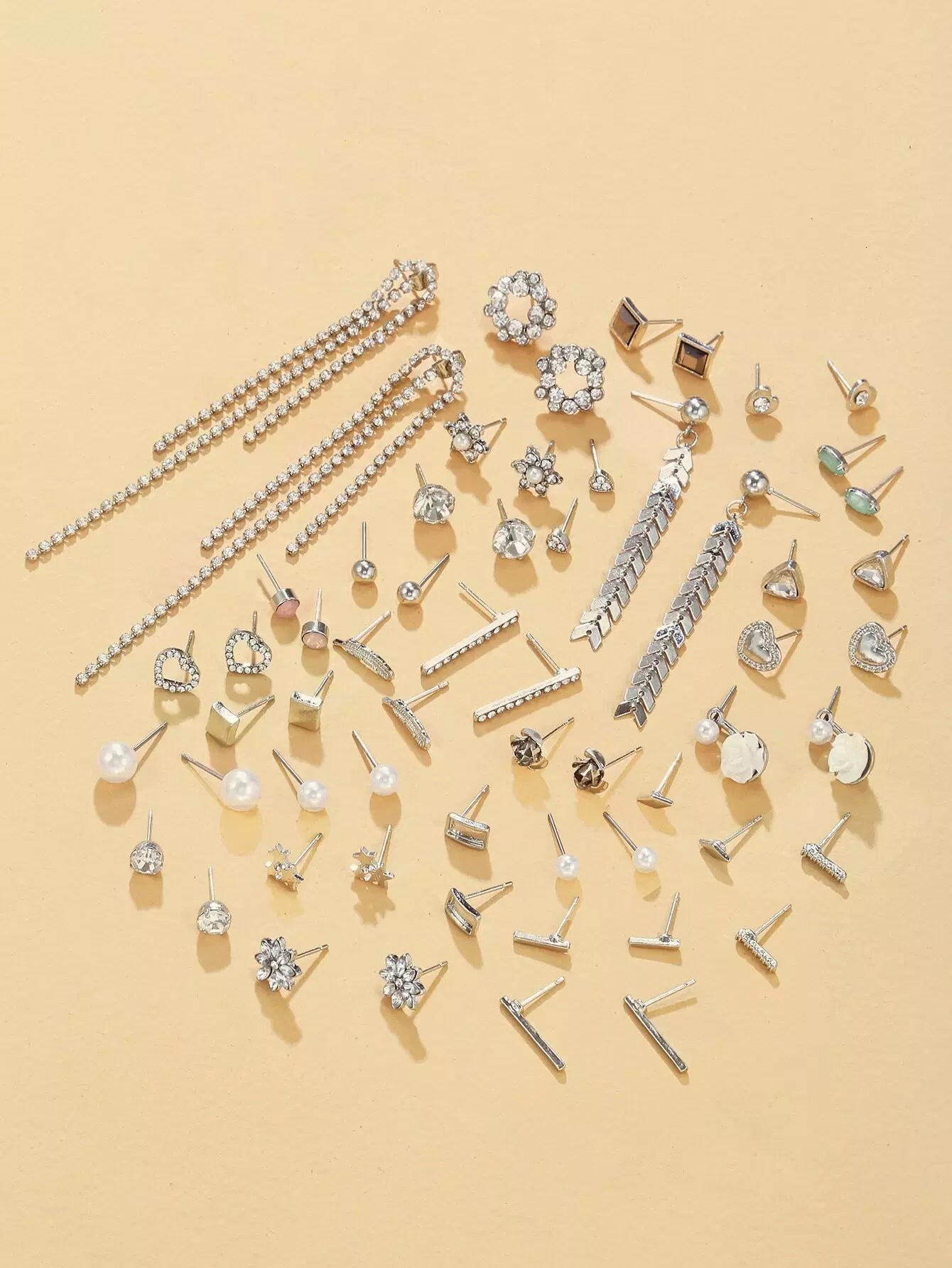 مجموعة من 30 زوجًا من أقراط الزهور على شكل قلب