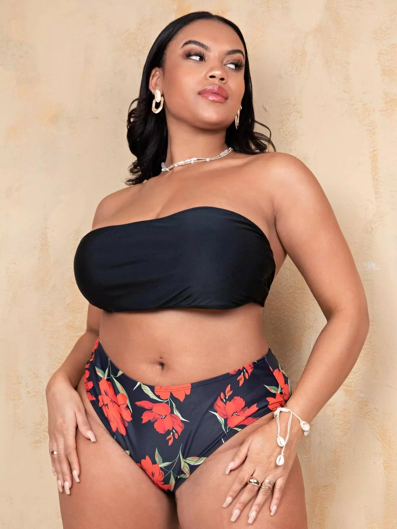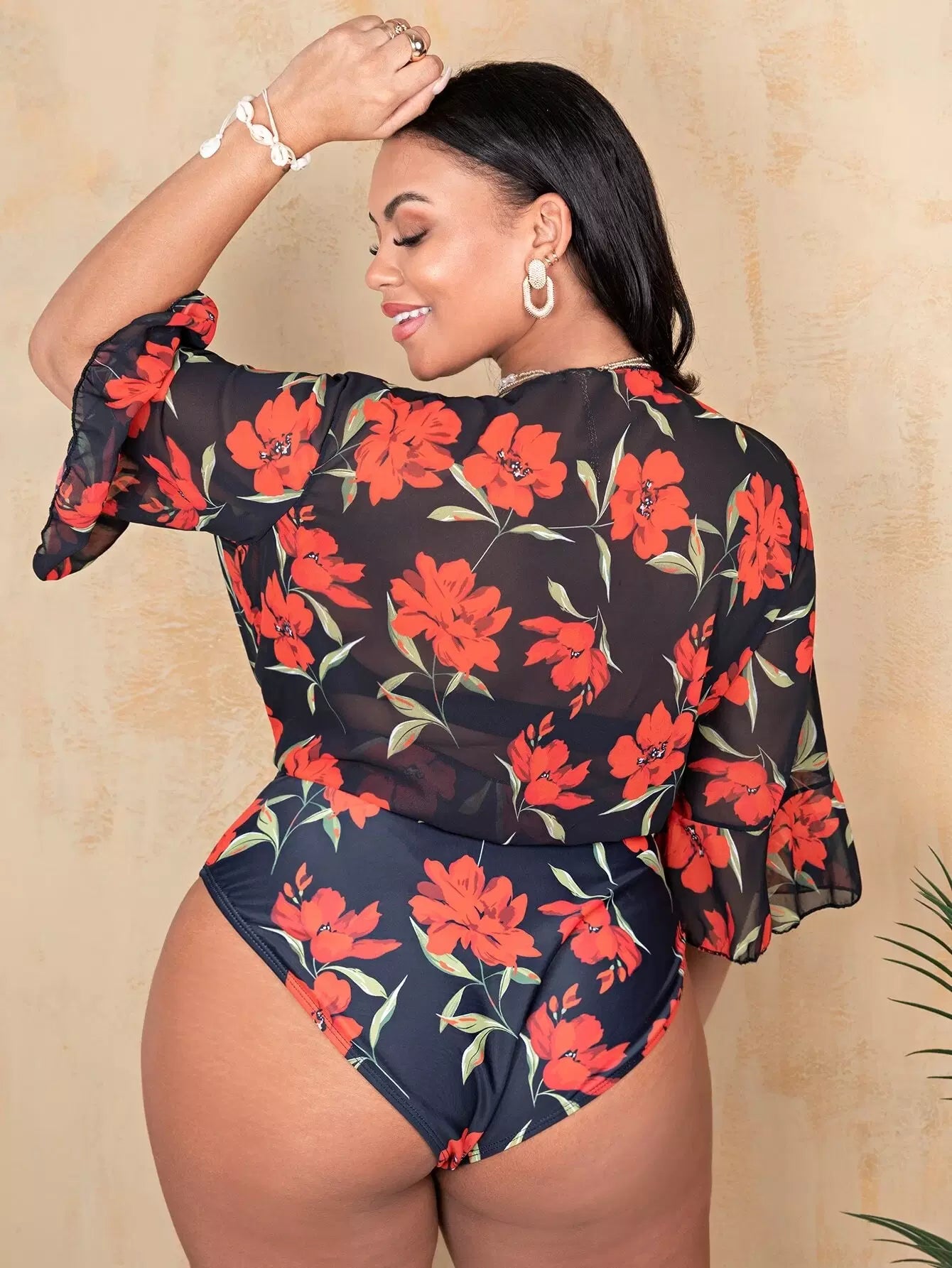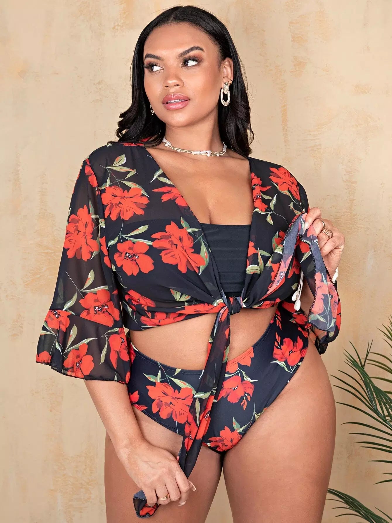 3 عبوات ملابس سباحة بيكيني مطبوع عليها زهور مع كيمونو