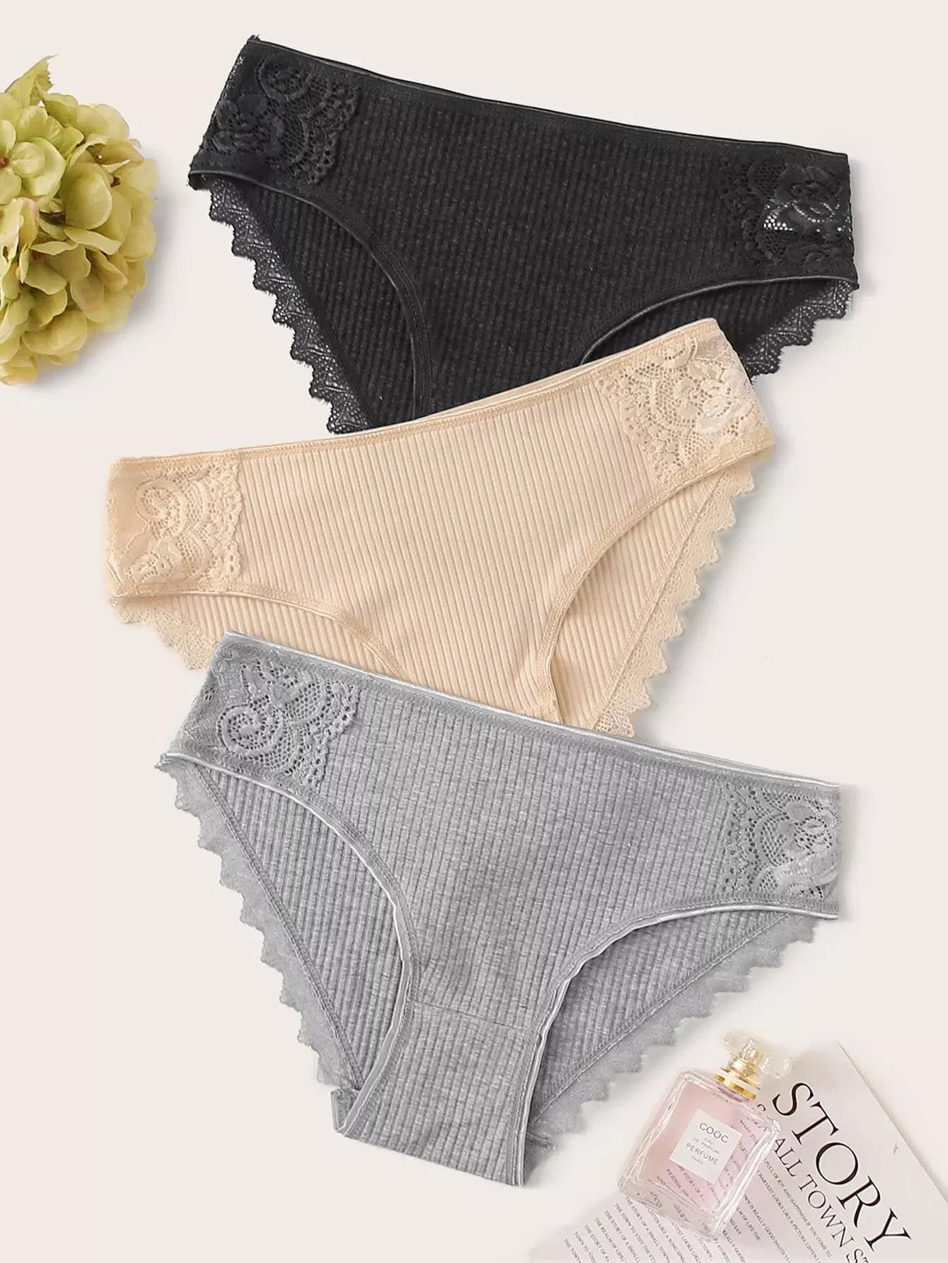طقم 3 عبوات من الدانتيل المضلع بلون مغاير من الدانتيل