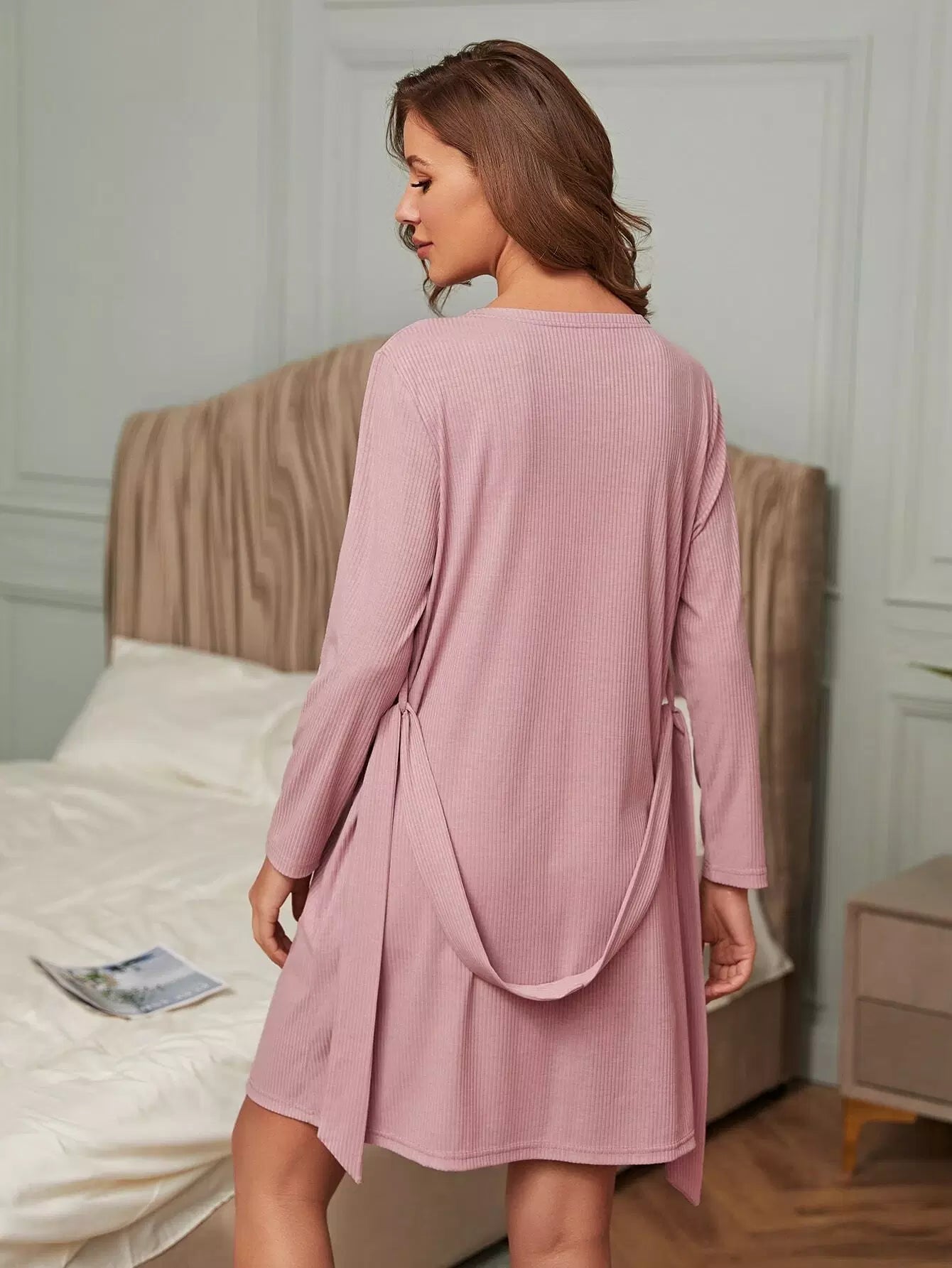 طقم 3 عبوات من 3 قطع قميص قصير سادة وشورت قصير وروب استرخاء