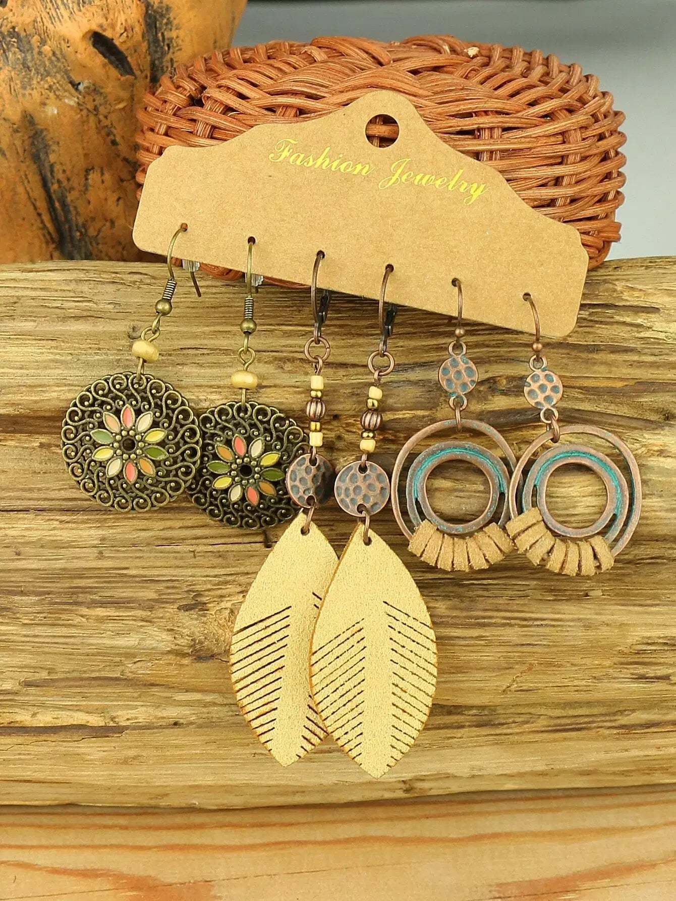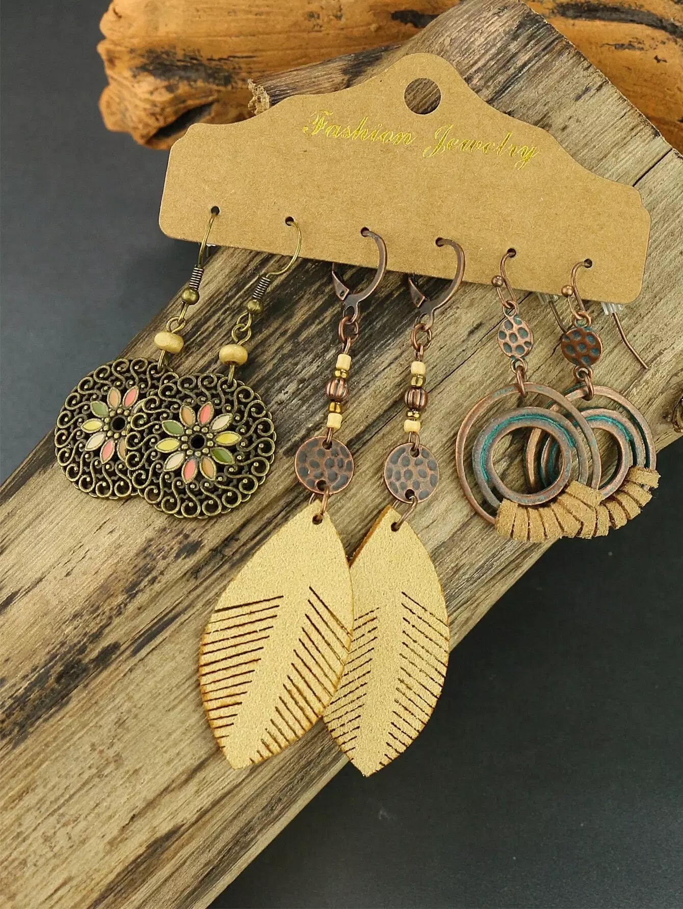 3 أزواج من أقراط متدلية على شكل أوراق الشجر