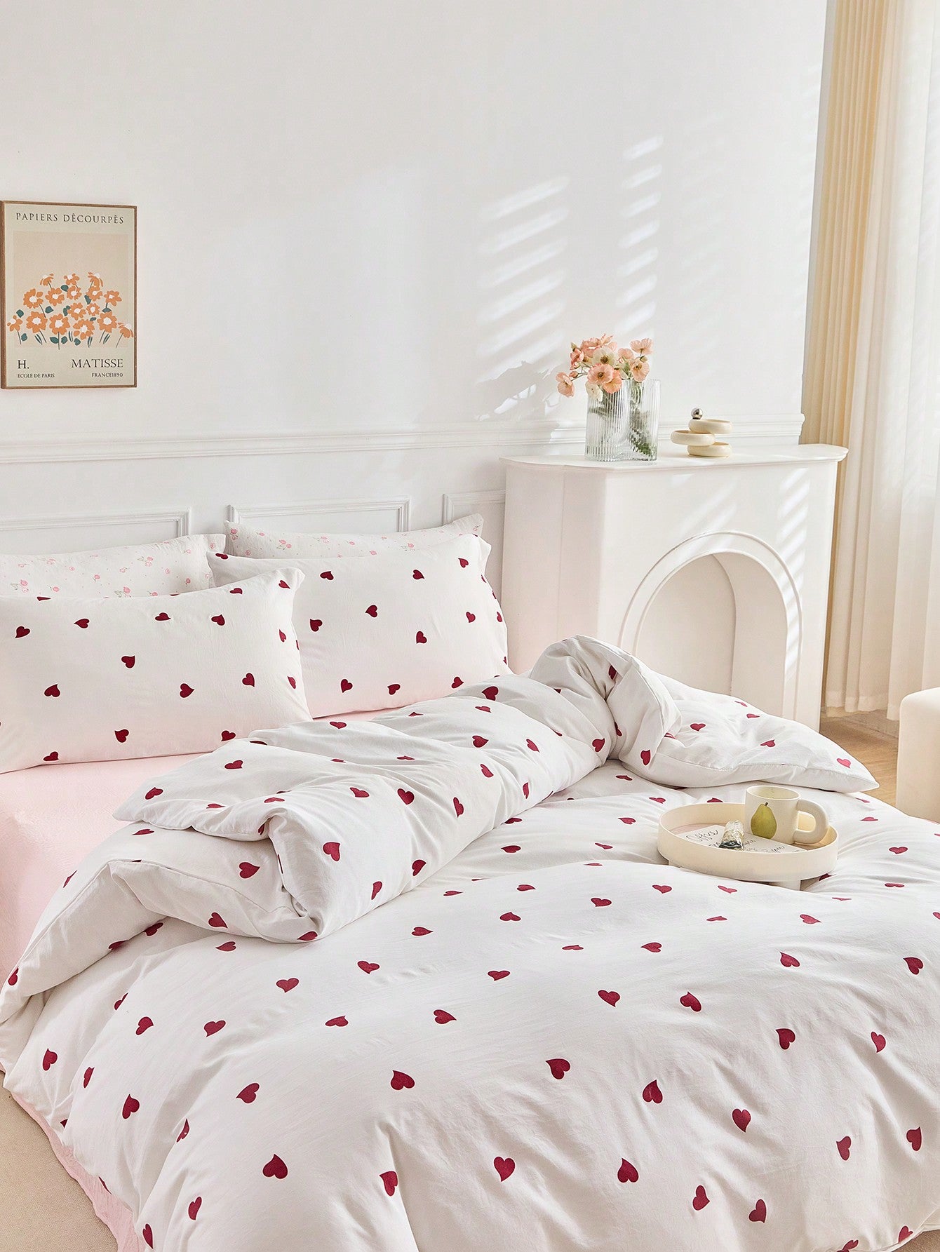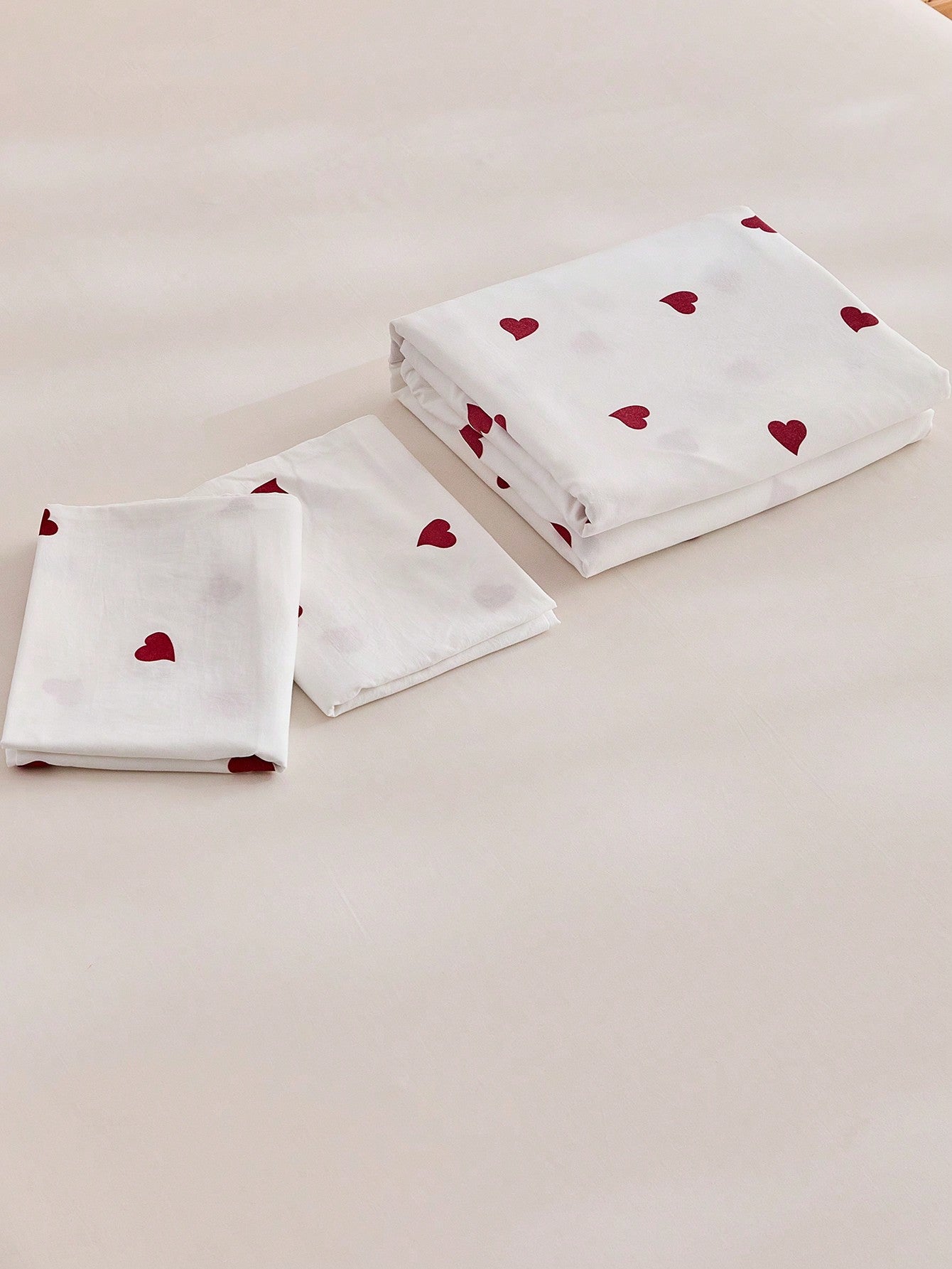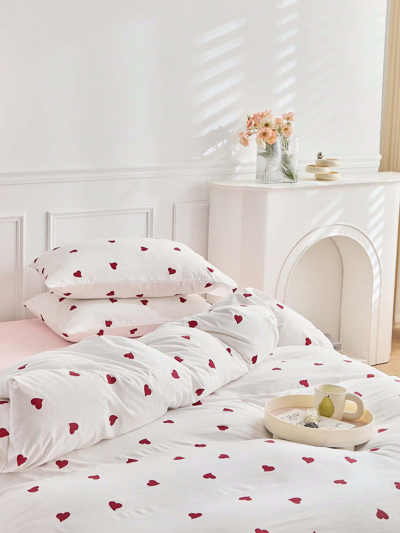 طقم لحاف مكون من 3 قطع، مصنوع من البوليستر بنسبة 100%، بنقشة قلوب لطيفة