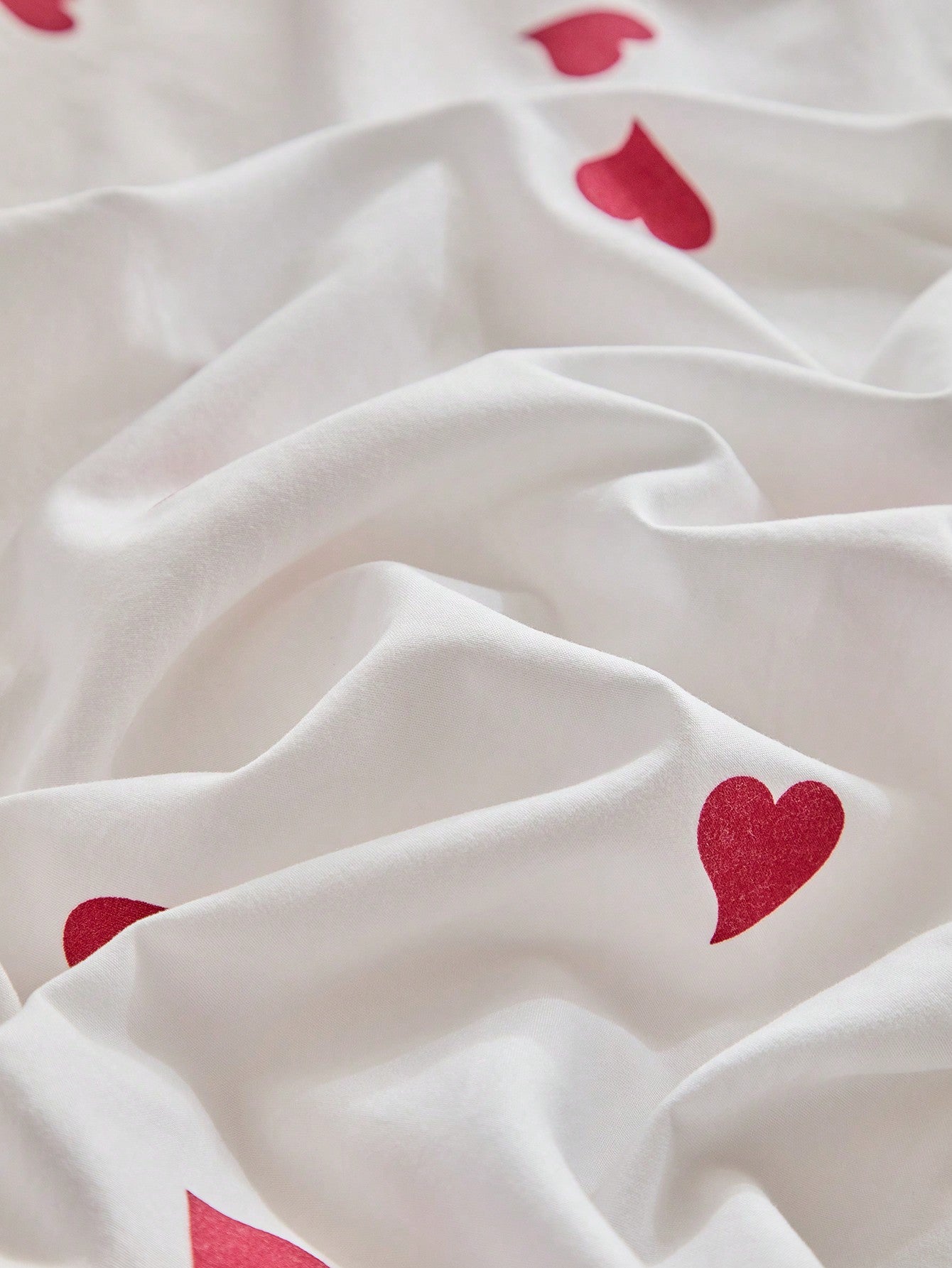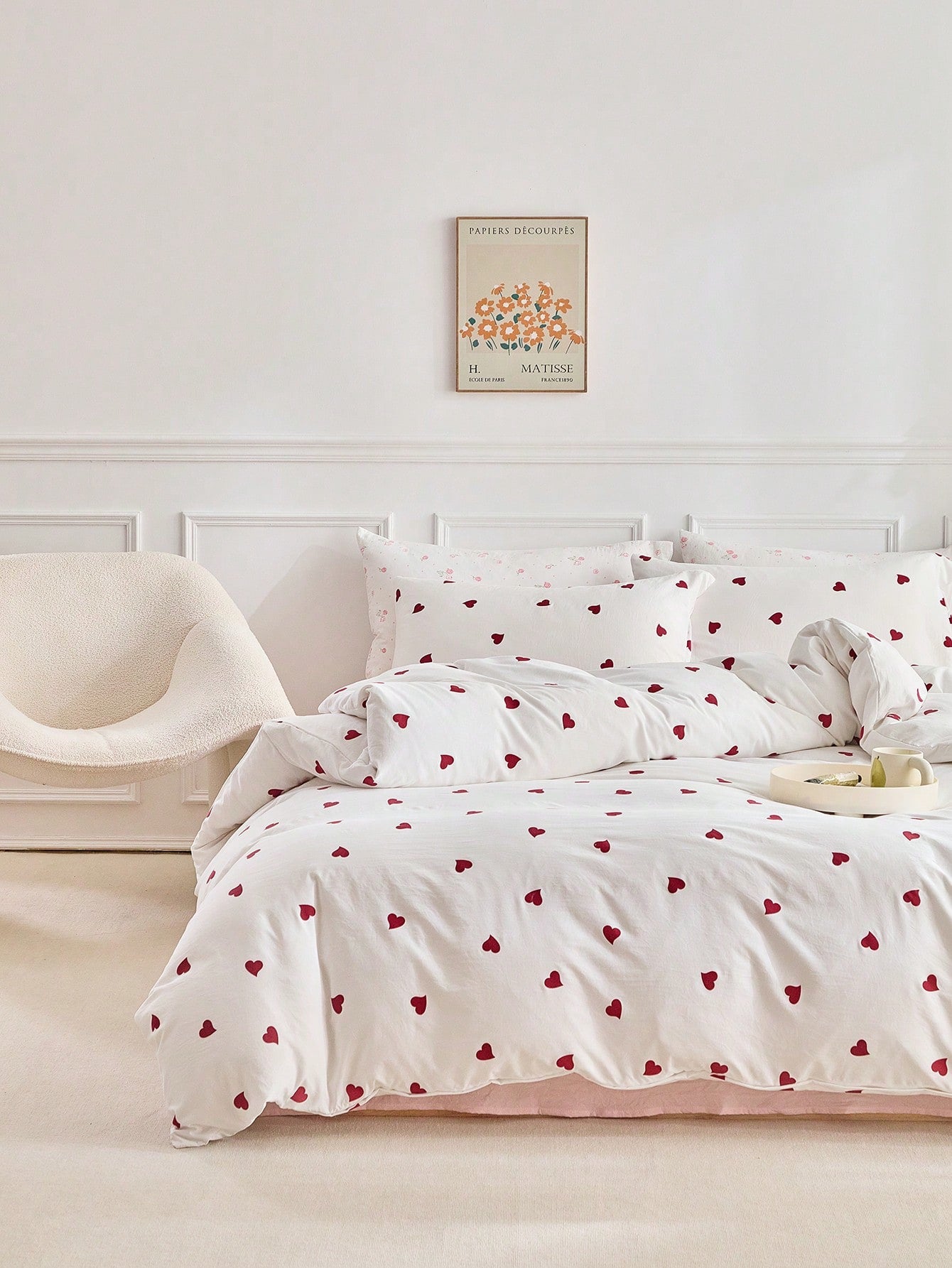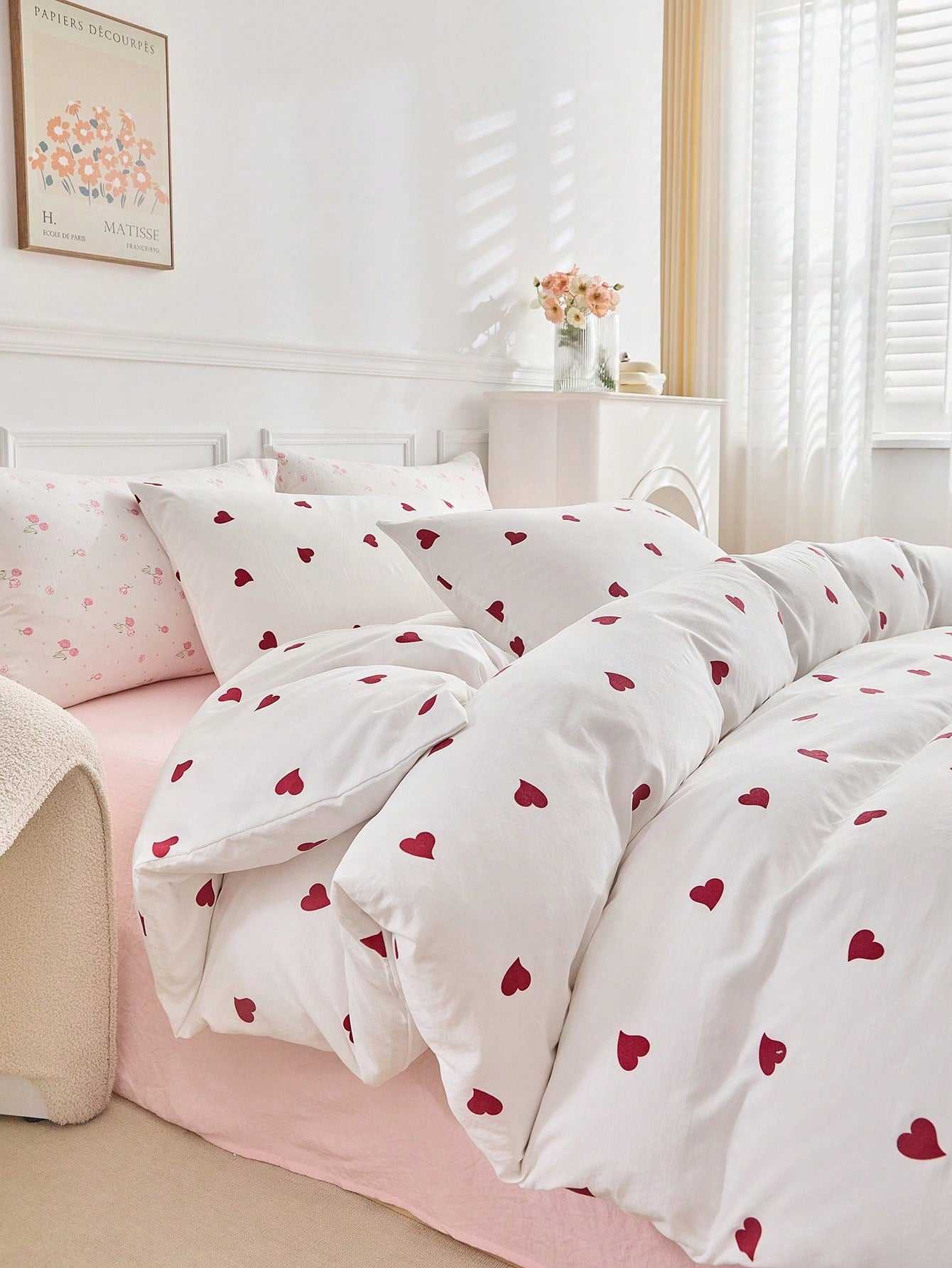 طقم لحاف مكون من 3 قطع، مصنوع من البوليستر بنسبة 100%، بنقشة قلوب لطيفة