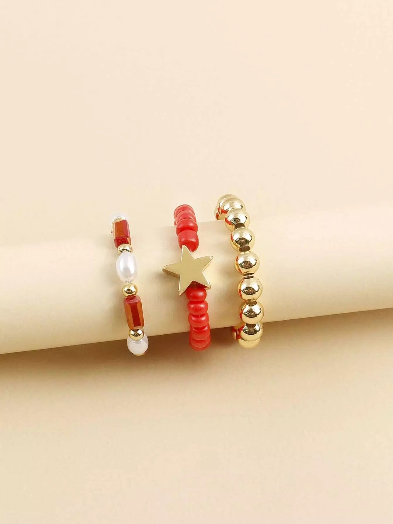 3 قطع من حلقات الخرز المزخرفة على شكل نجمة