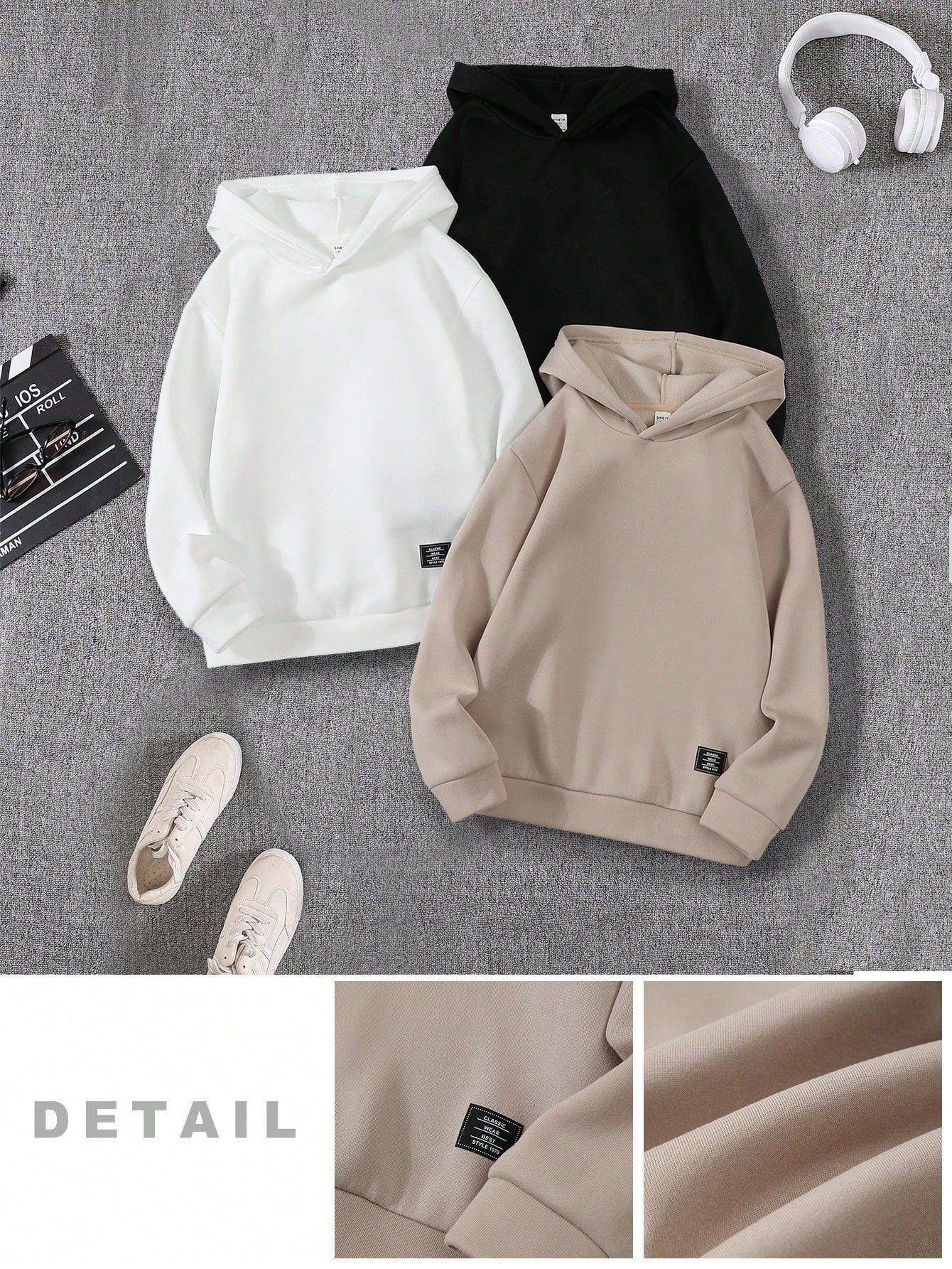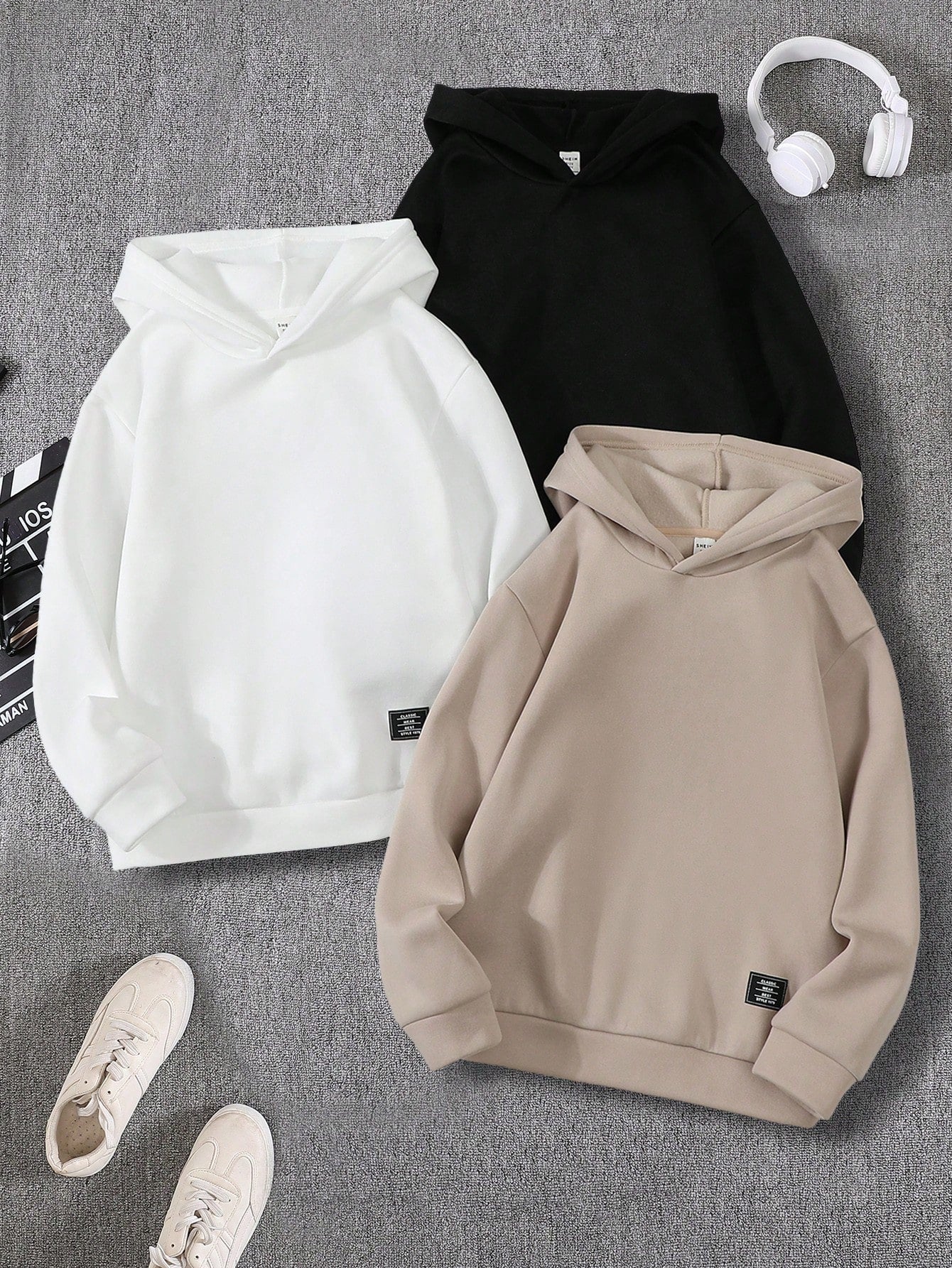مجموعة من 3 قطع من قمصان سويت شيرت بغطاء رأس مطبوعة كاجوال للأولاد، مناسبة للتنقل والمدرسة والارتداء اليومي غير الرسمي