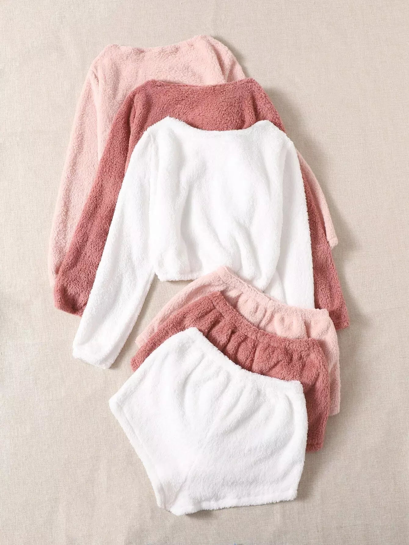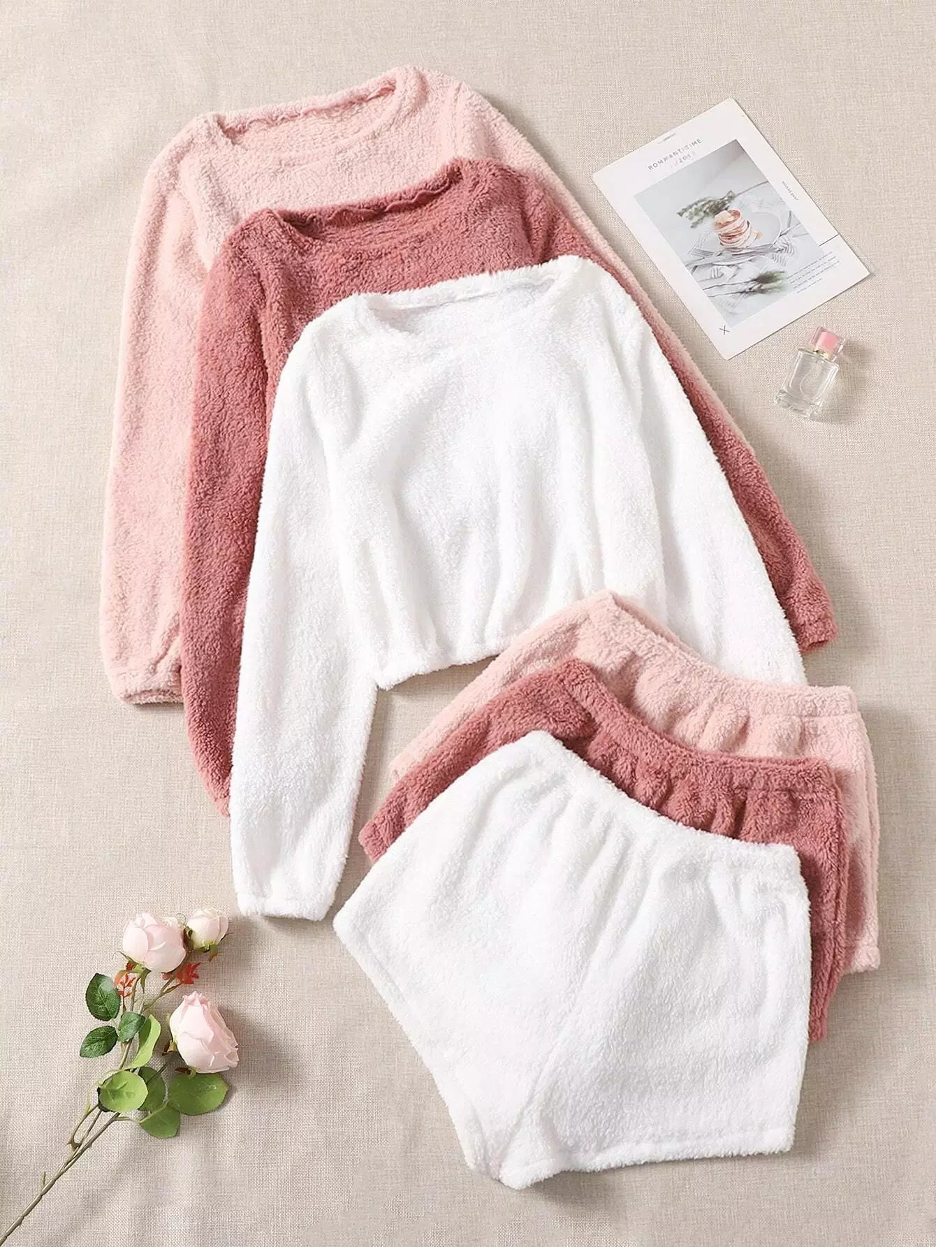 طقم بيجامة مكون من 3 قطع من قميص وشورت من الفلانيل