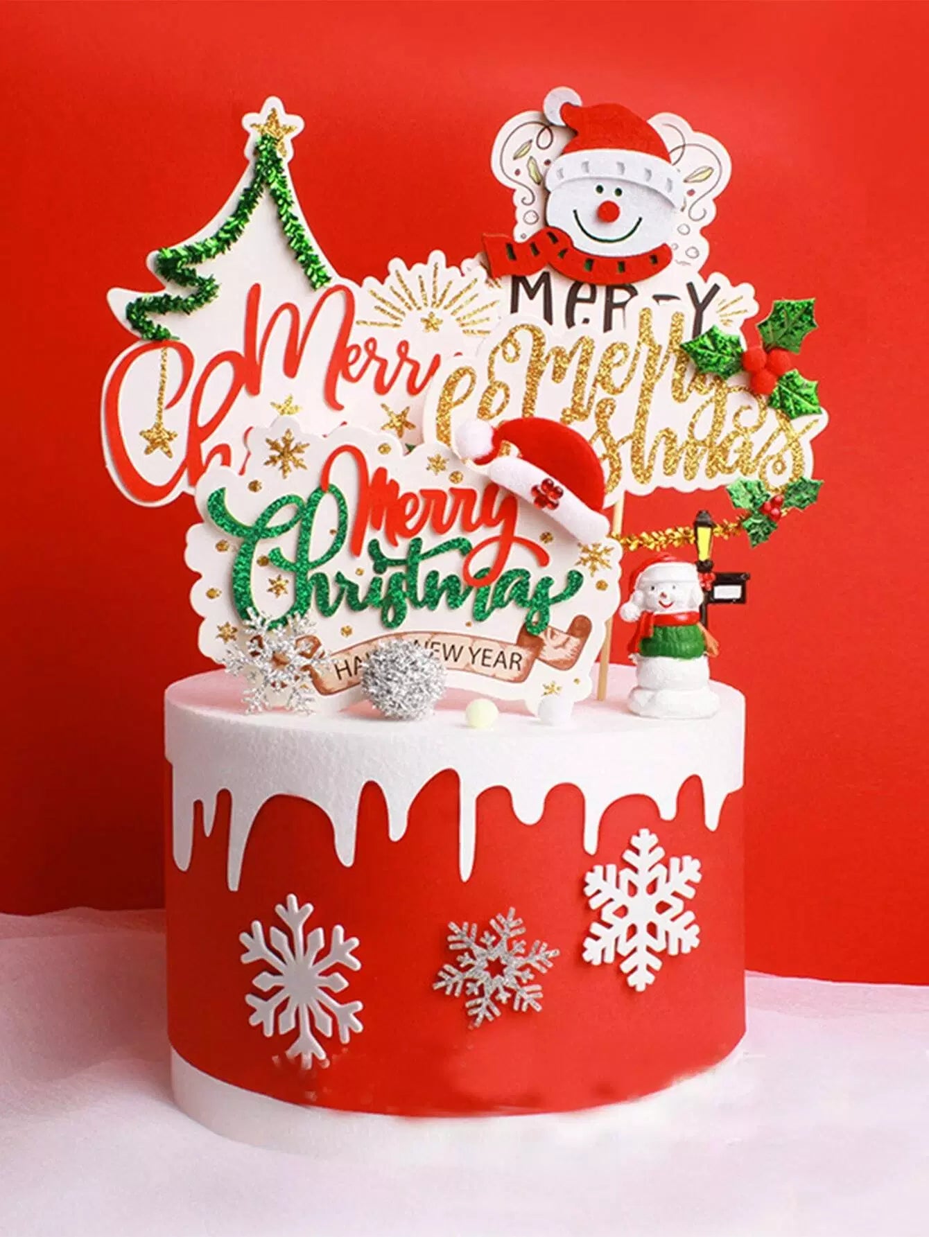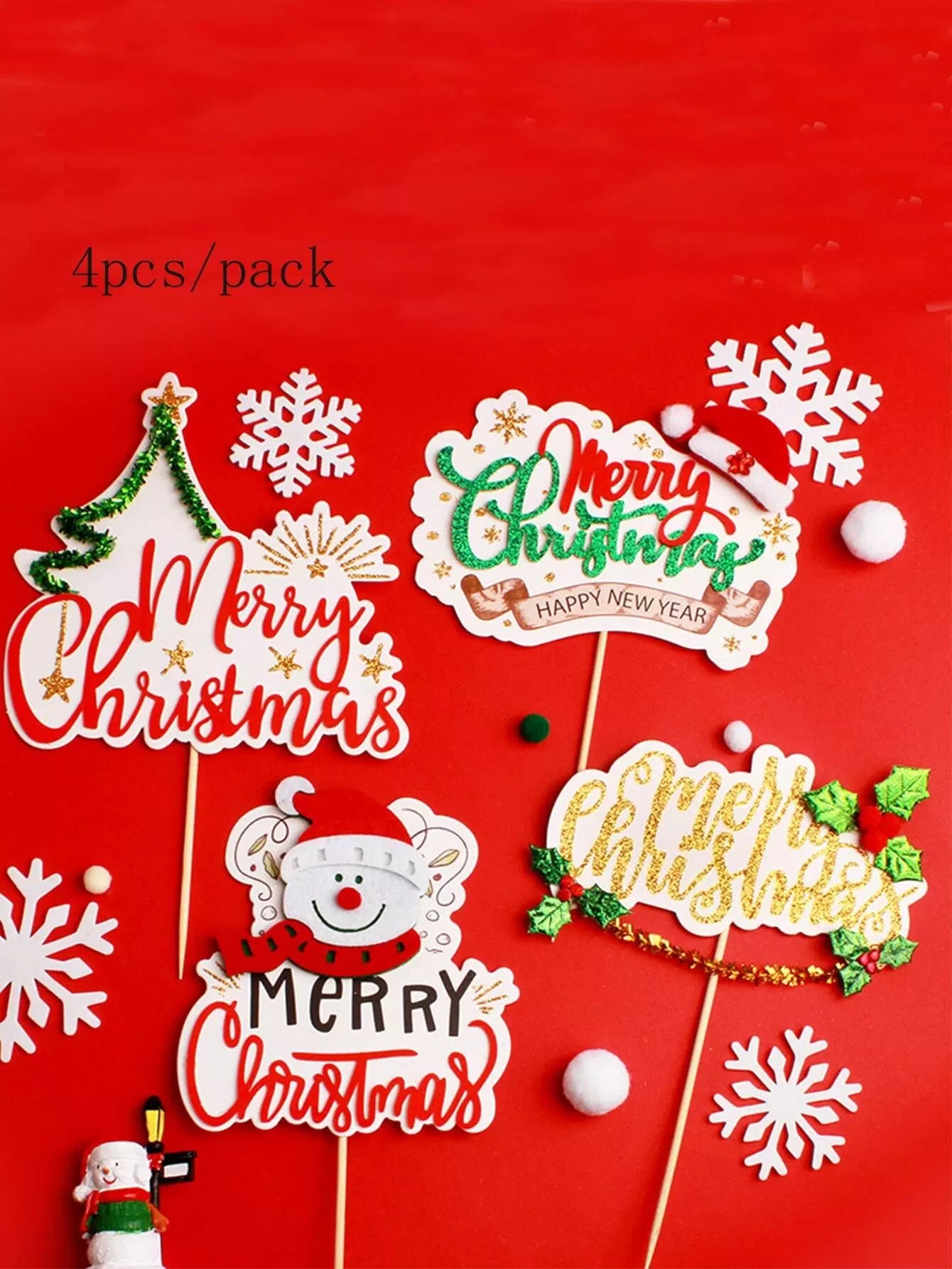 طقم تزيين الكيك المزخرف للكريسماس 4 قطع