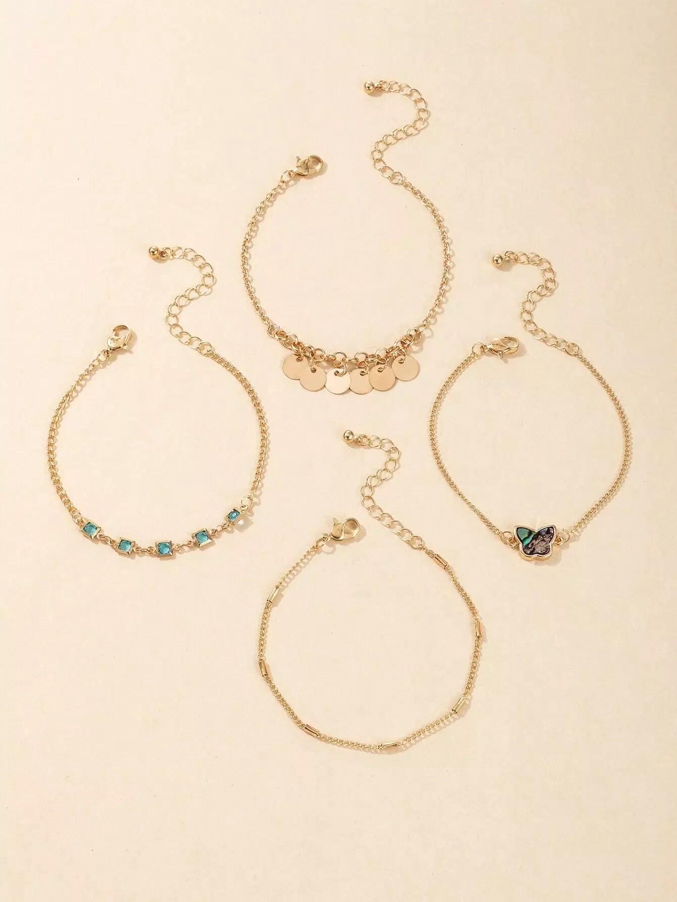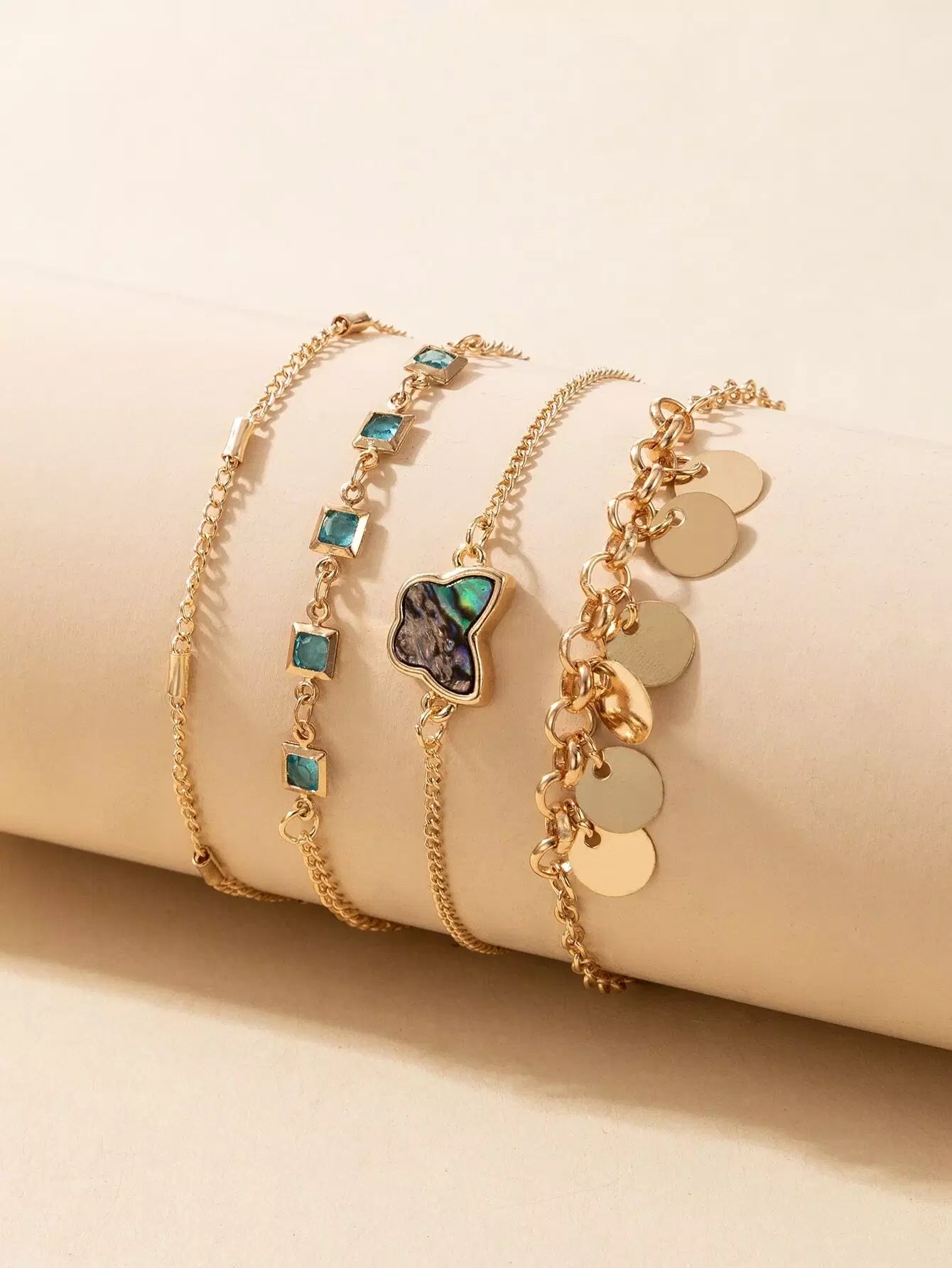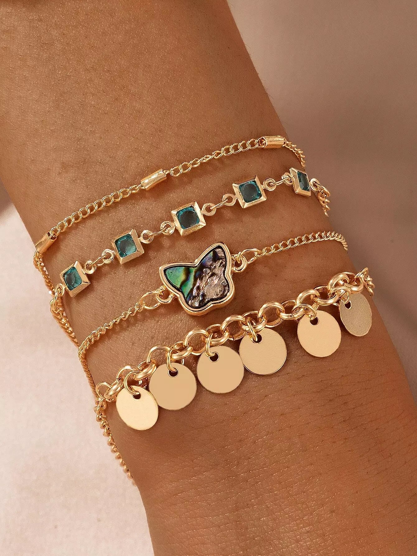 سوار مكون من 4 قطع على شكل قرص مزين بزخارف الفراشة