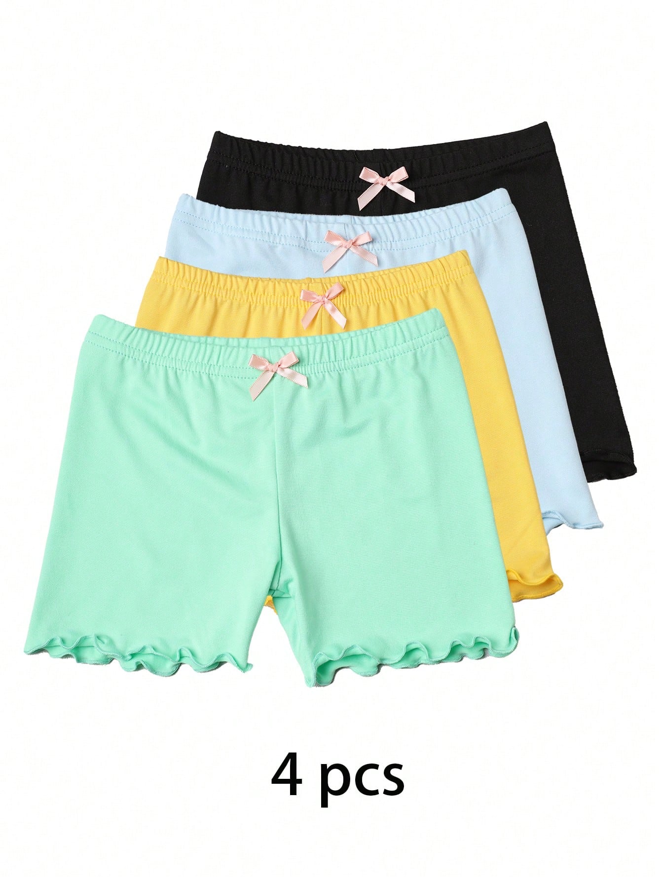 4pcs Girls Thin Shorts With Ruffle Hem To Prevent Flashing