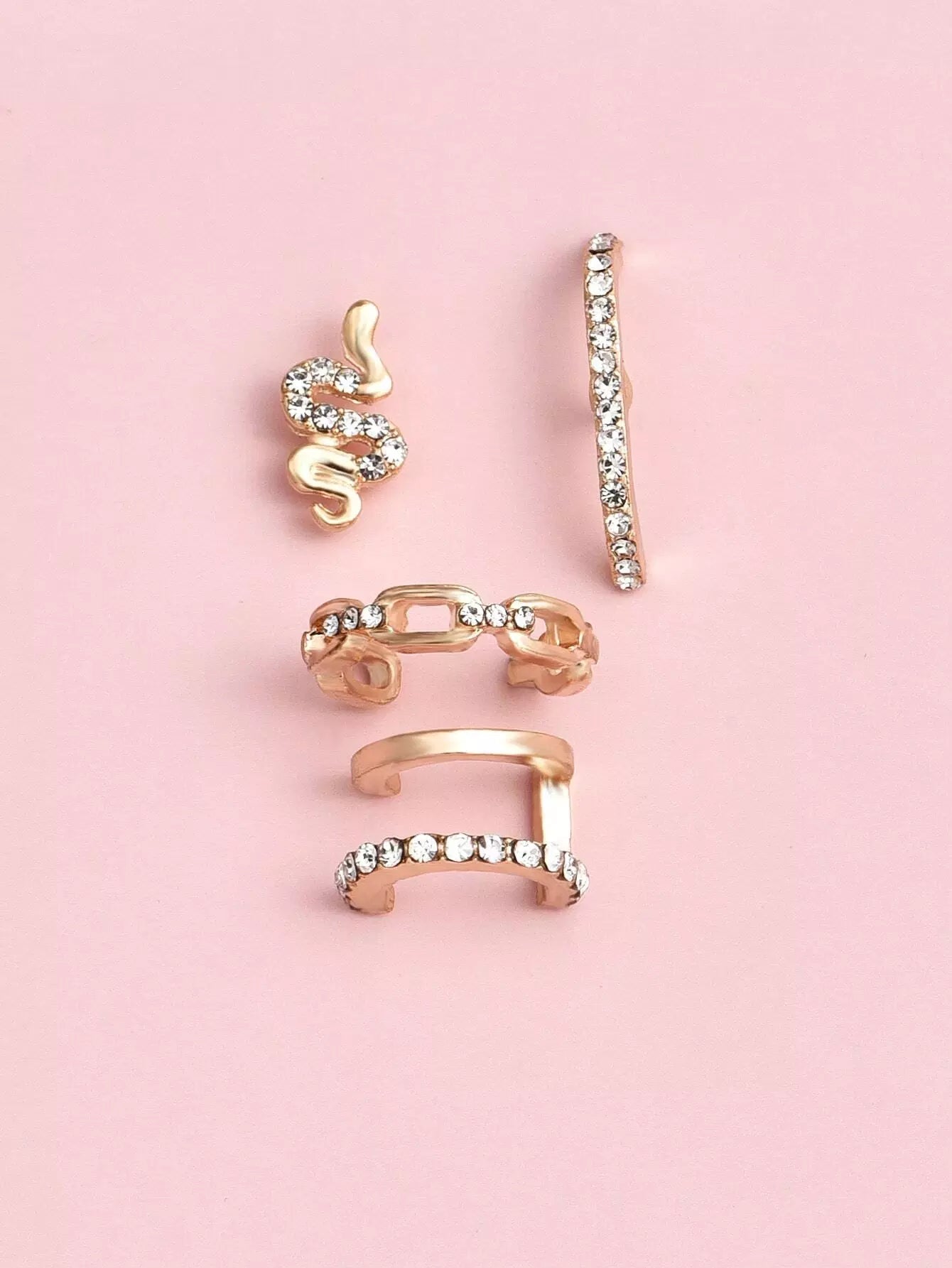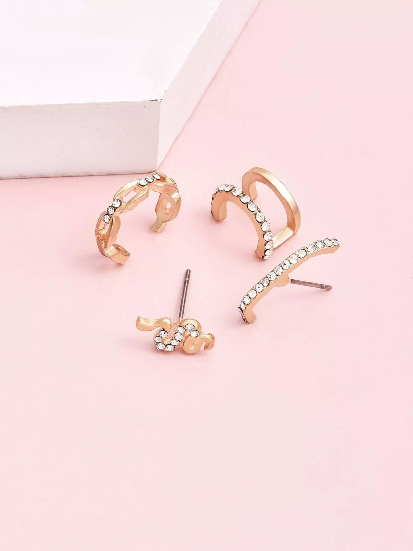 طقم أقراط ديكور من 4 قطع من حجر الراين