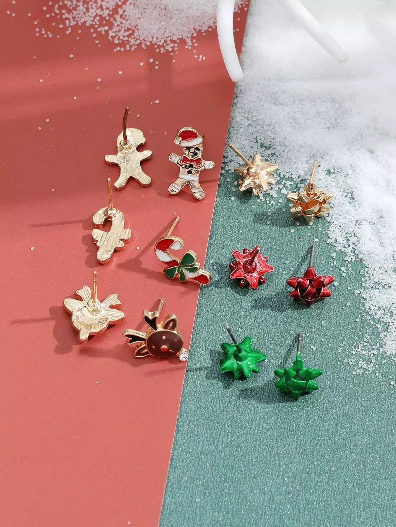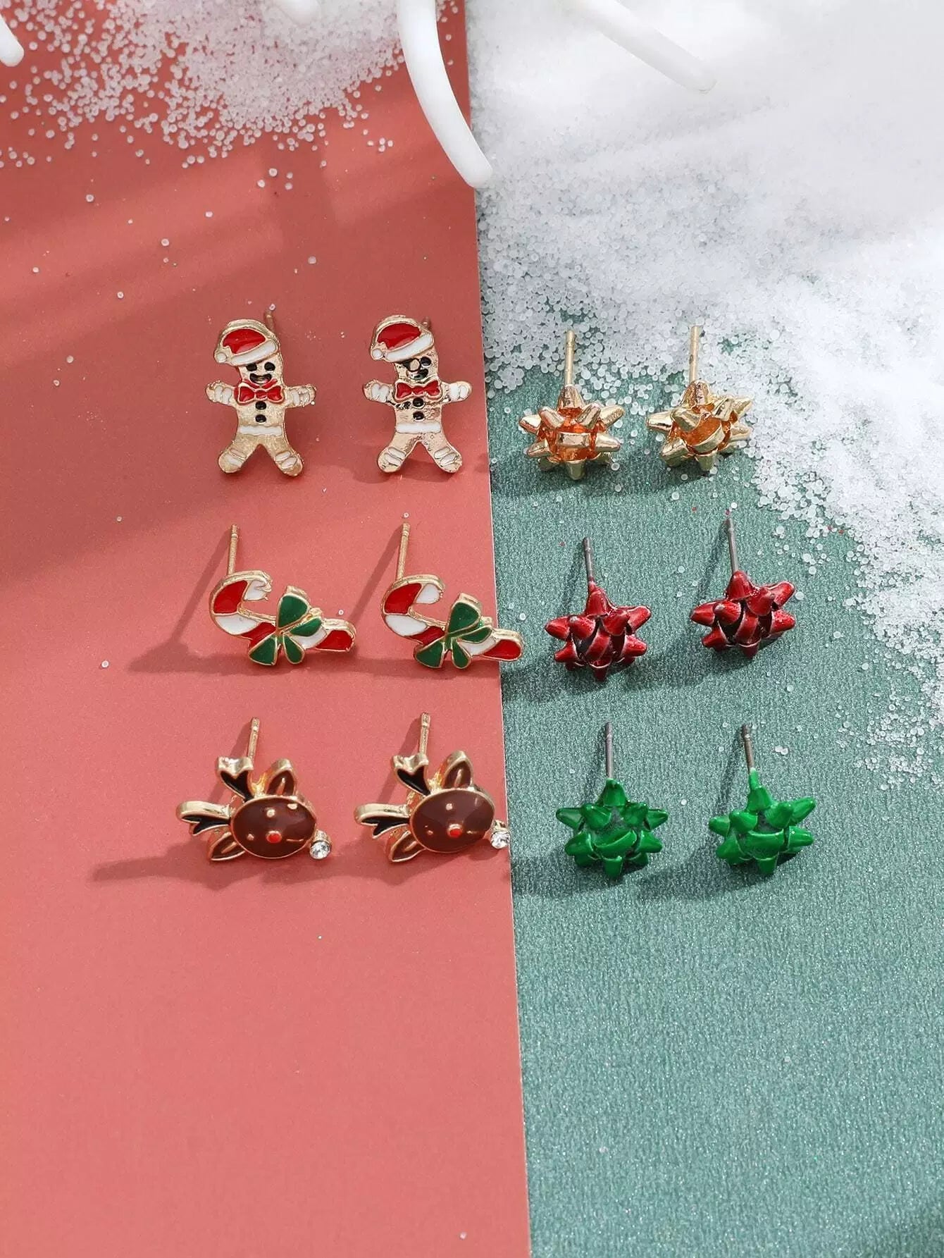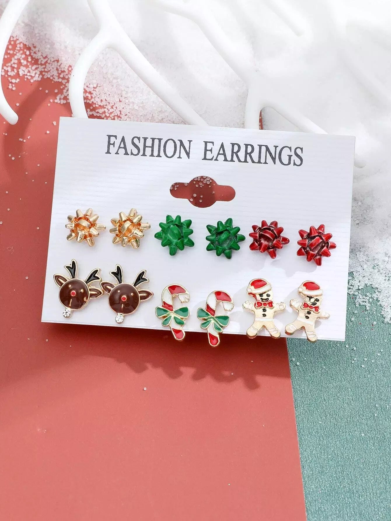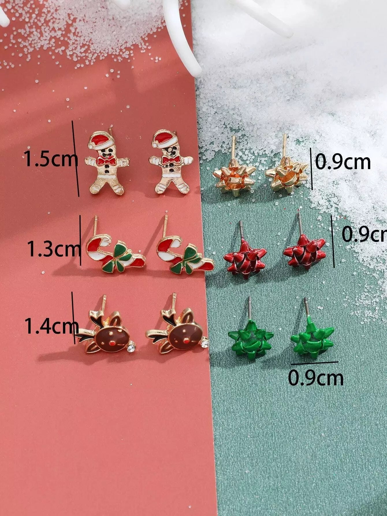 6 أزواج من الأقراط بتصميم غزال وقصب عيد الميلاد
