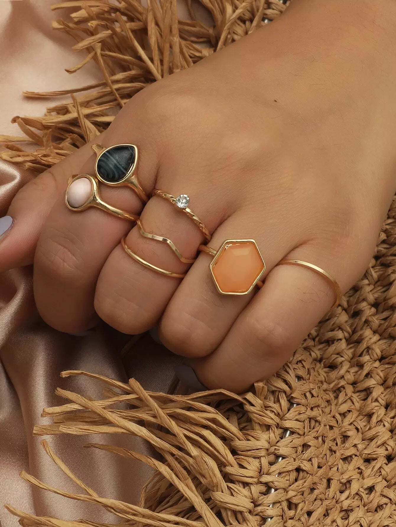 خاتم ديكور من 7 قطع من حجر الراين