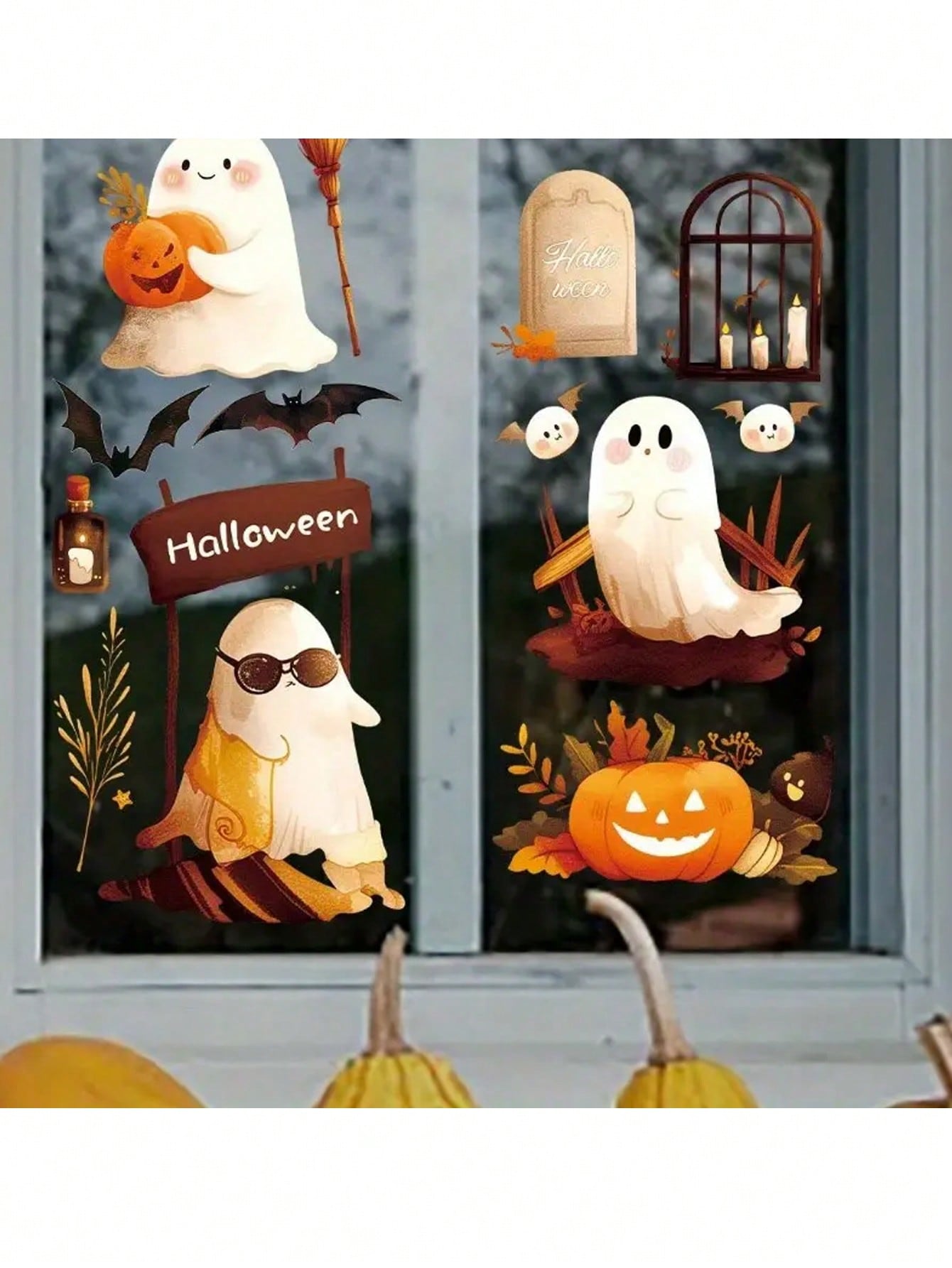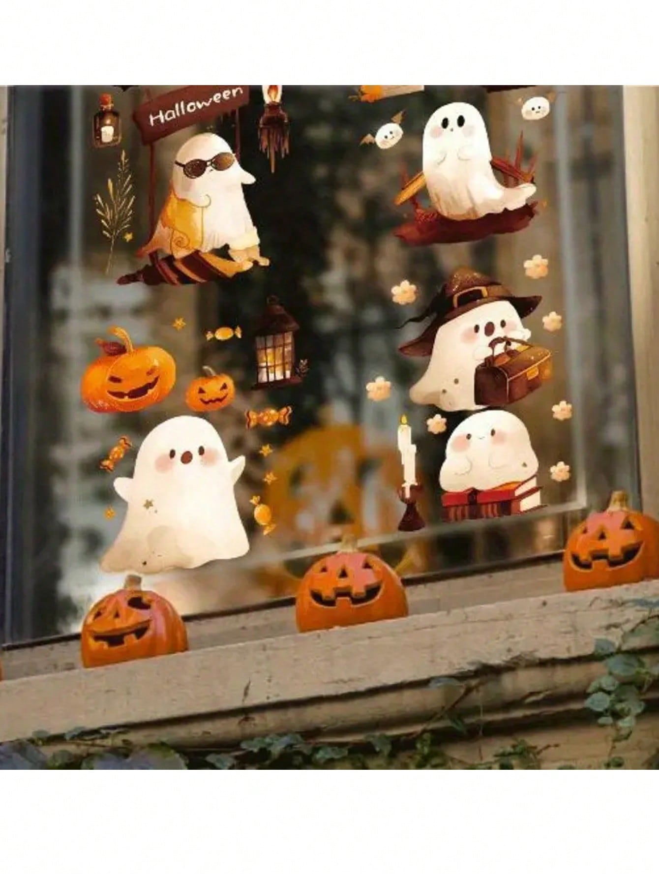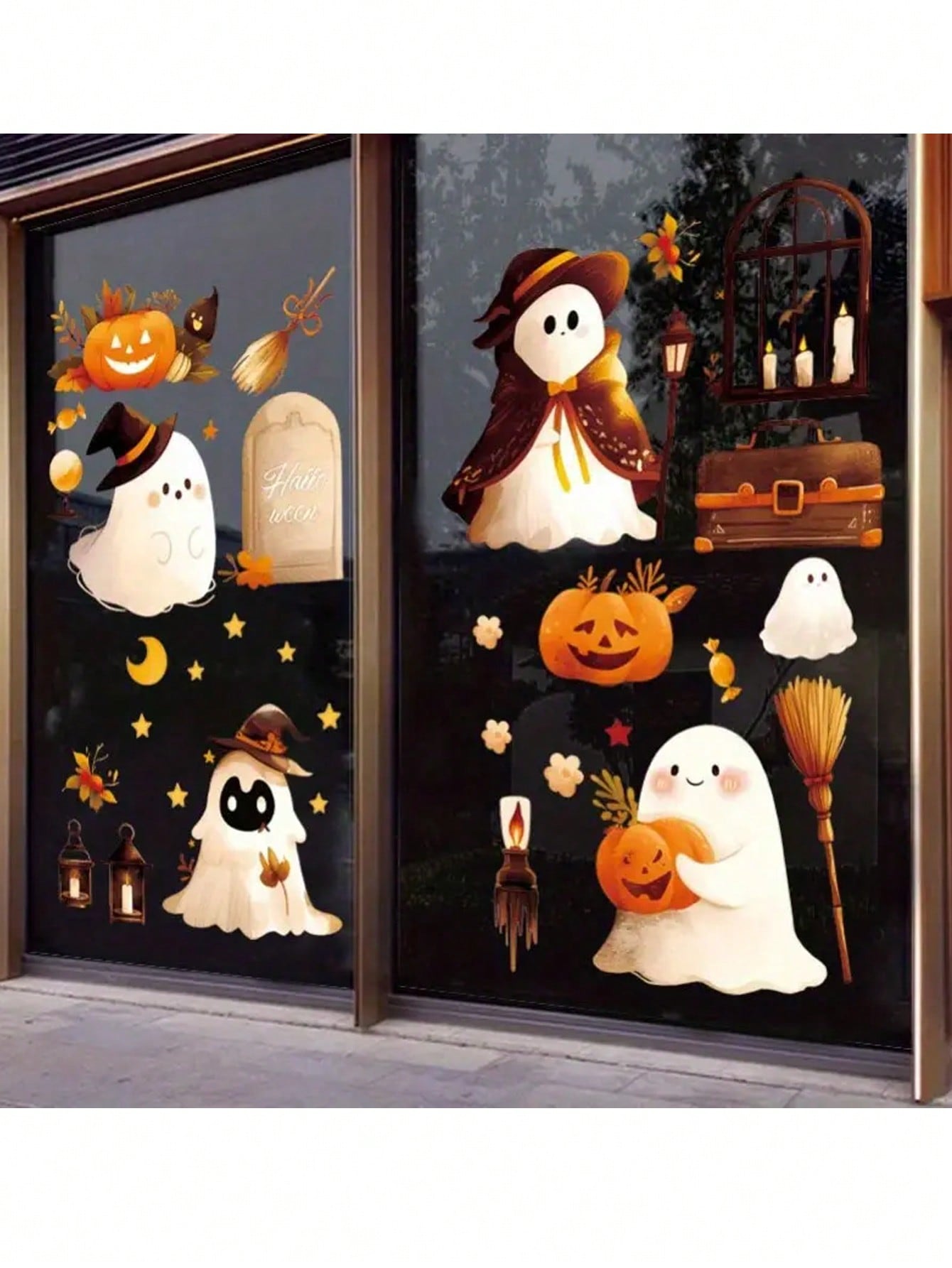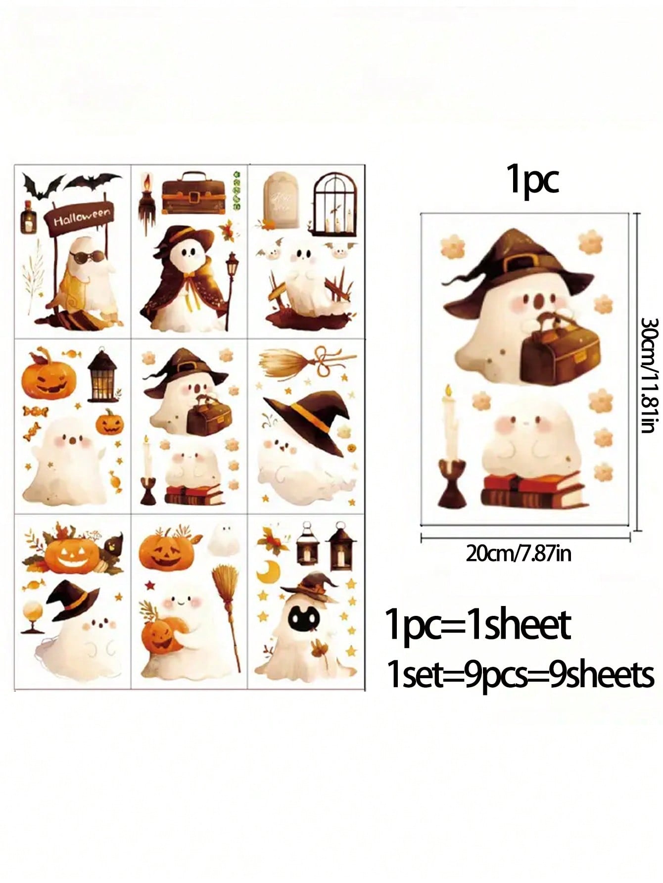 مجموعة من 9 قطع من ملصقات اليقطين اللطيفة الثابتة - ملصقات نوافذ لتزيين الهالوين مع قبعة ساحرة