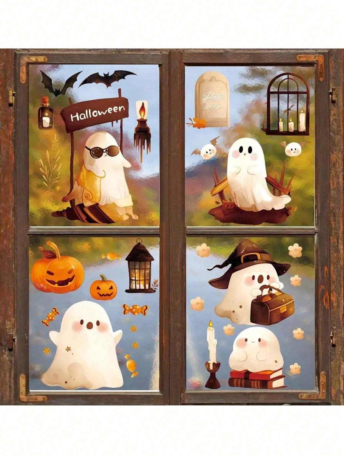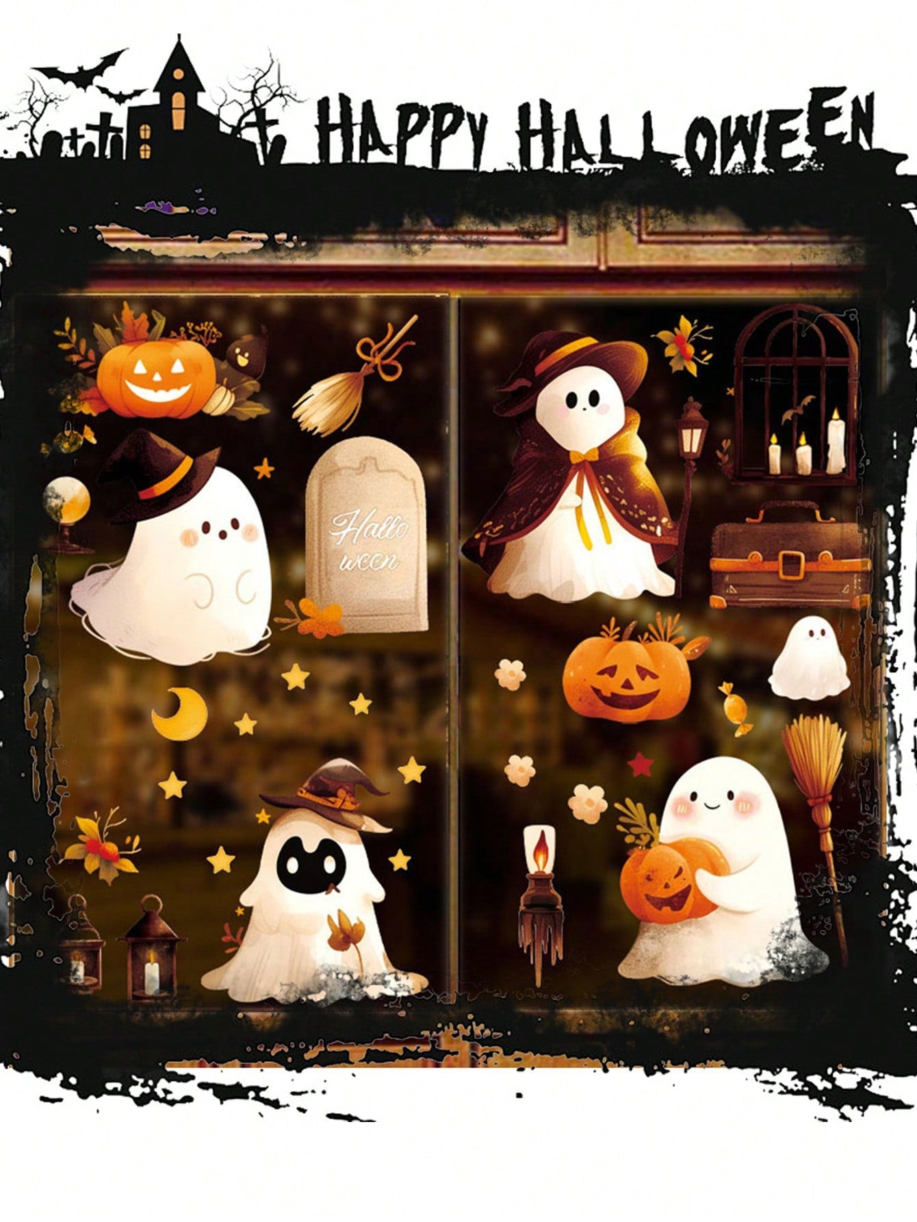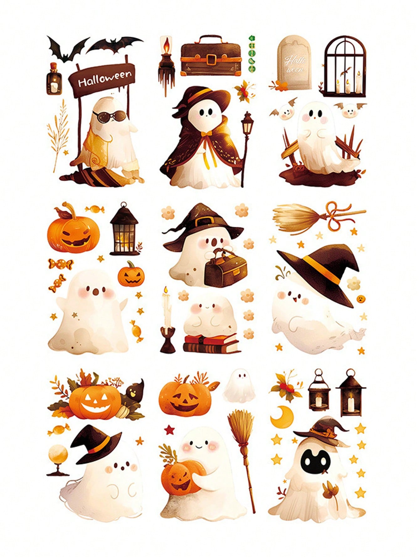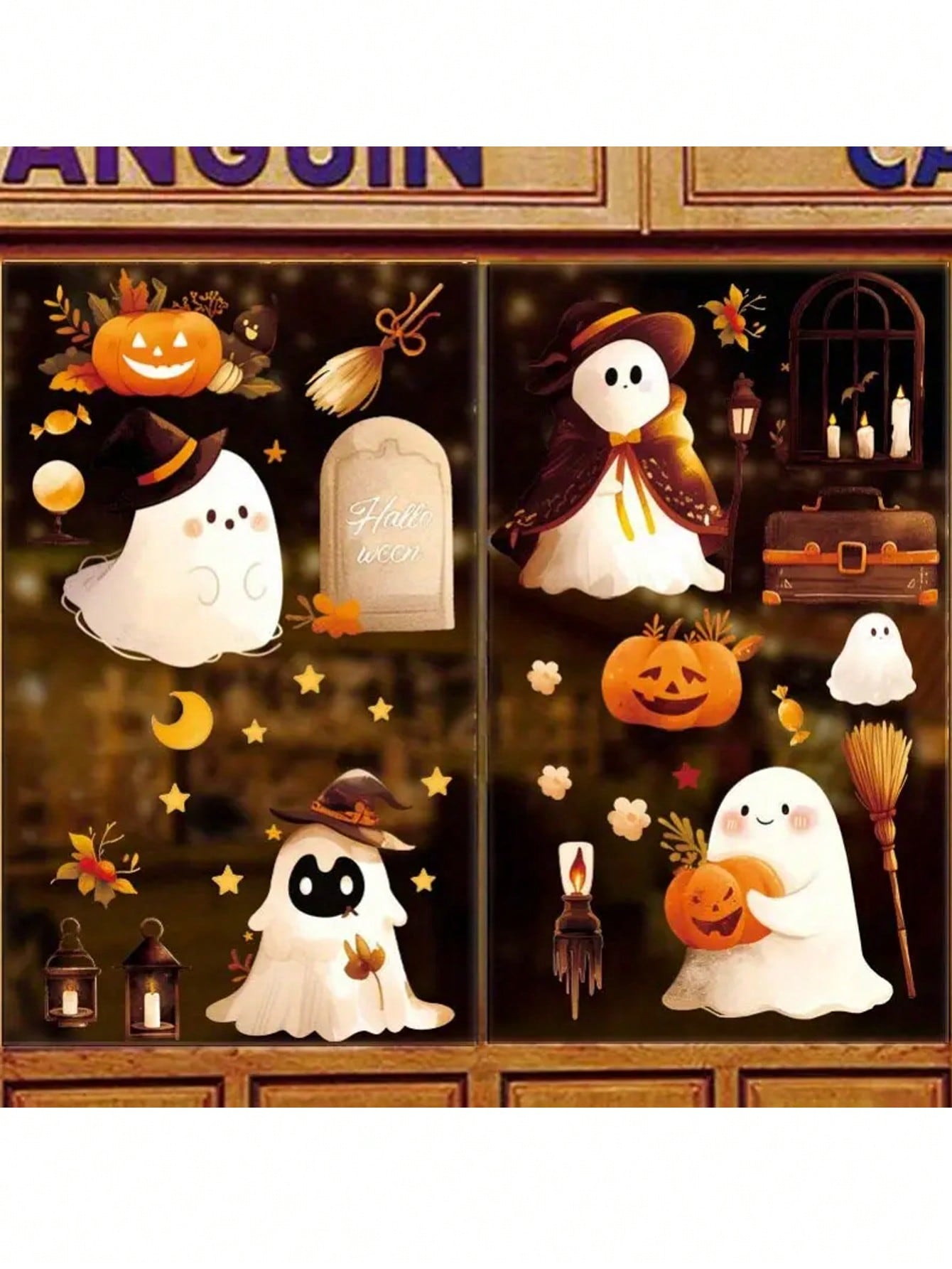 مجموعة من 9 قطع من ملصقات اليقطين اللطيفة الثابتة - ملصقات نوافذ لتزيين الهالوين مع قبعة ساحرة