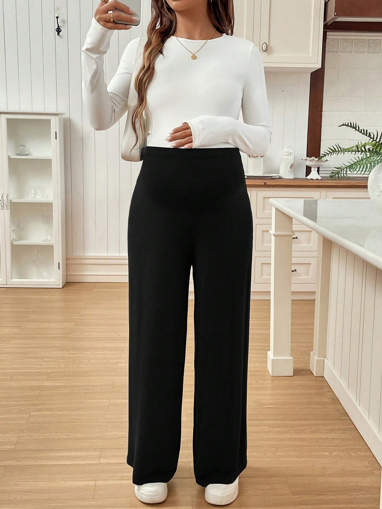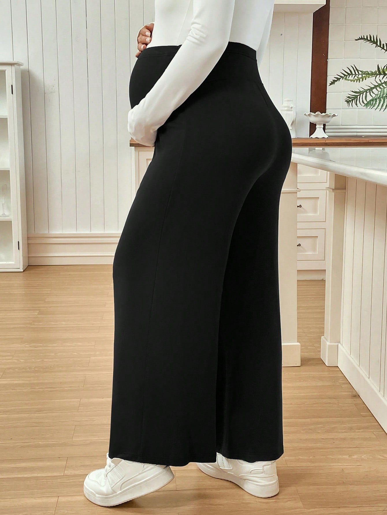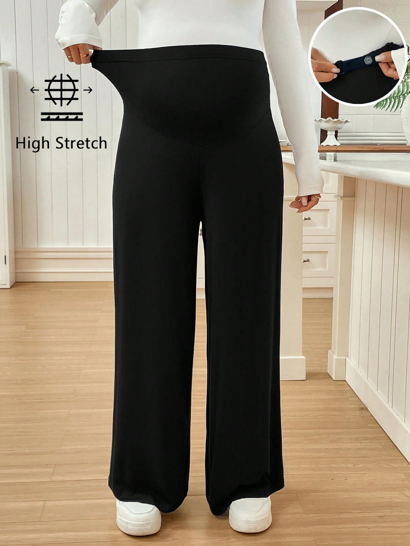 بنطلون واسع الساقين بخصر قابل للتعديل - بنطلون حمل بلون موحد