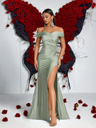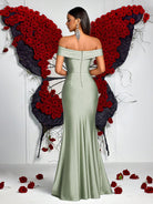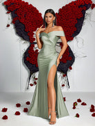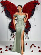 فستان سهرة رسمي من ADYCE بتصميم حورية البحر، مكشوف الكتفين، بفتحة جانبية عند الفخذ، وجوانب مكشكشة.