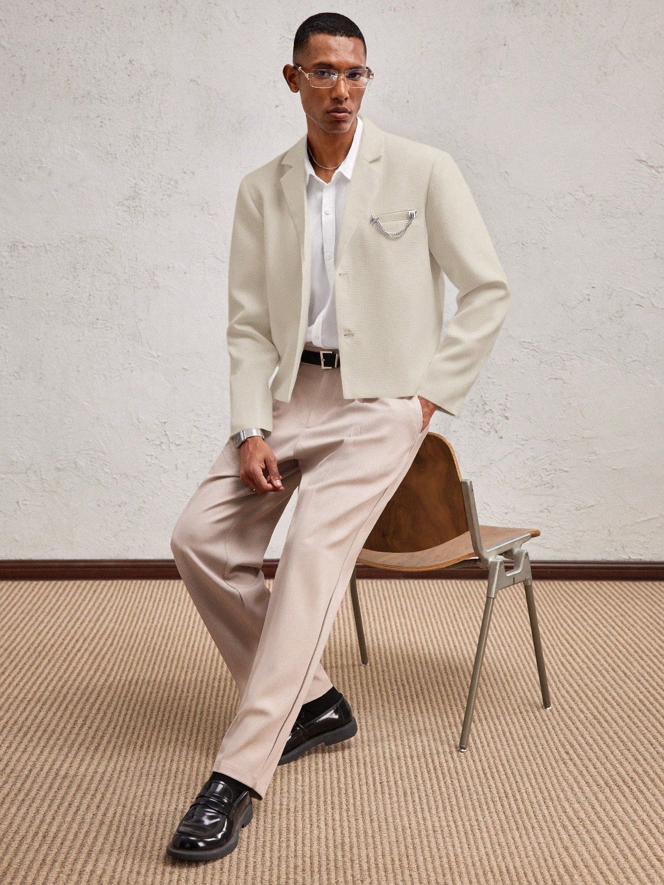 AKNOTIC Business Casual Men's Woven Short Loose Fit Regular Casual Blazer Jacket, Suitable For Summer,