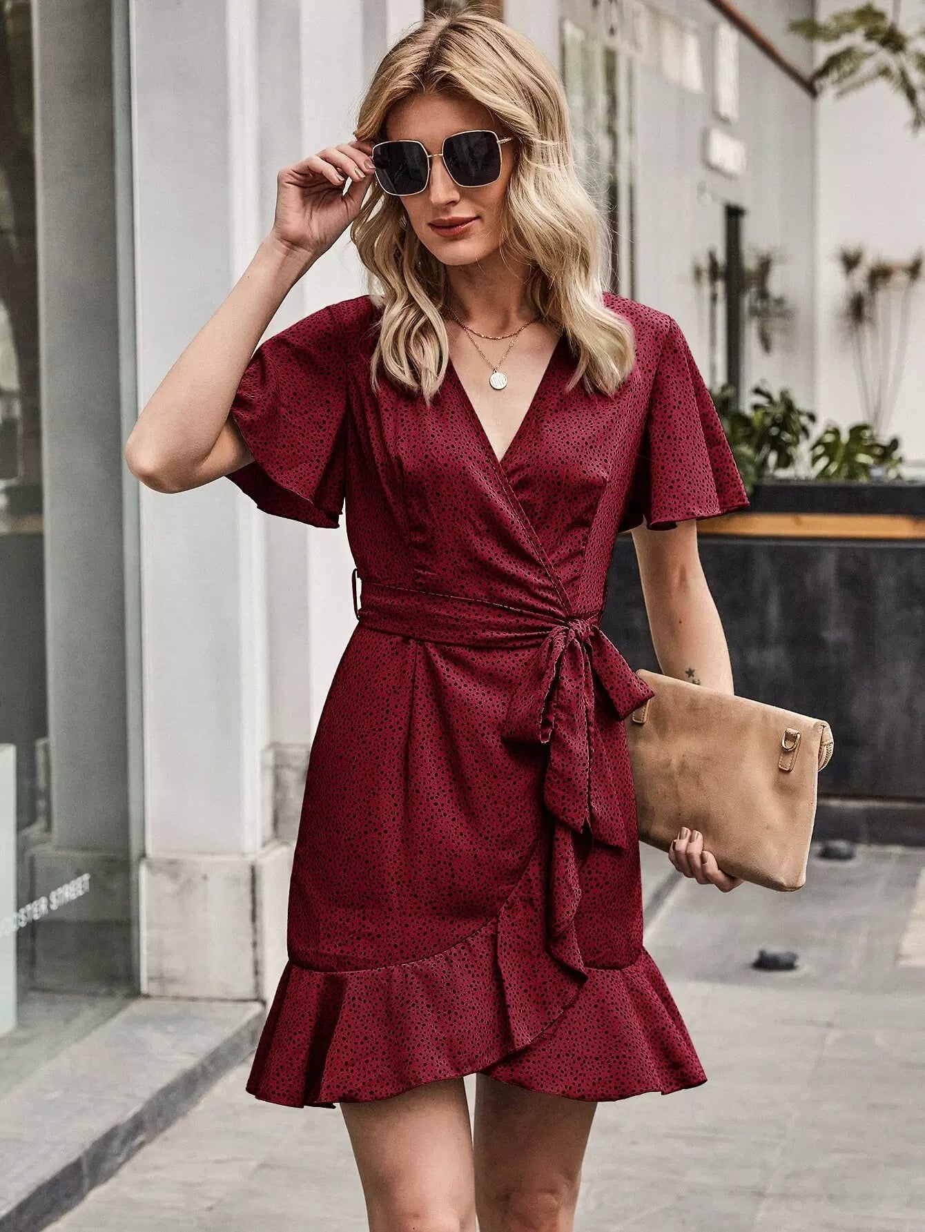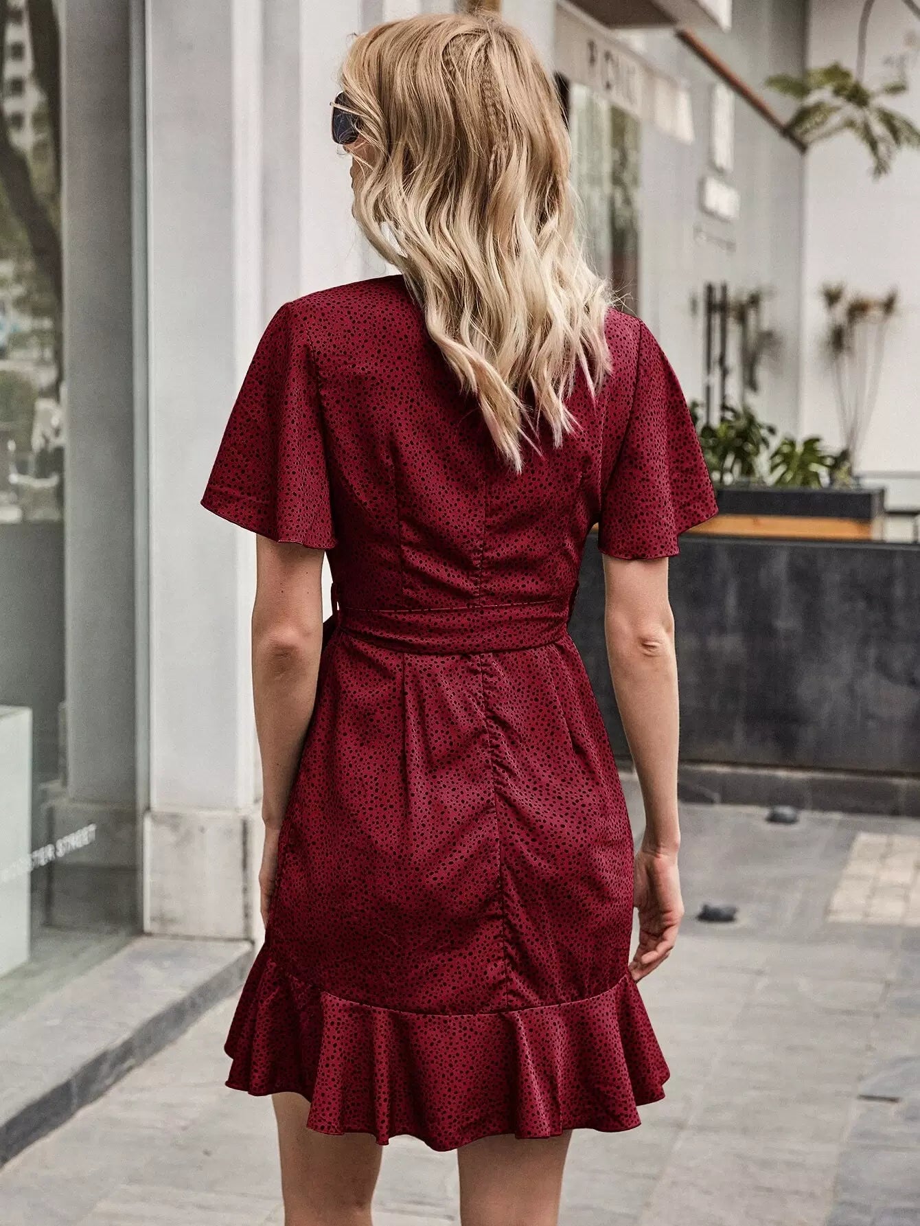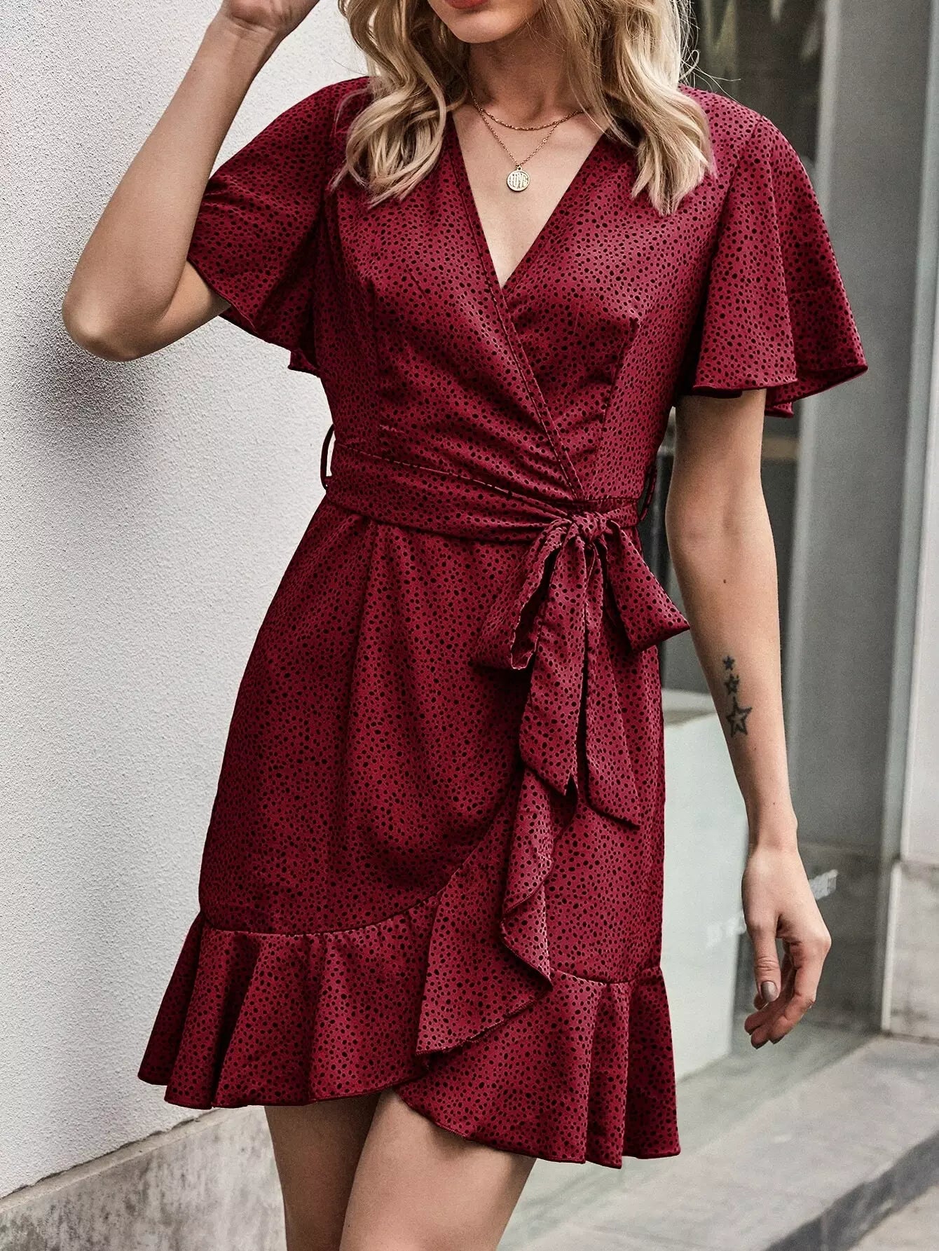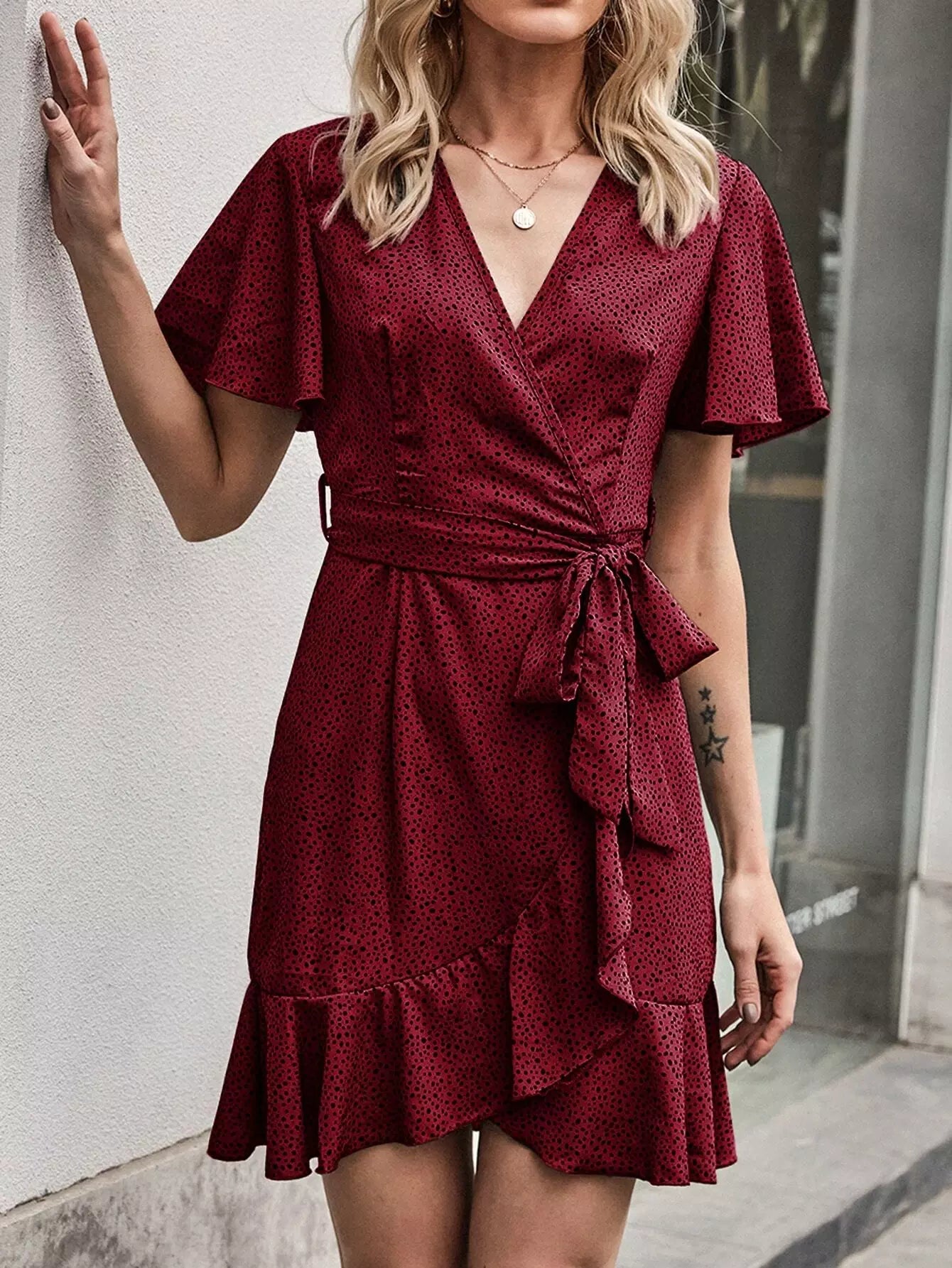 فستان بحاشية مكشكشة مطبوع بالكامل بدون حزام