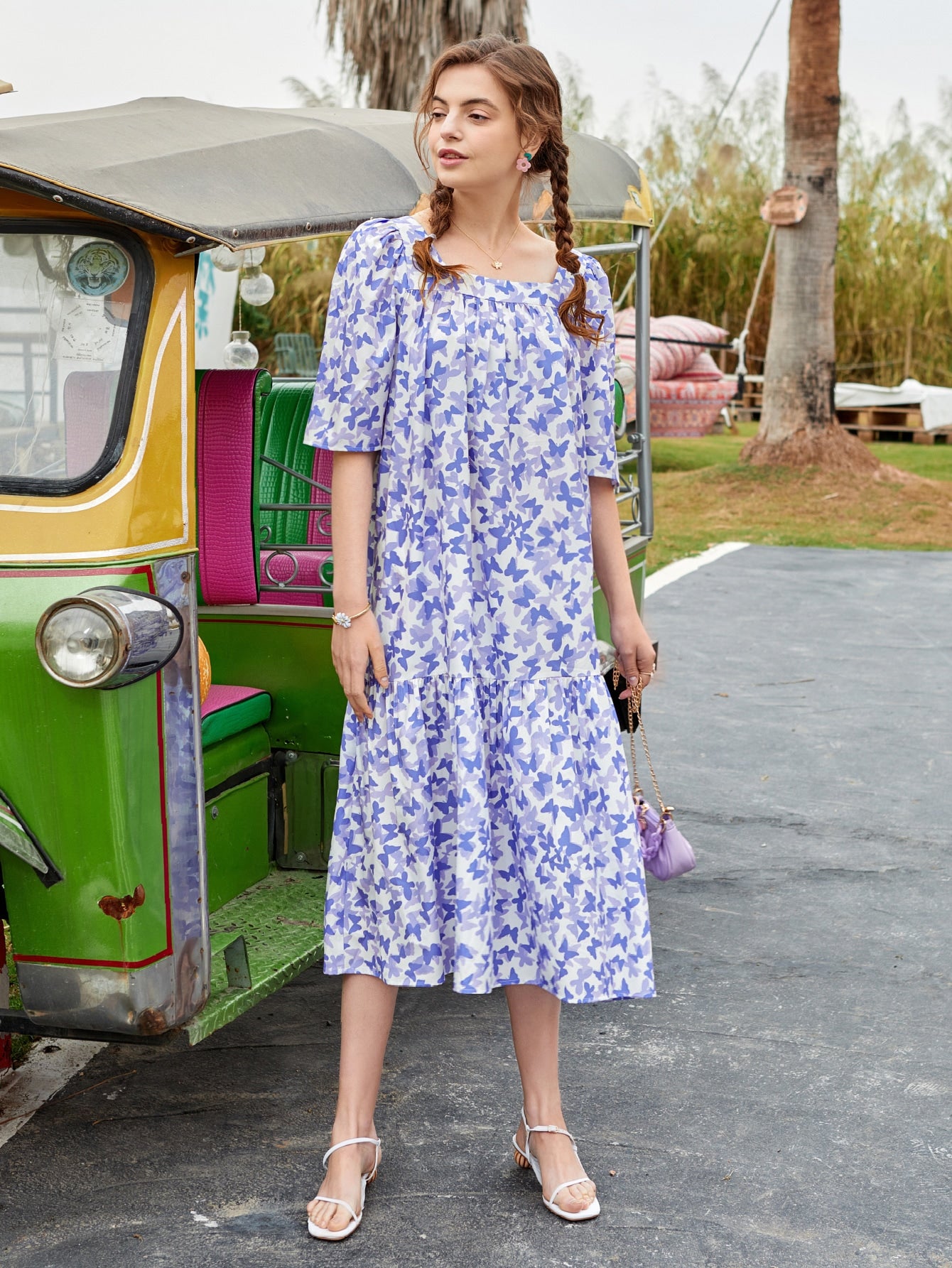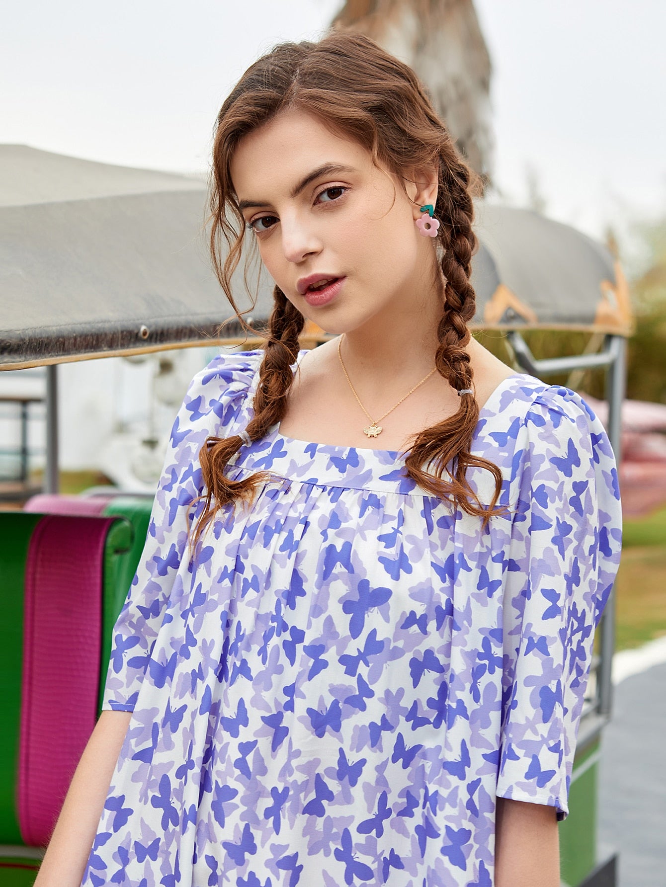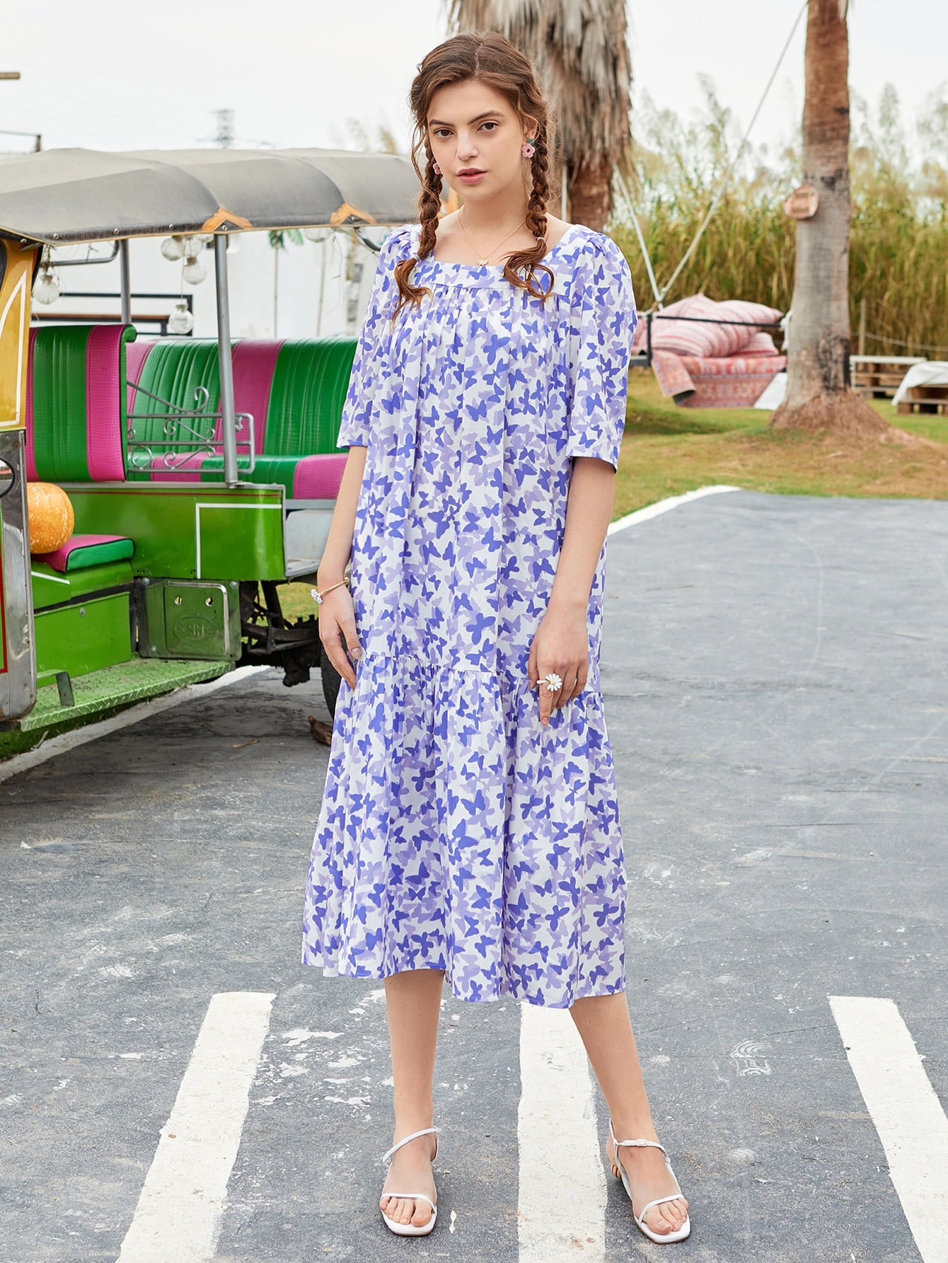 Allover Butterfly Print Smock Dress