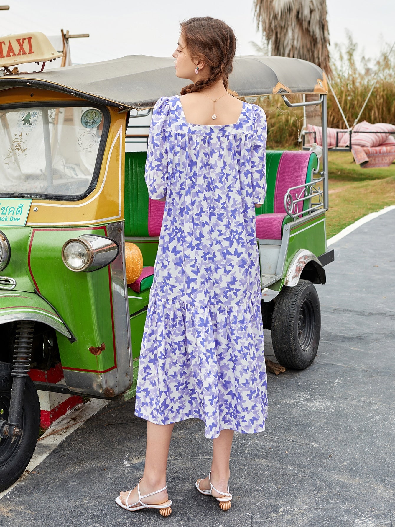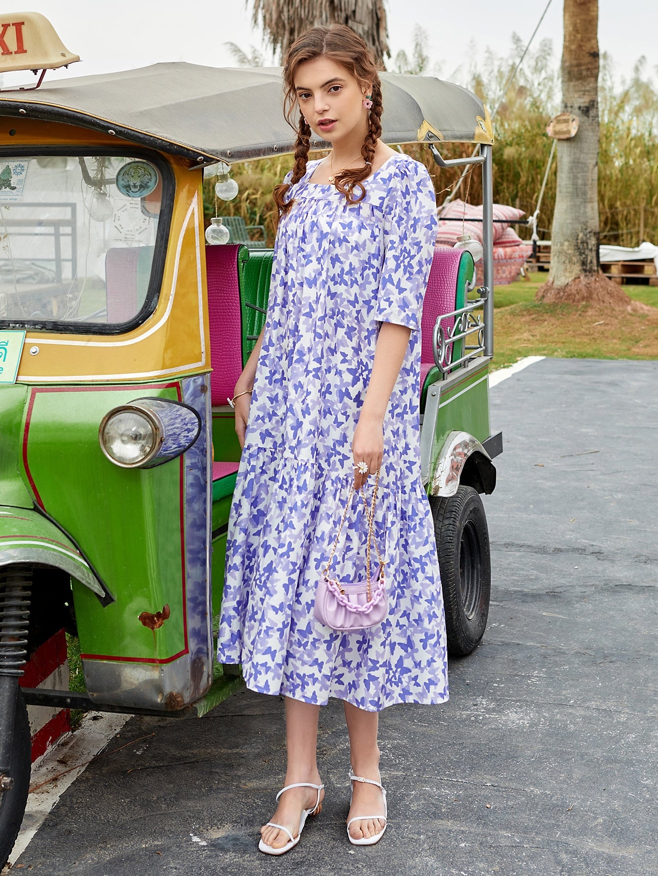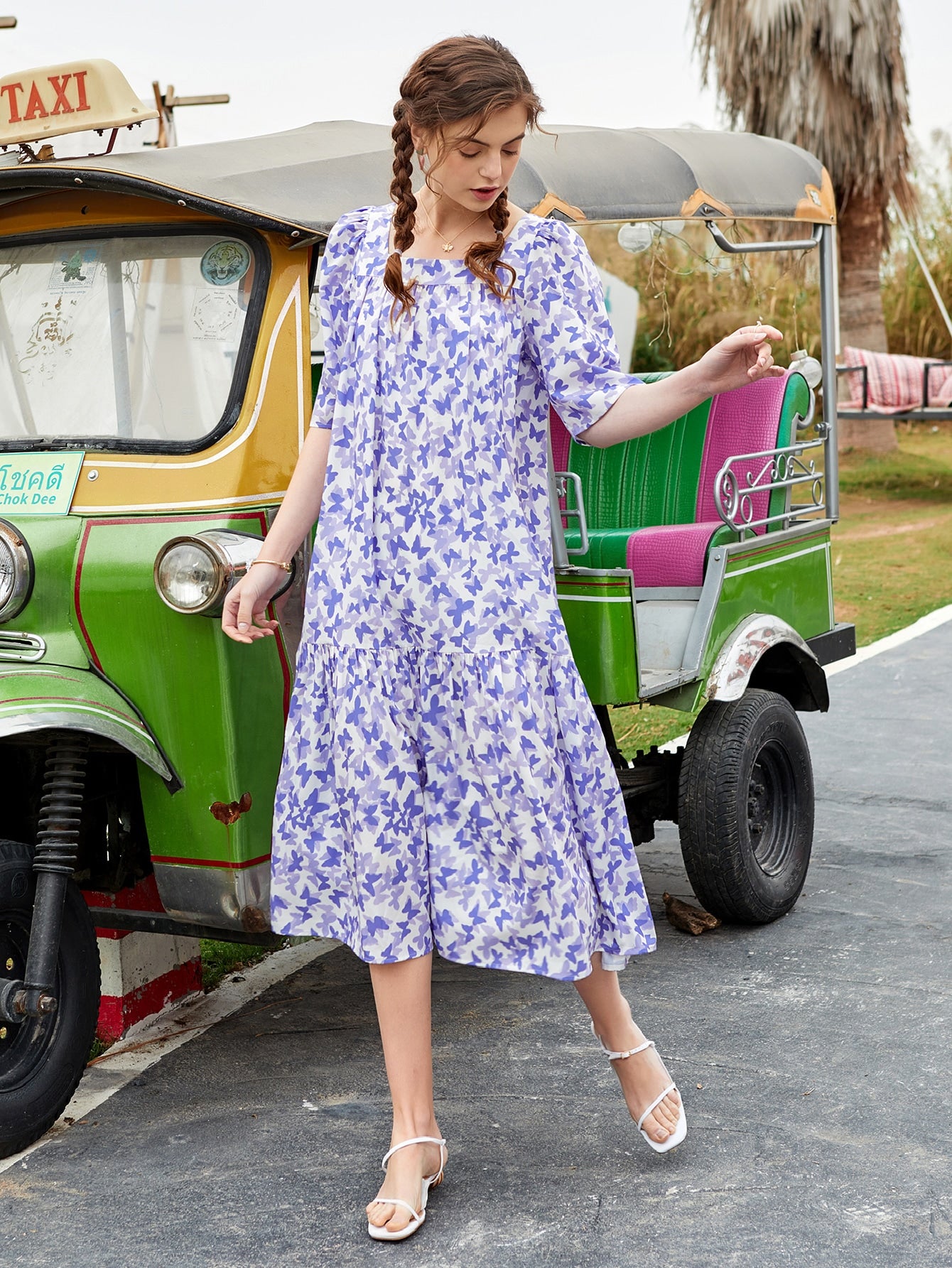 Allover Butterfly Print Smock Dress