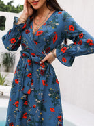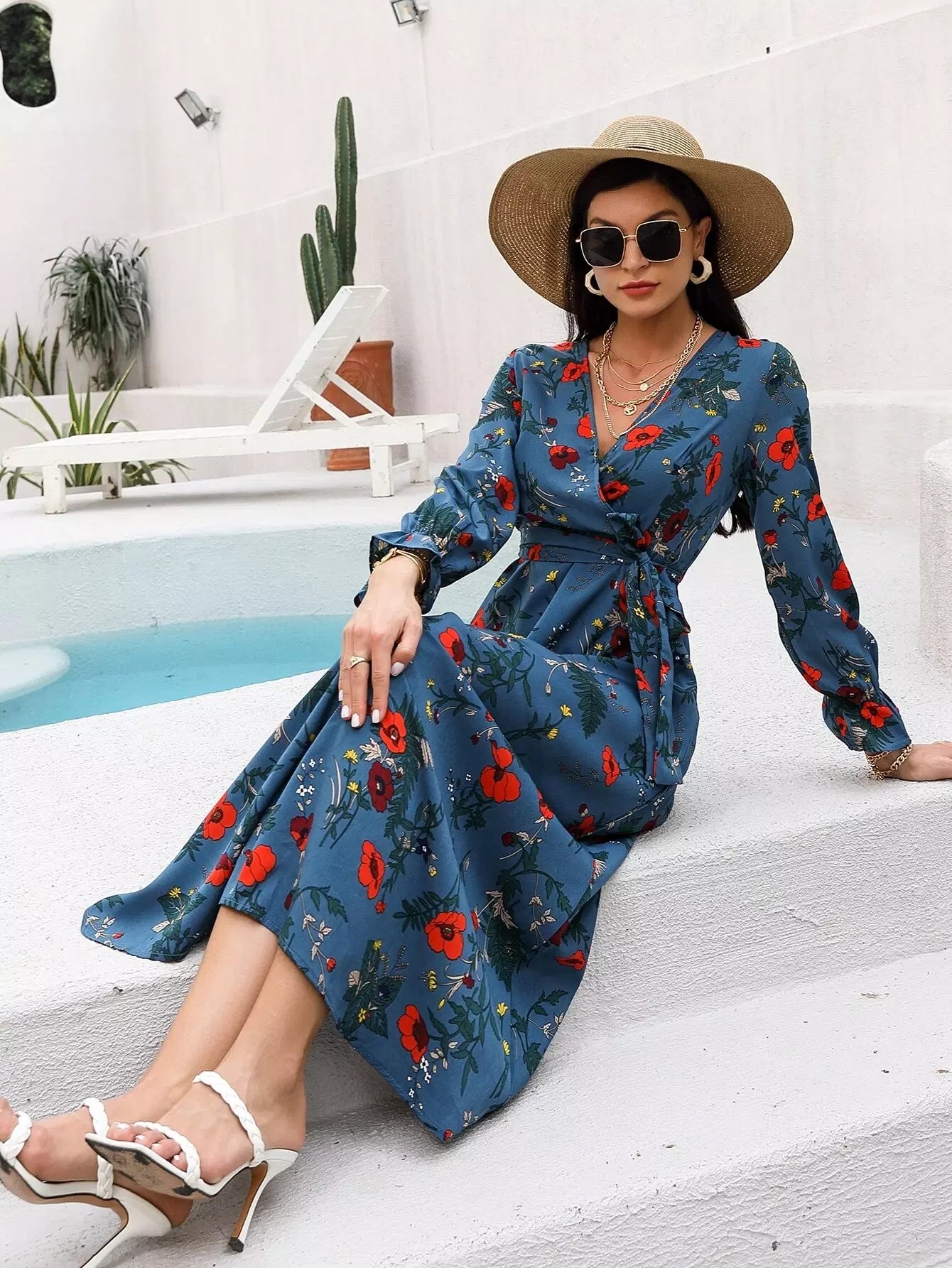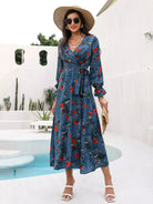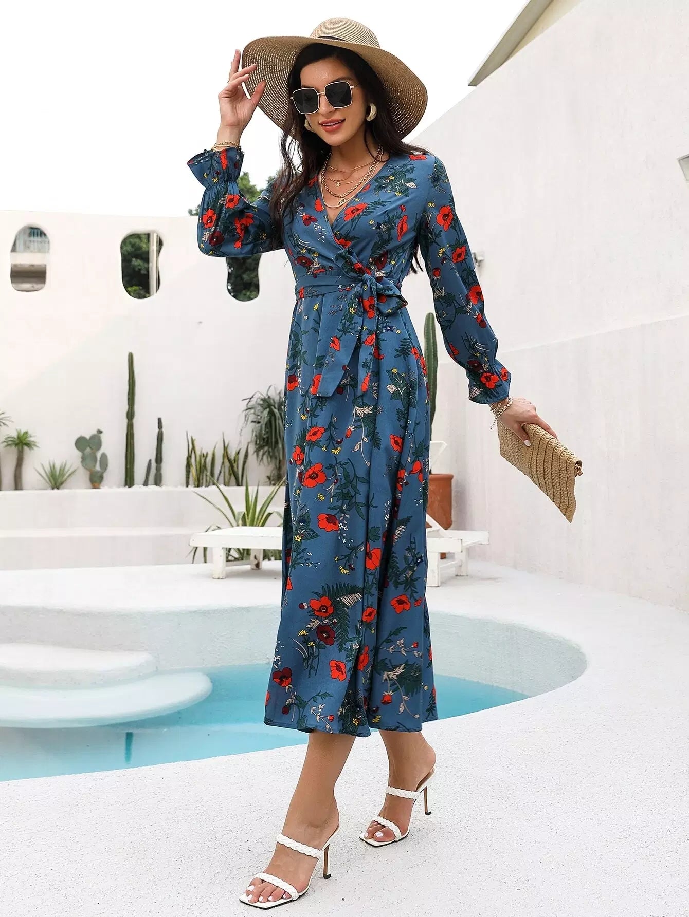 فستان على شكل حرف A ملفوف بالزهور بدون حزام