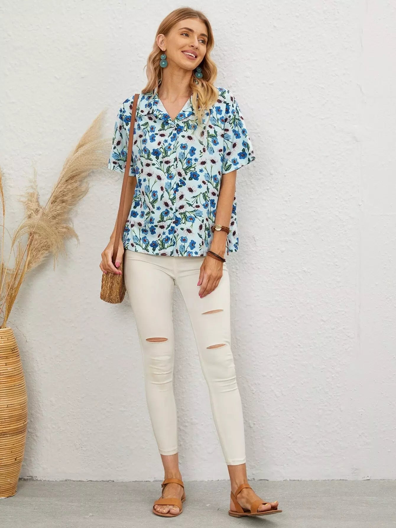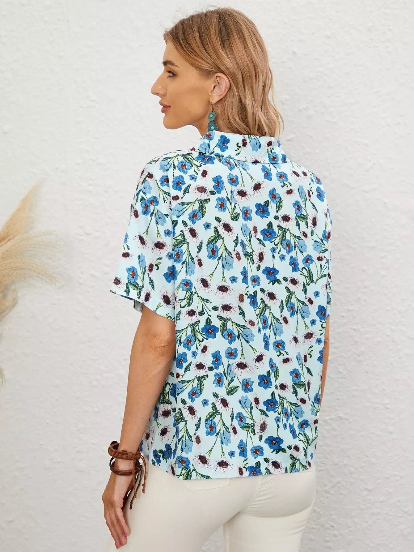 بلوزة منسدلة الأكتاف زهرية بالكامل