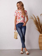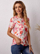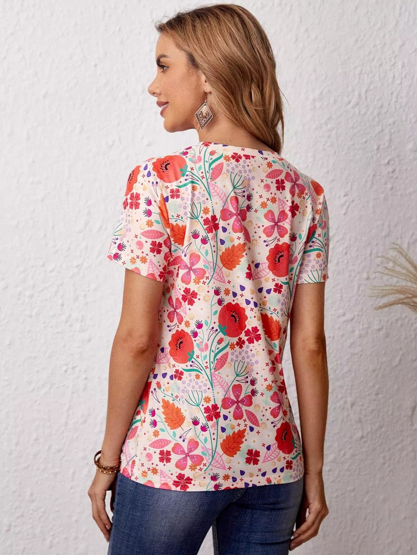 النساء - تي شيرت مطبوع عليه أزهار بالكامل