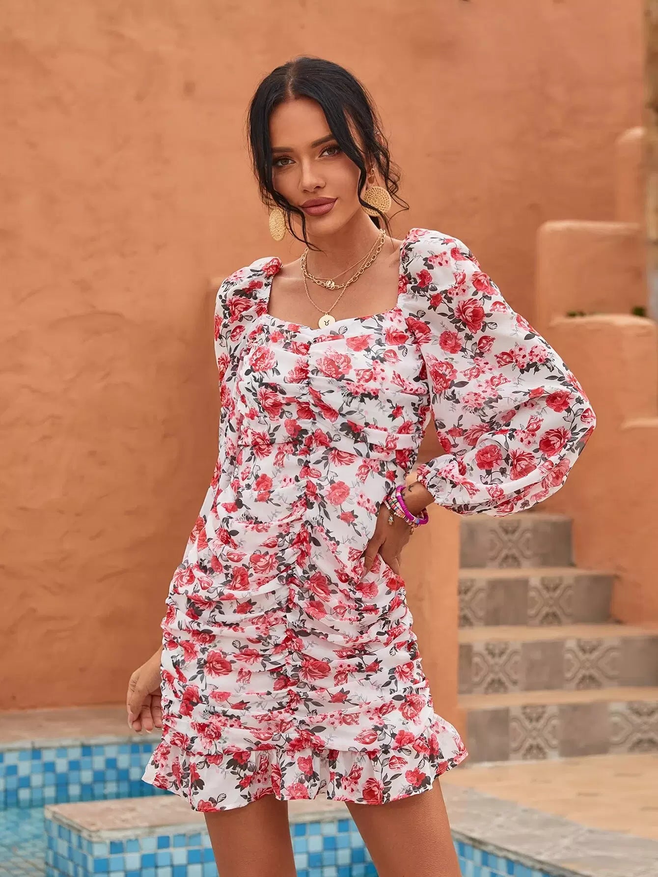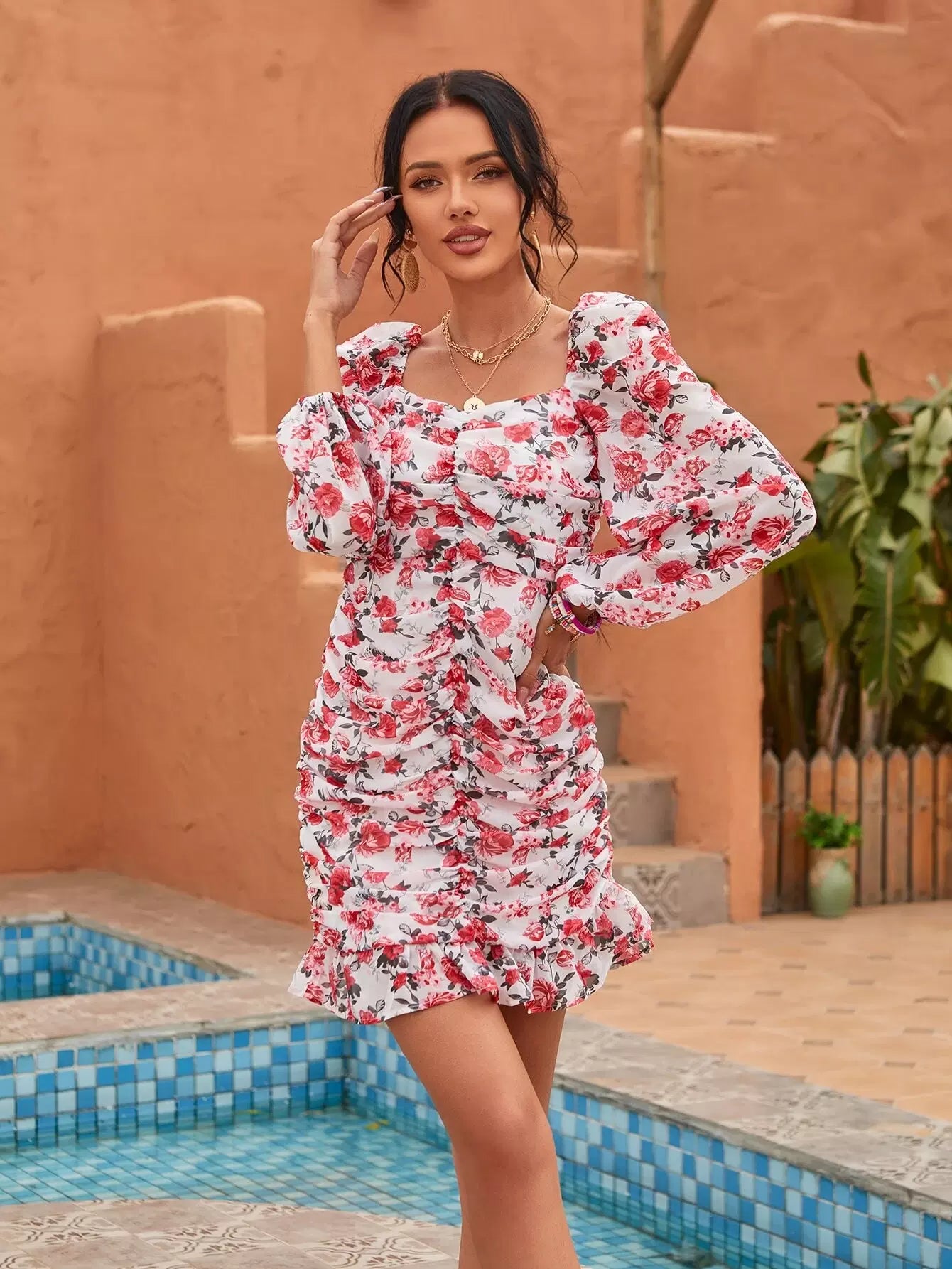 فستان مكشكش مزين بالورود من الكشكش بالكامل