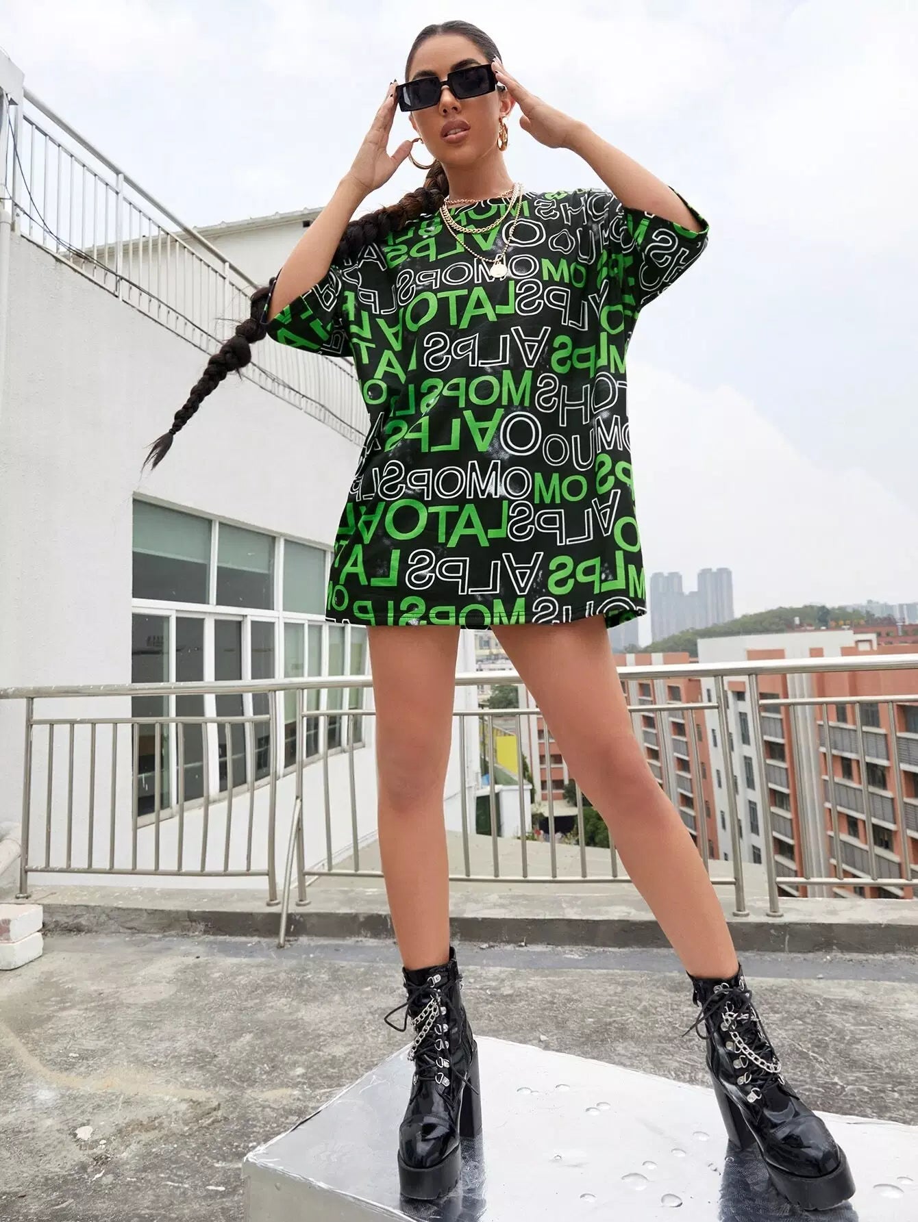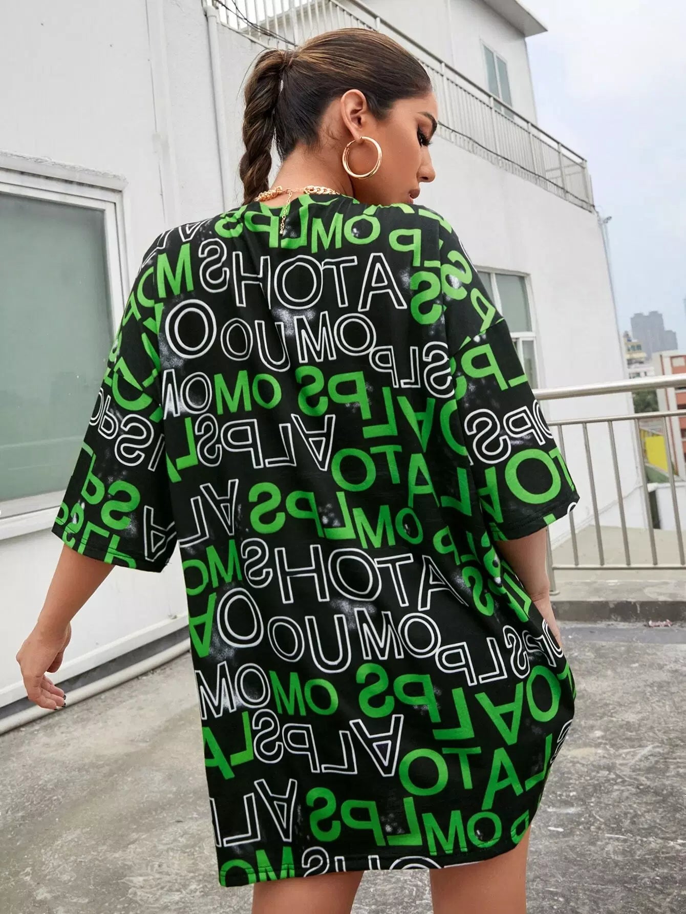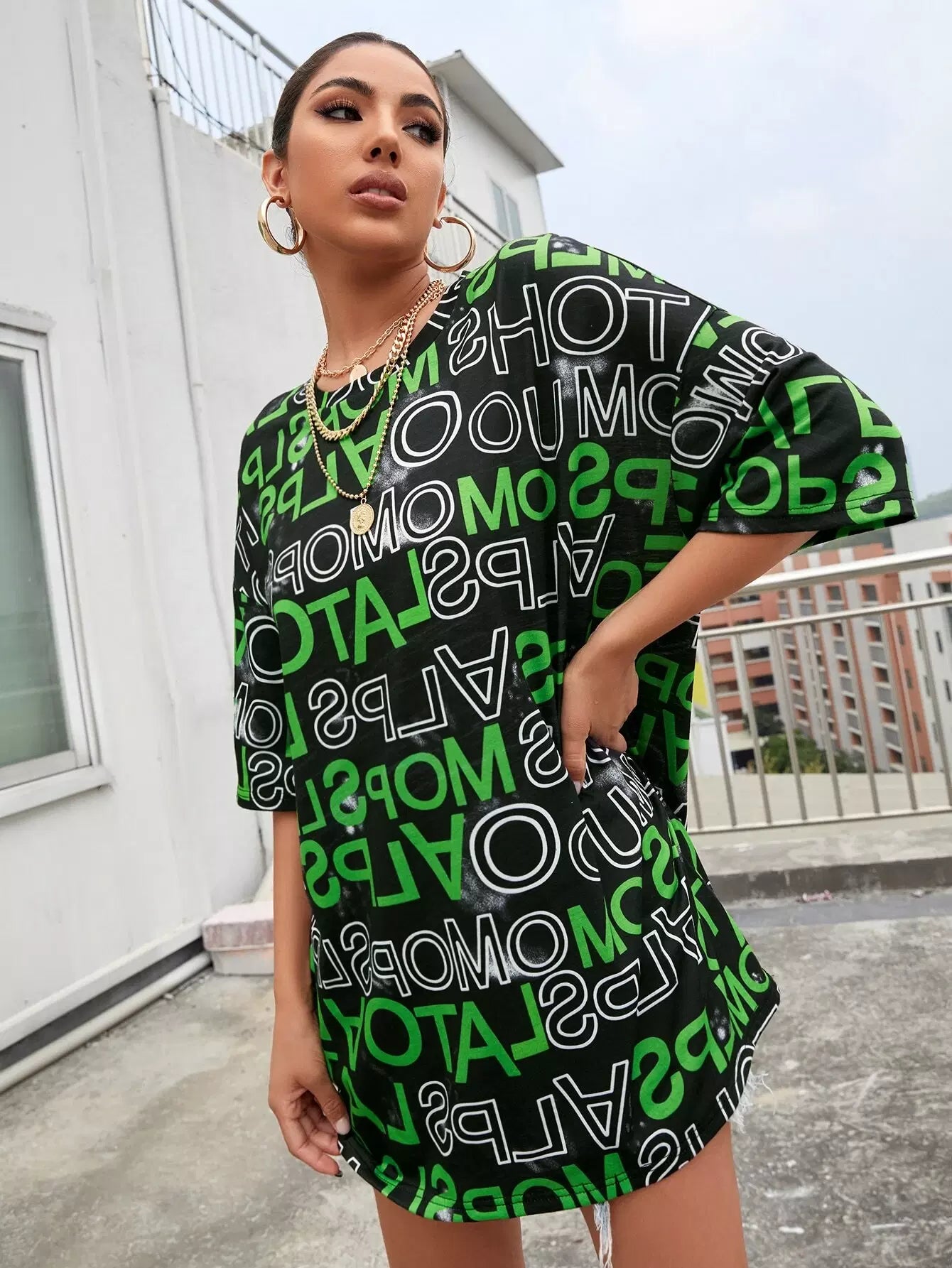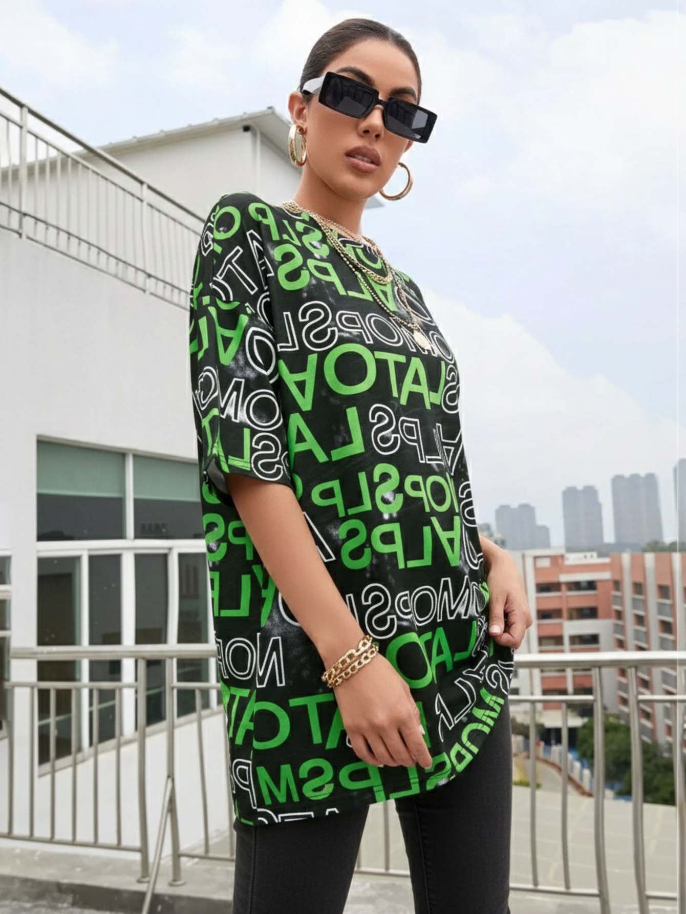 تي شيرت برسومات على شكل حرف كبير الحجم بالكامل