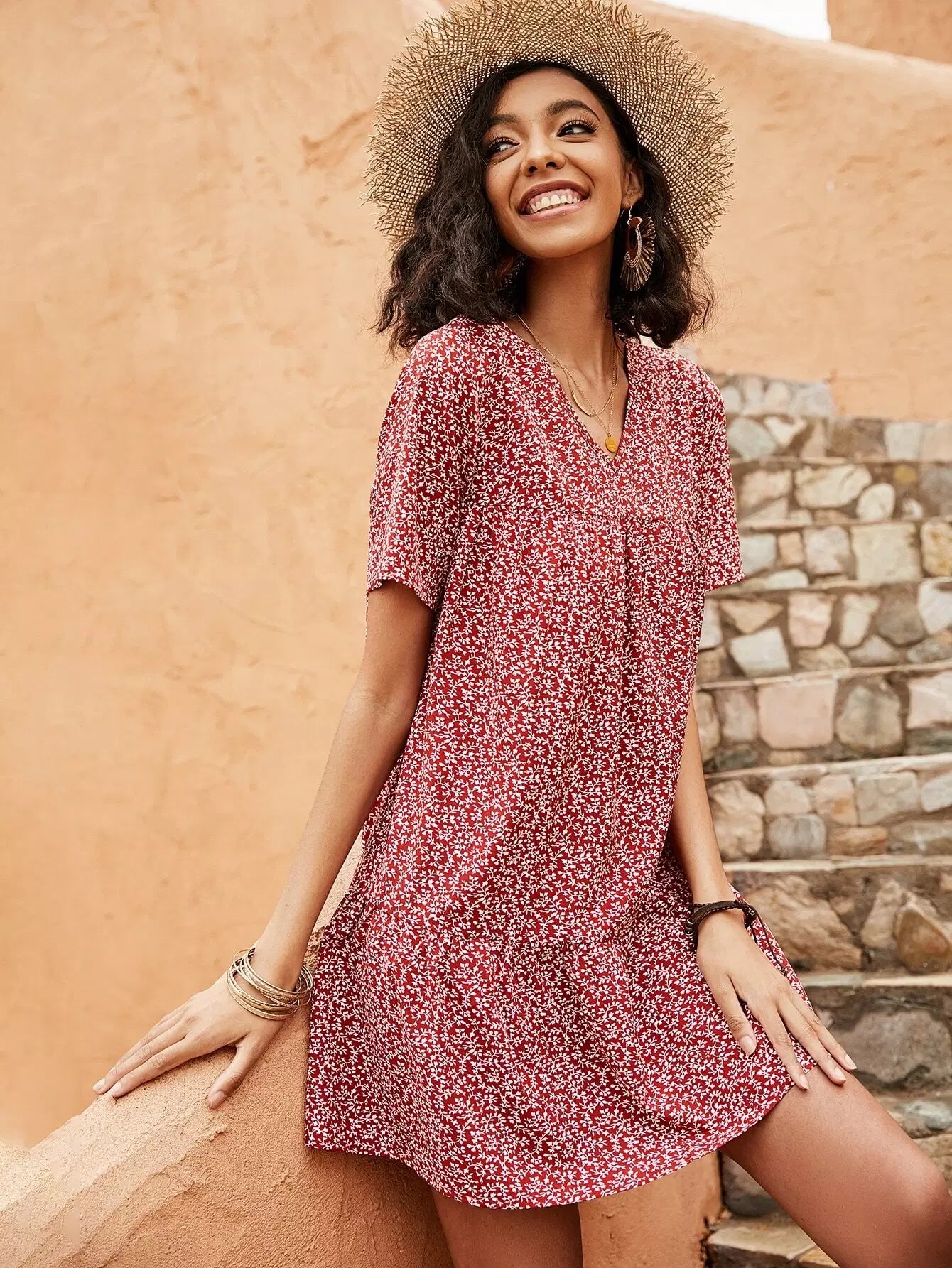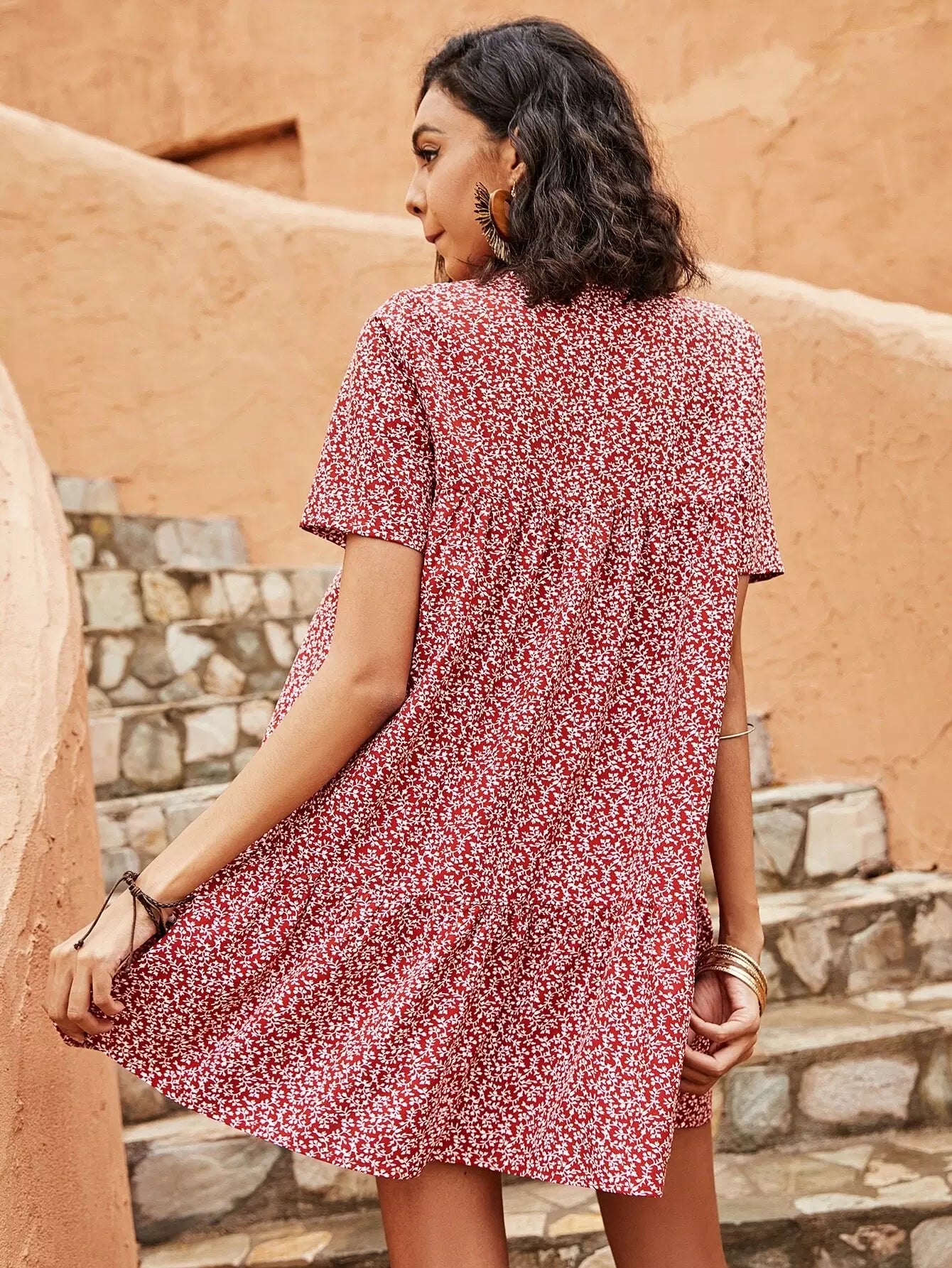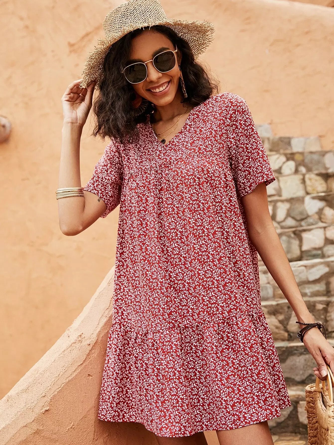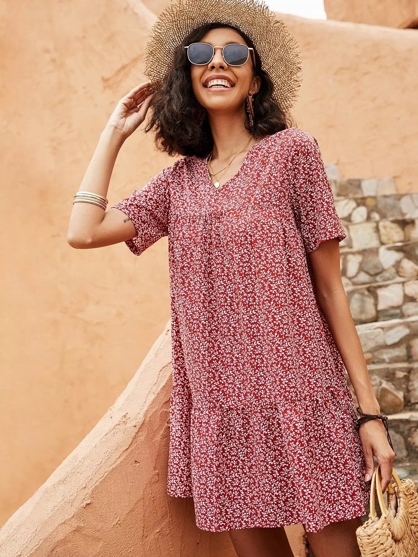 فستان سموك مطبوع عليه نباتات بالكامل