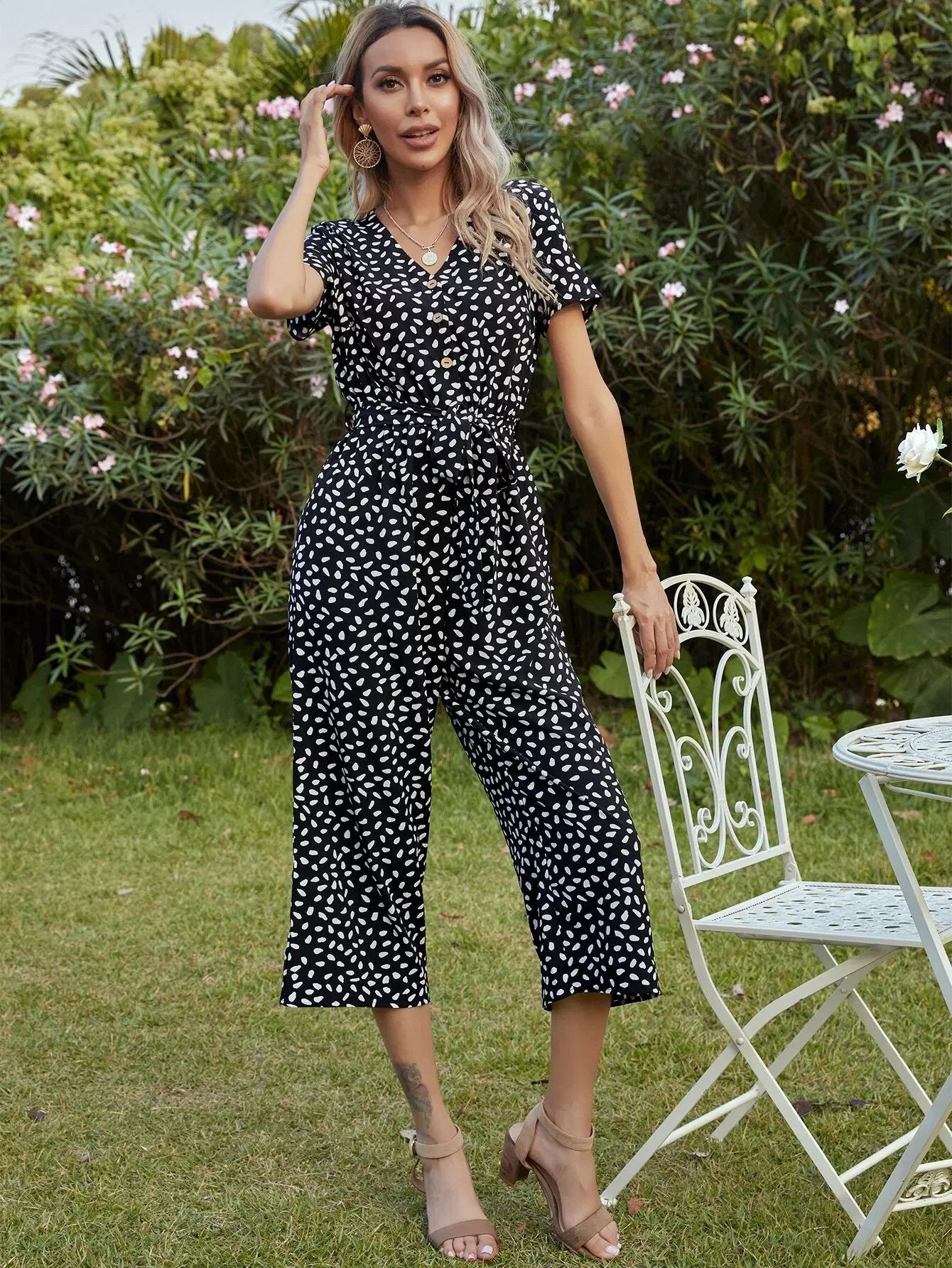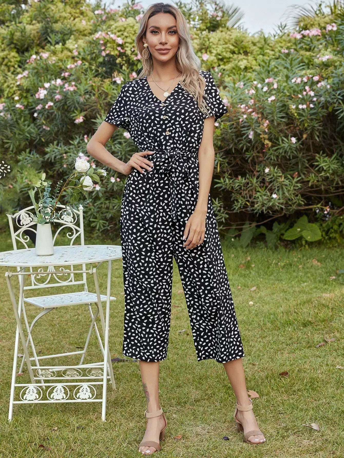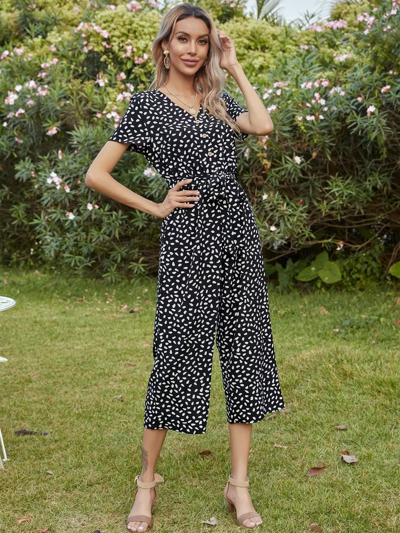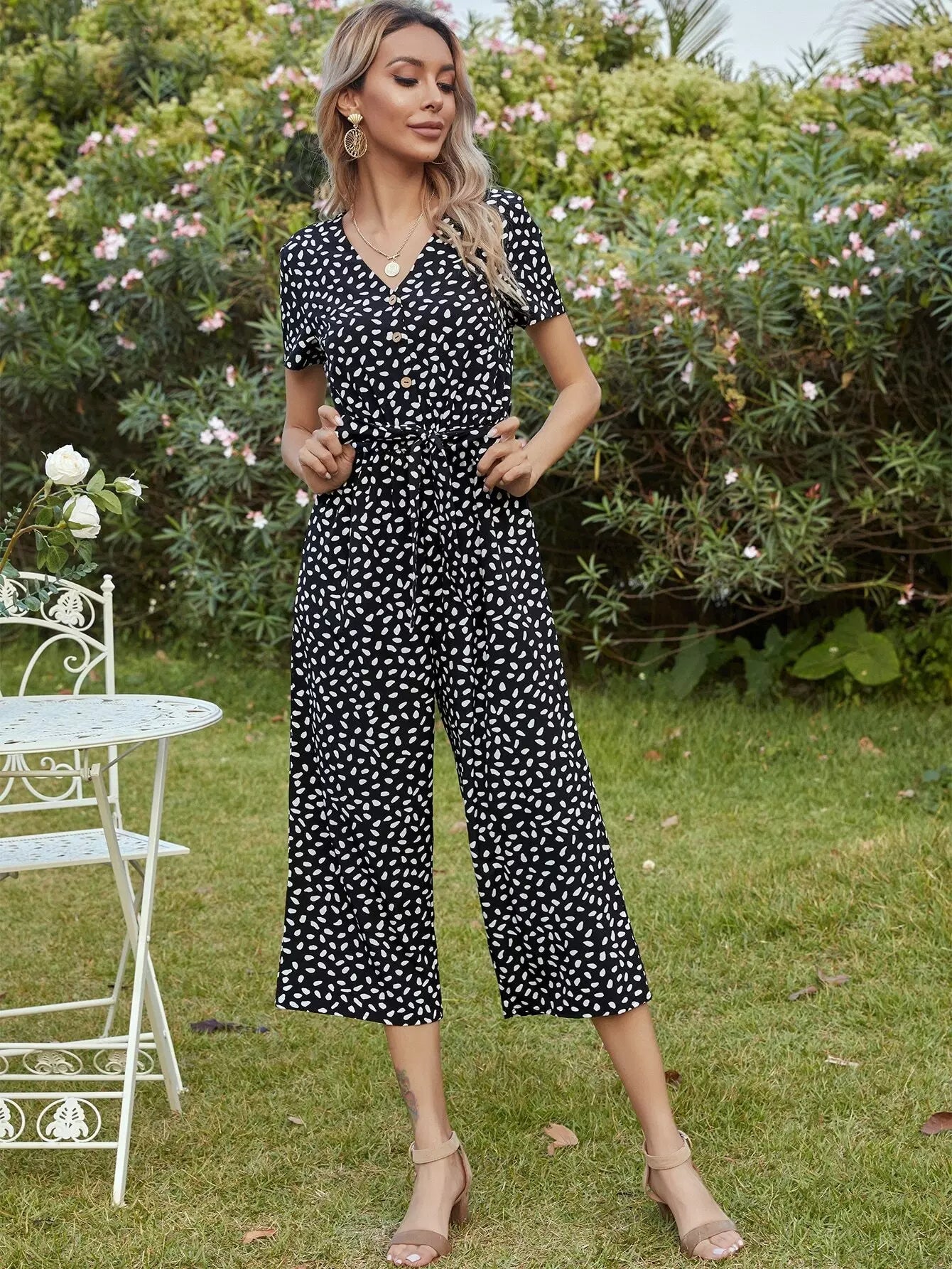 النساء - بذلة بحزام مطبوعة بالكامل