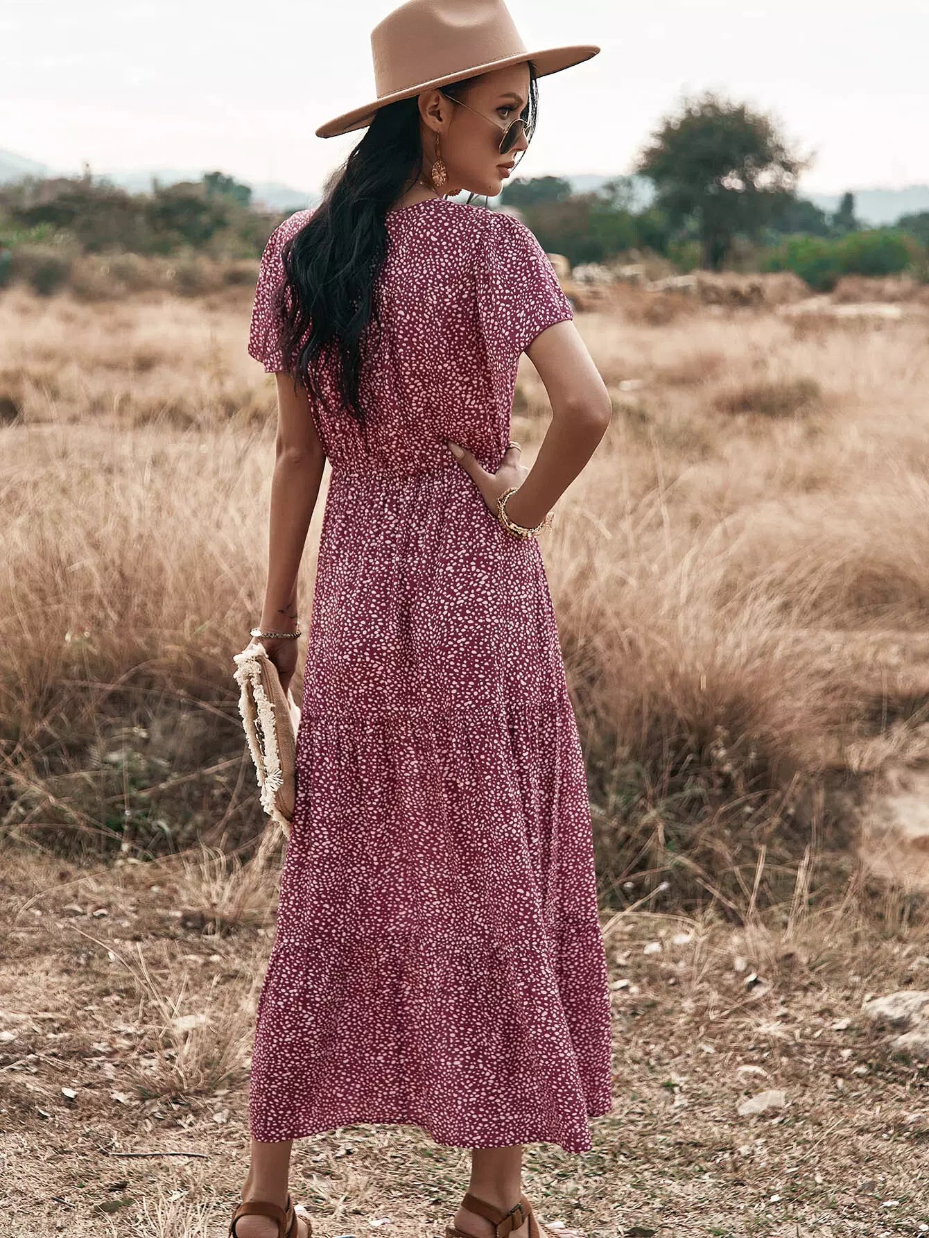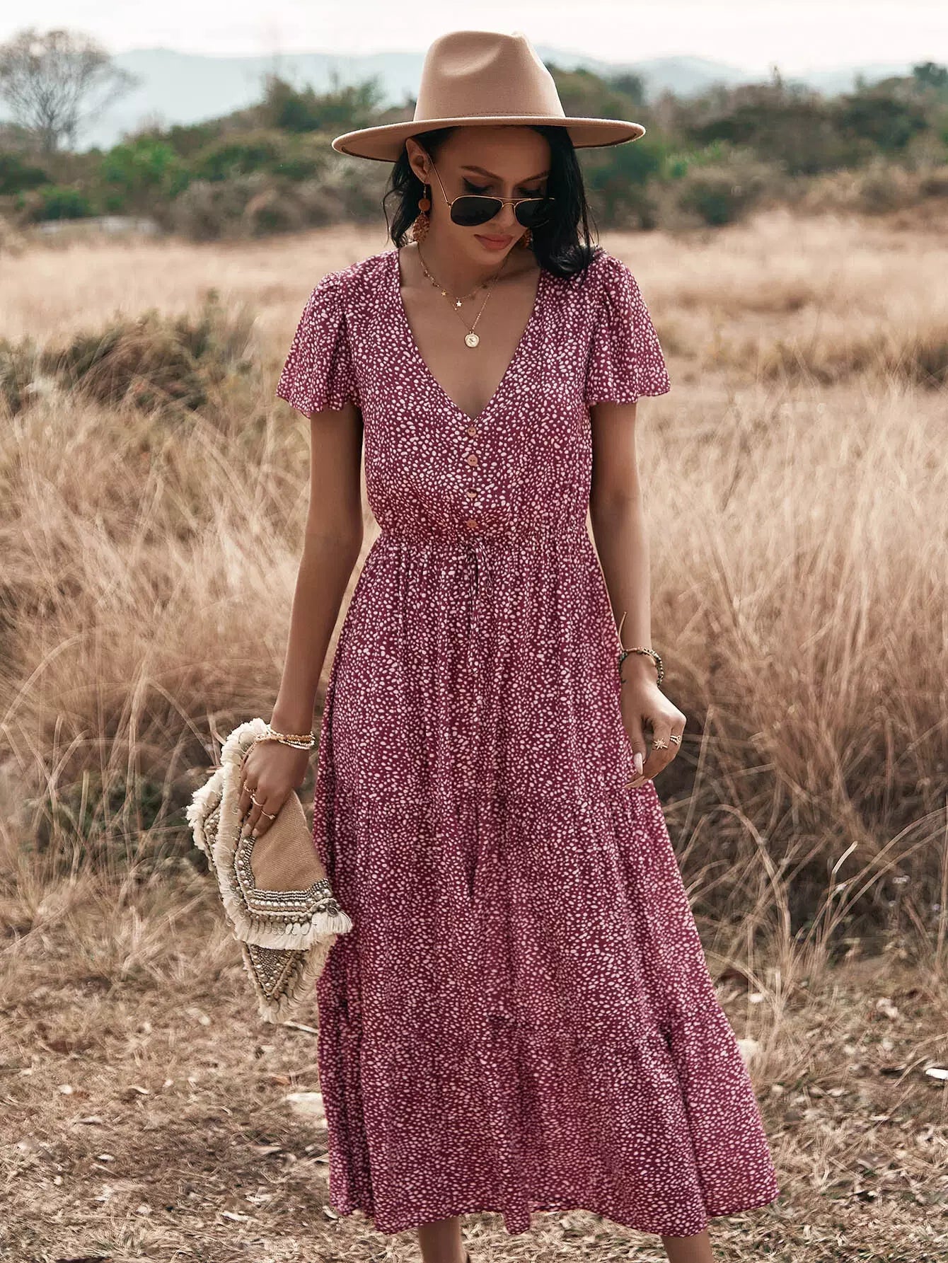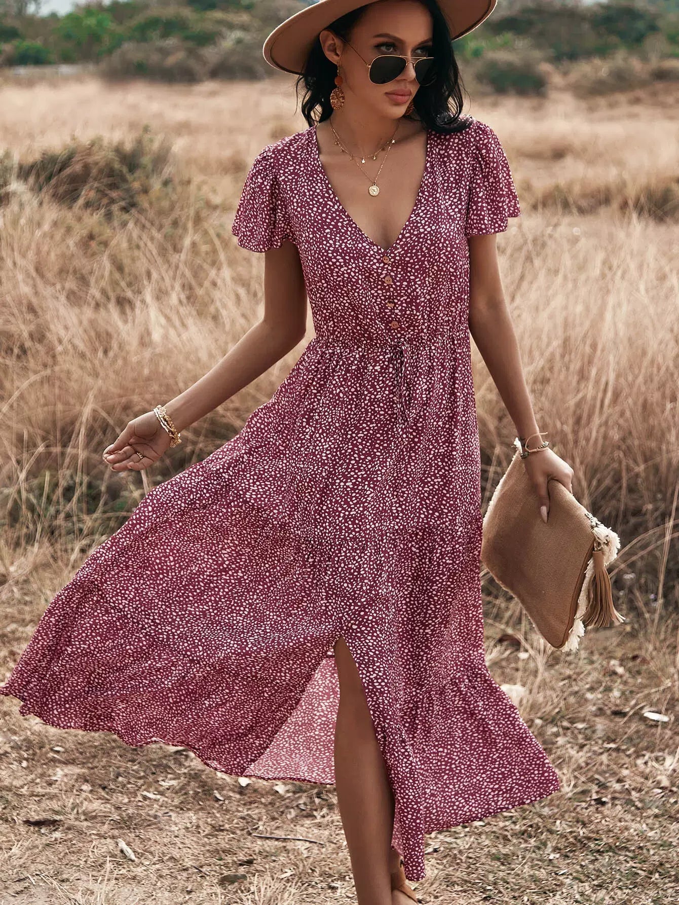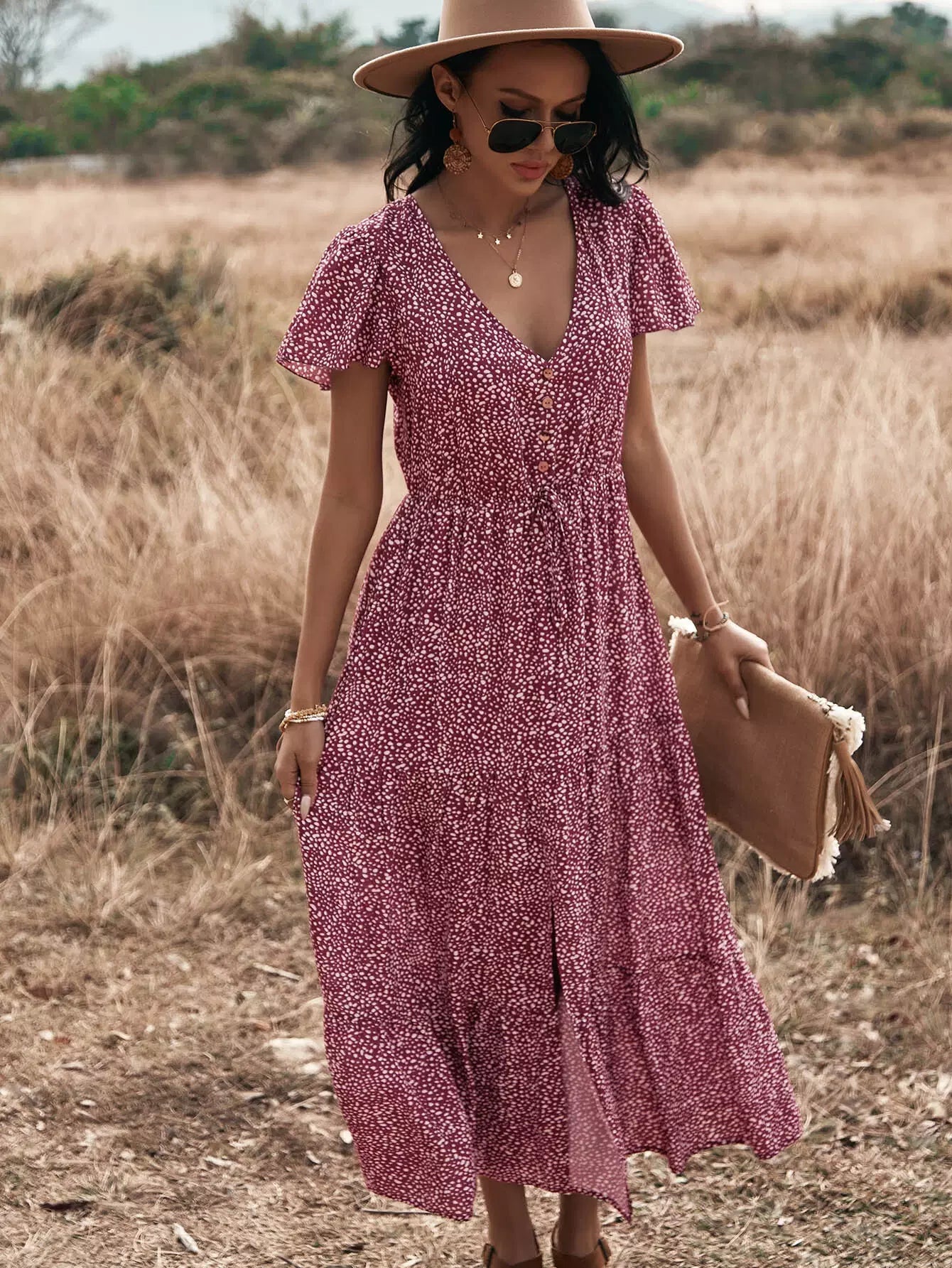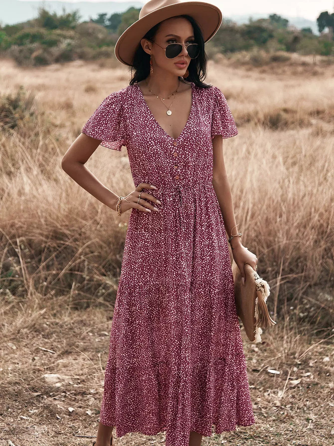 فستان بطبعة فراشات مطبوع فوقها بالكامل على شكل حرف A