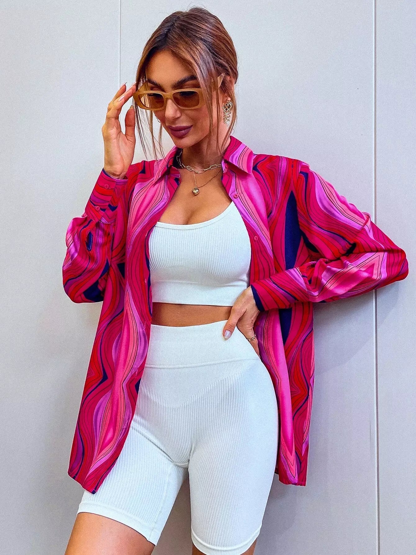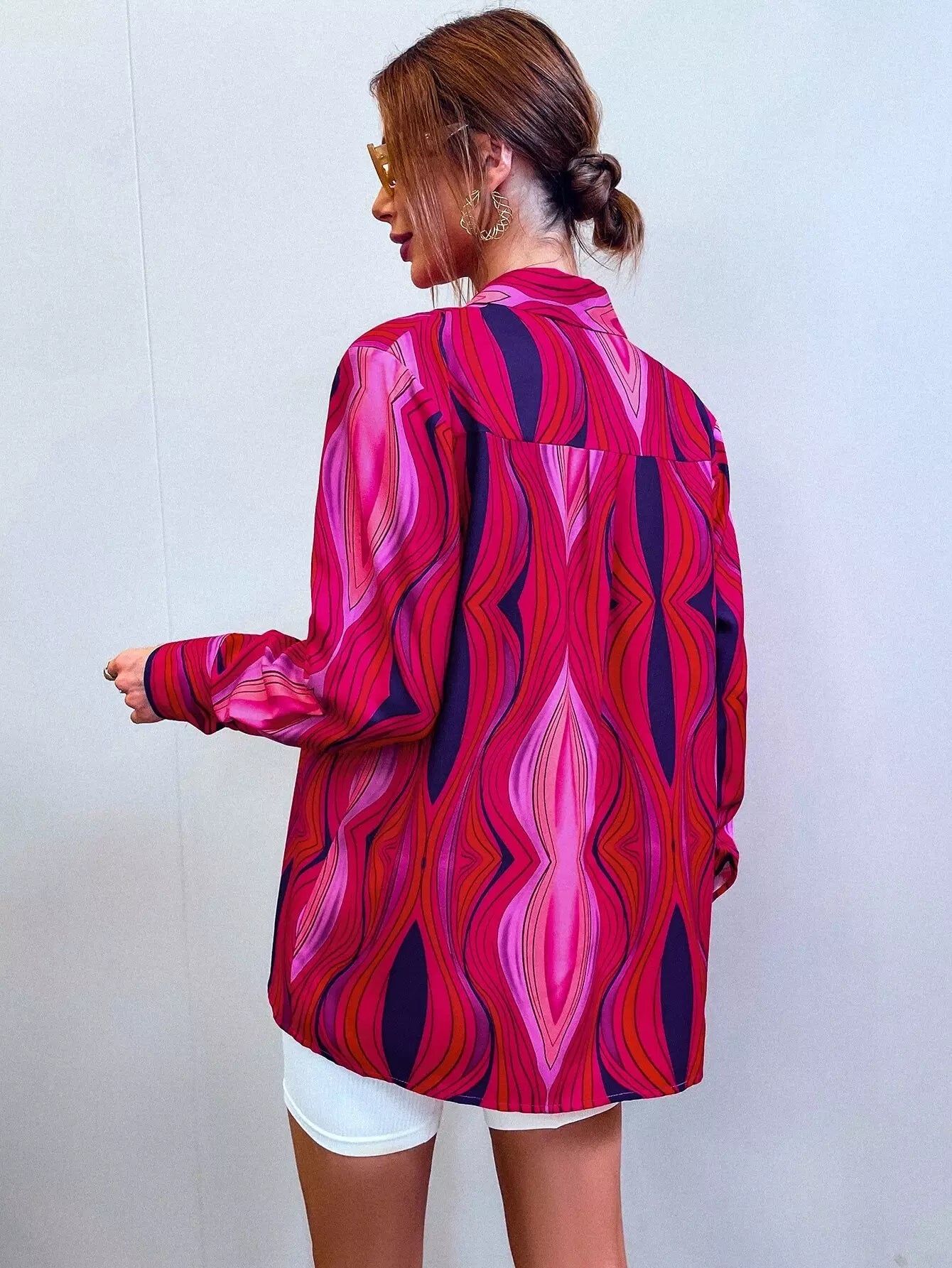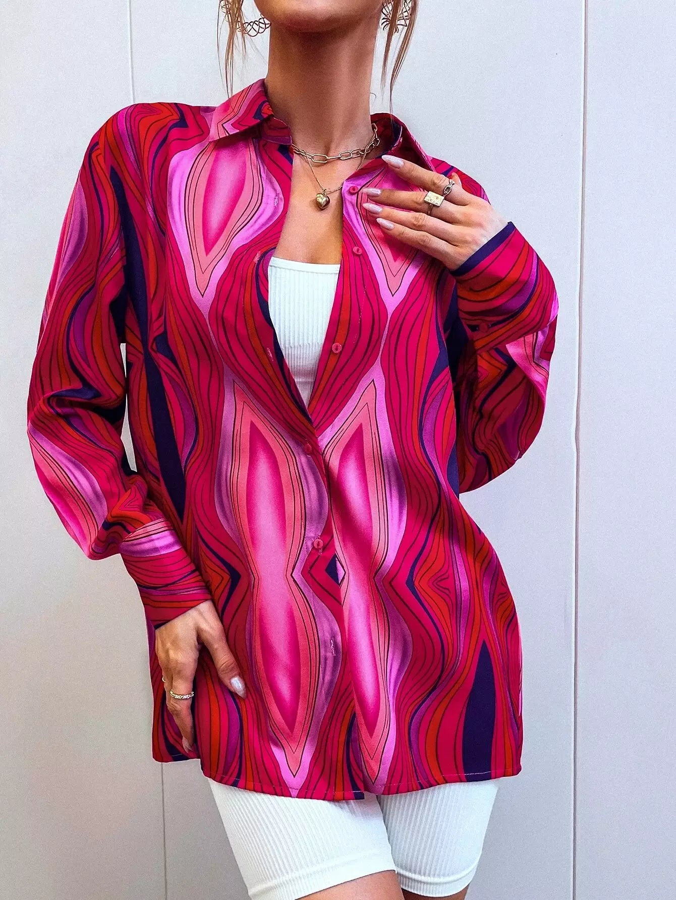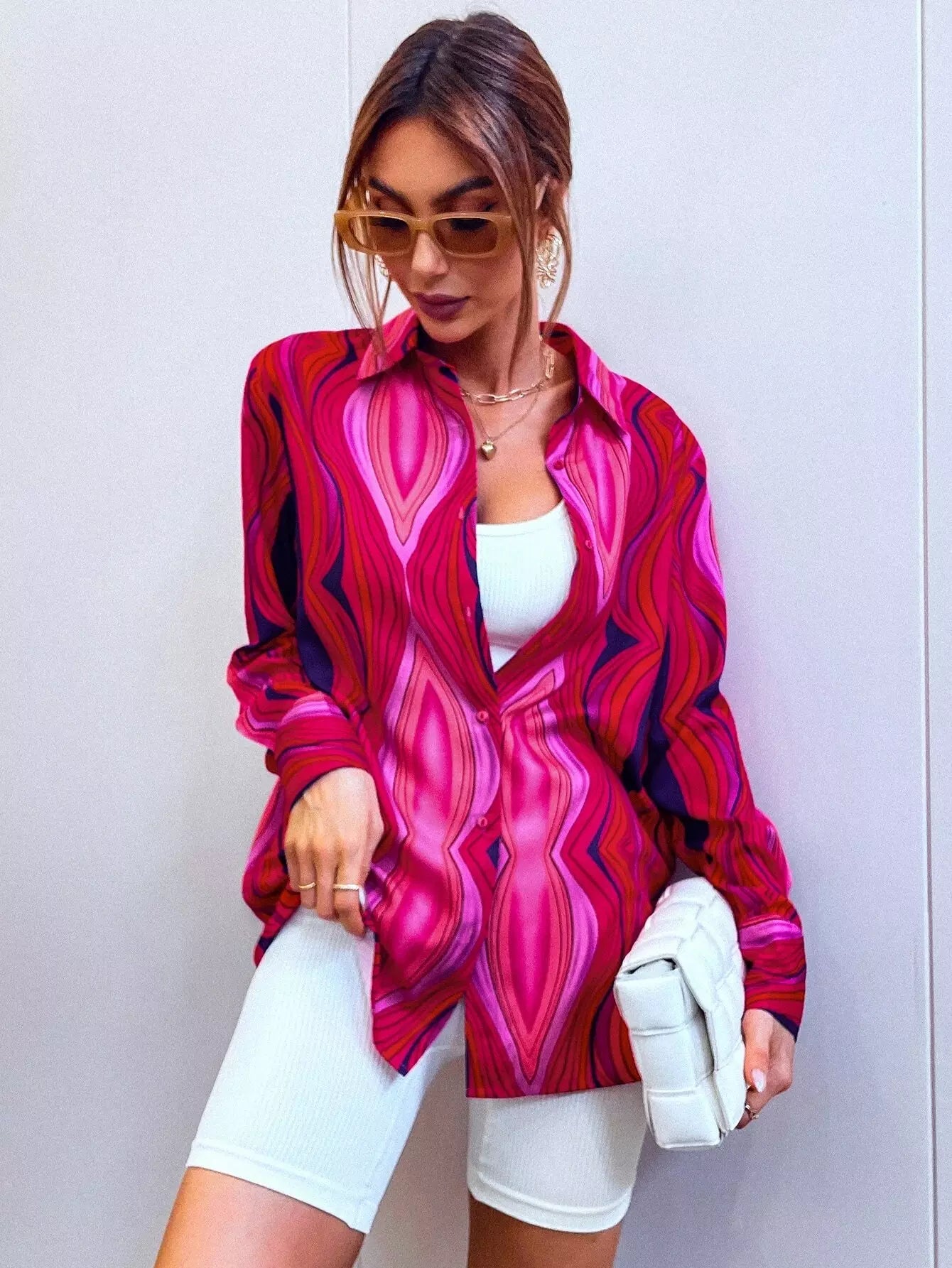 قميص بطبعة فوق الزر فوق الزر مطبوع بالكامل