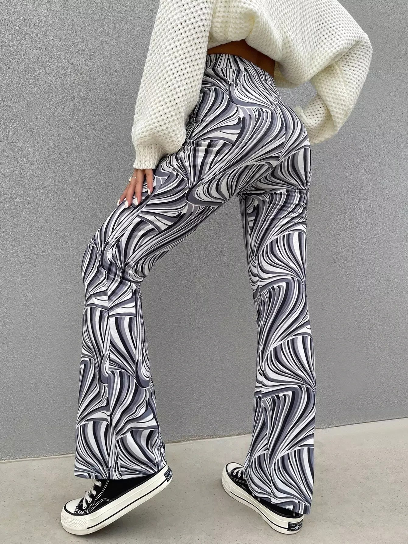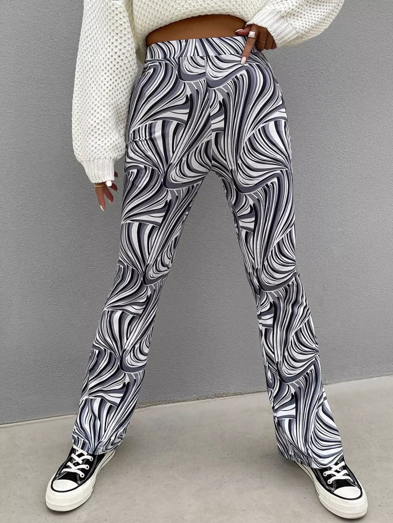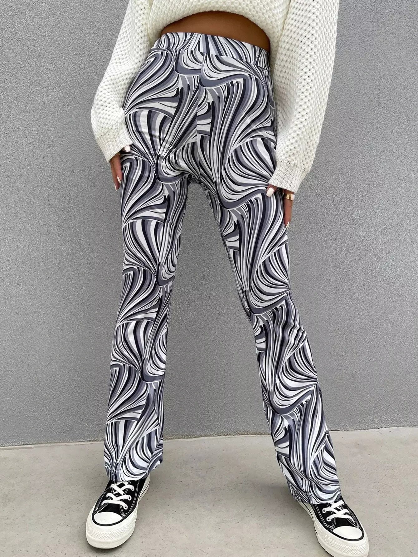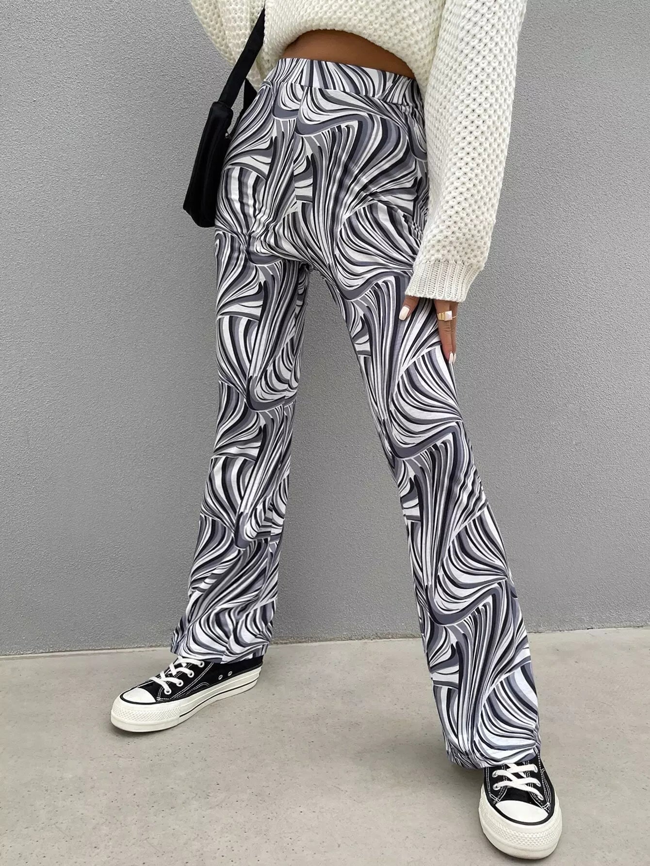 بنطلون بطبعة فوق البنطلون الواسع الساقين