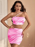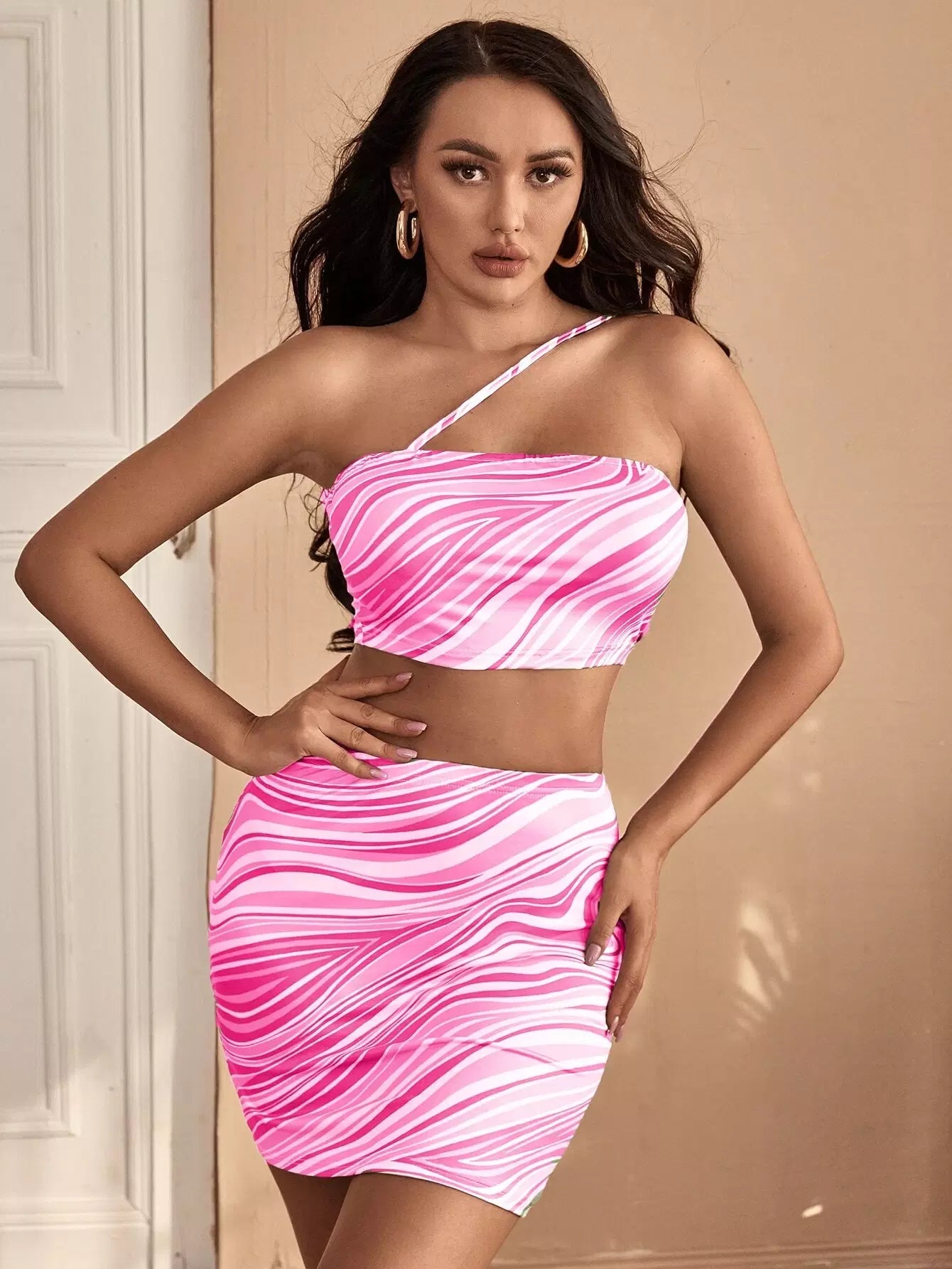بلوزة وتنورة بطبعة فوق الكتف الواحد مطبوعة بالكامل