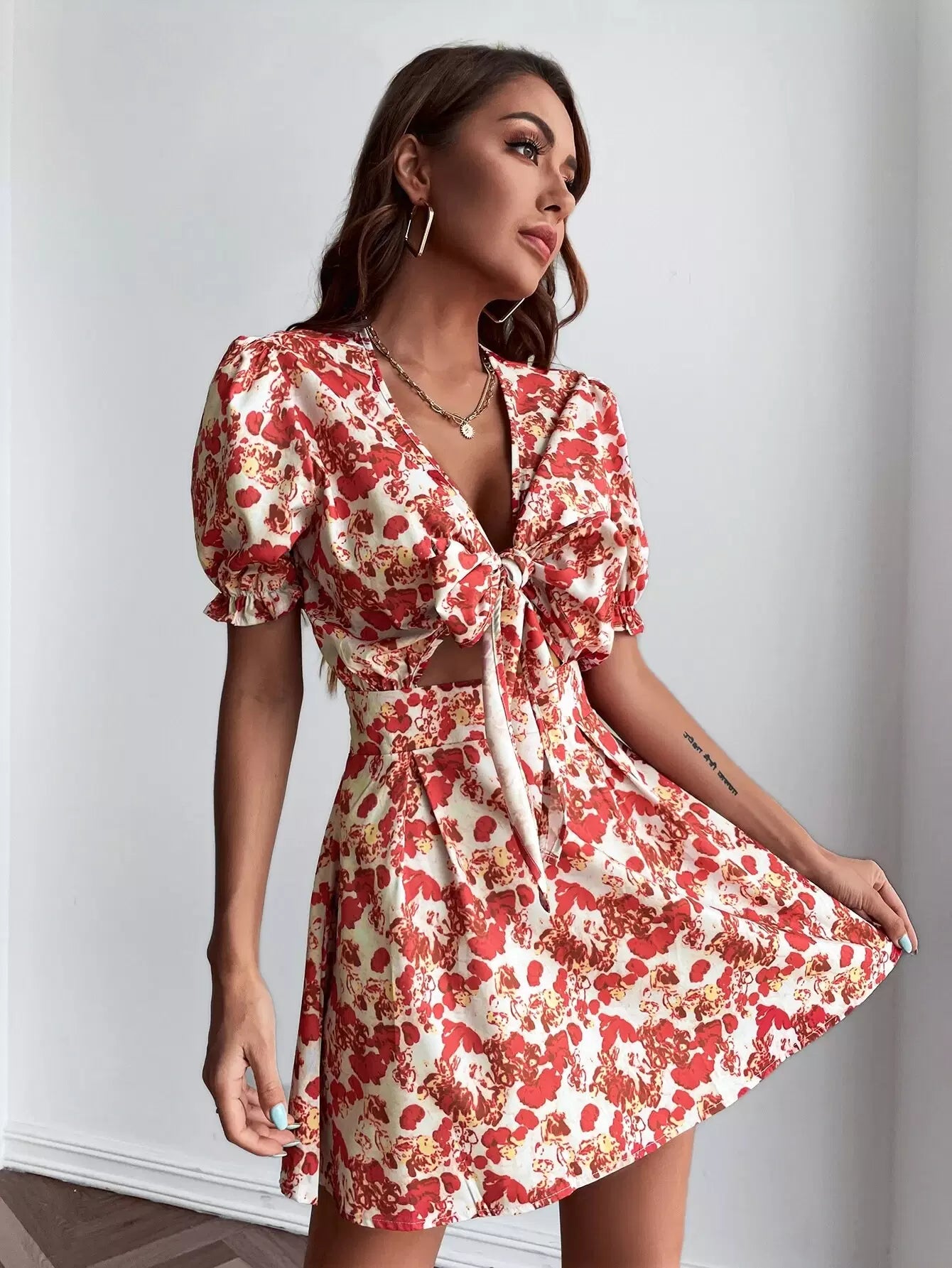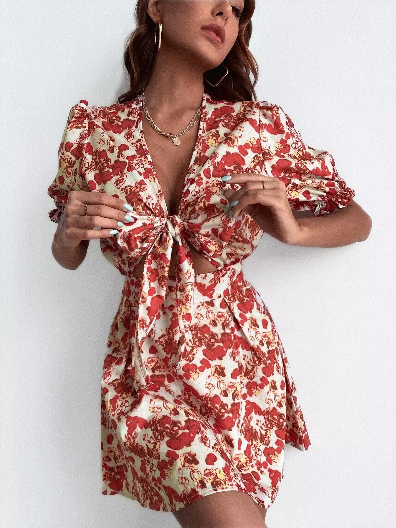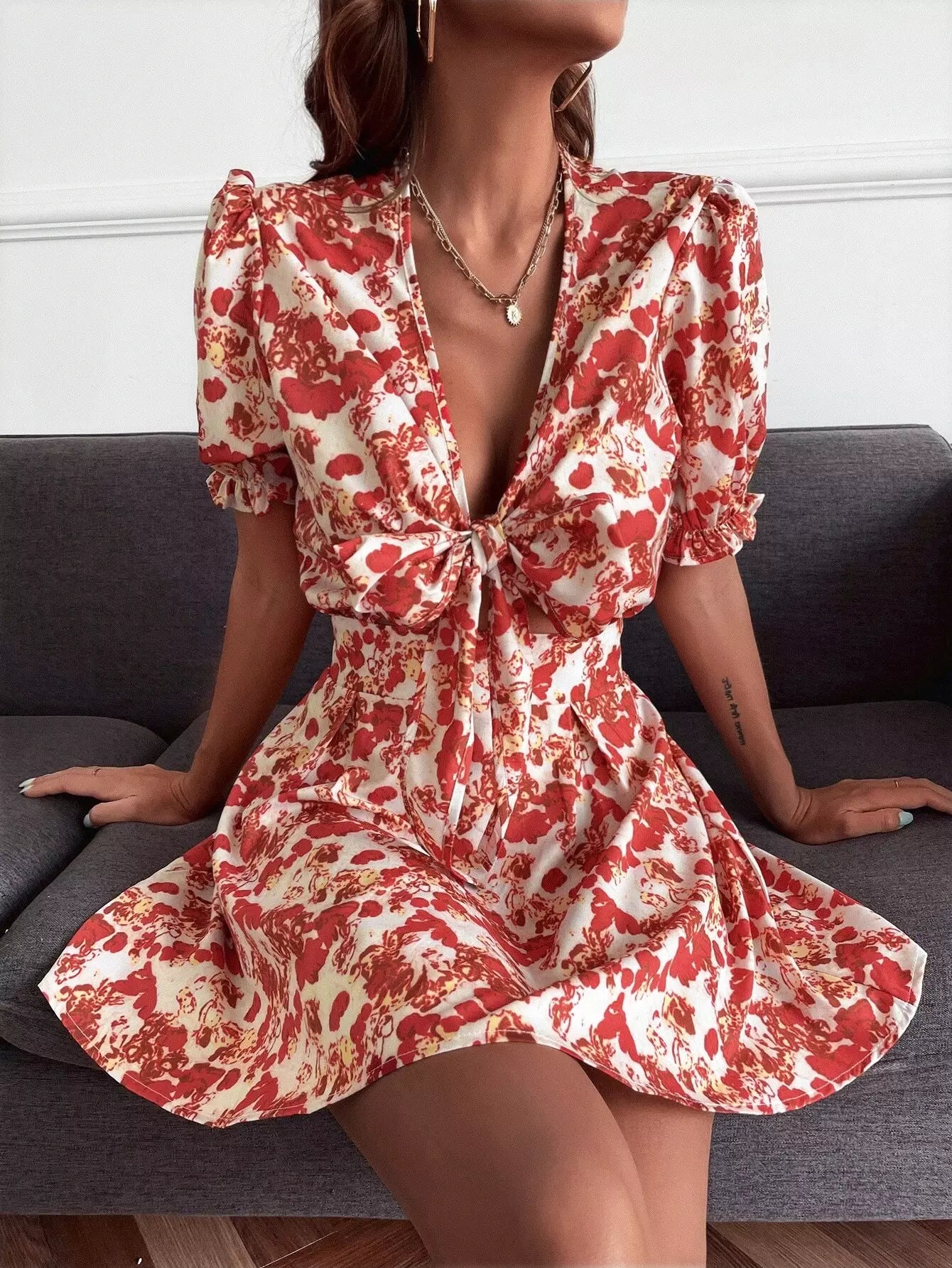 فستان بقصة A مع رباط أمامي وطبعة كاملة