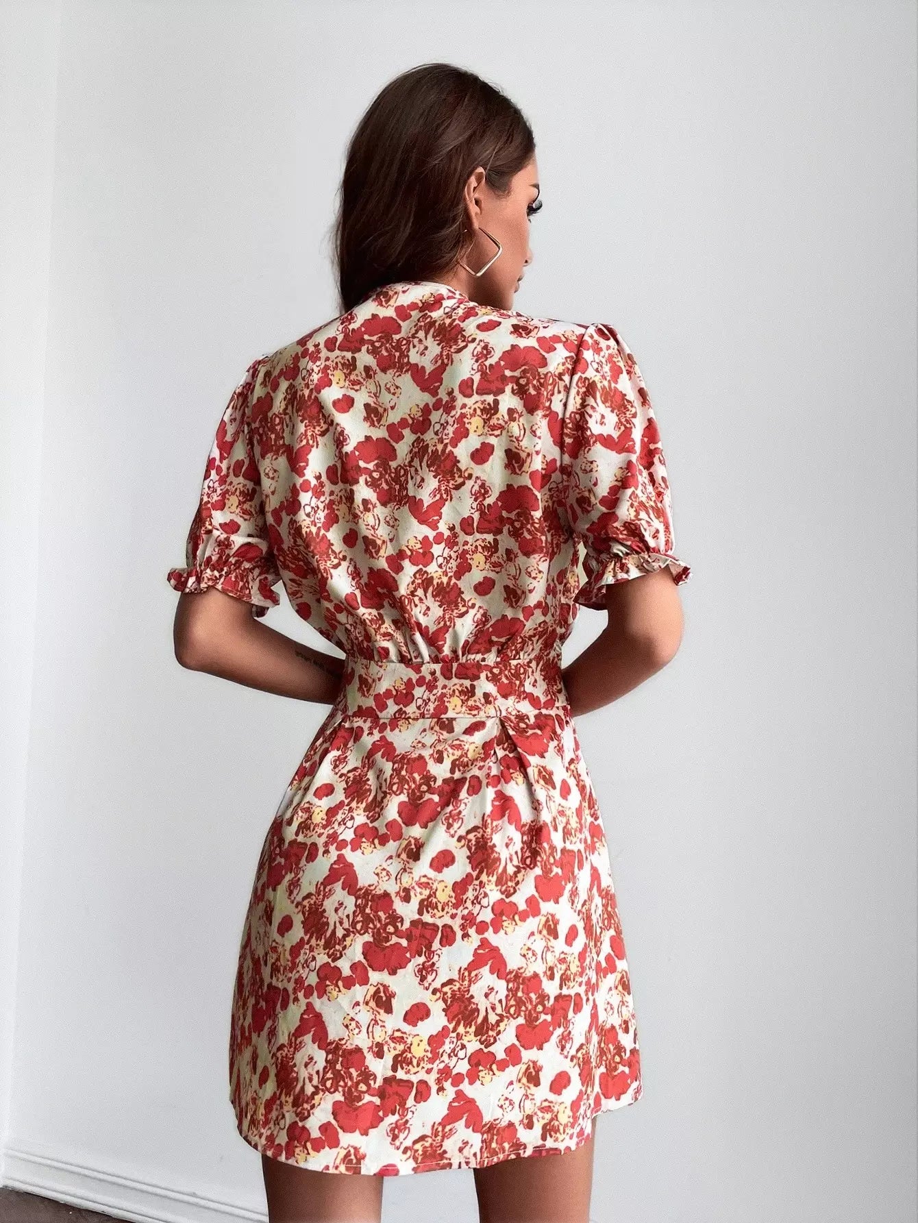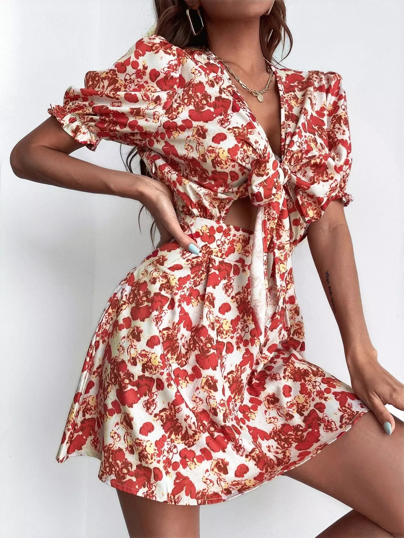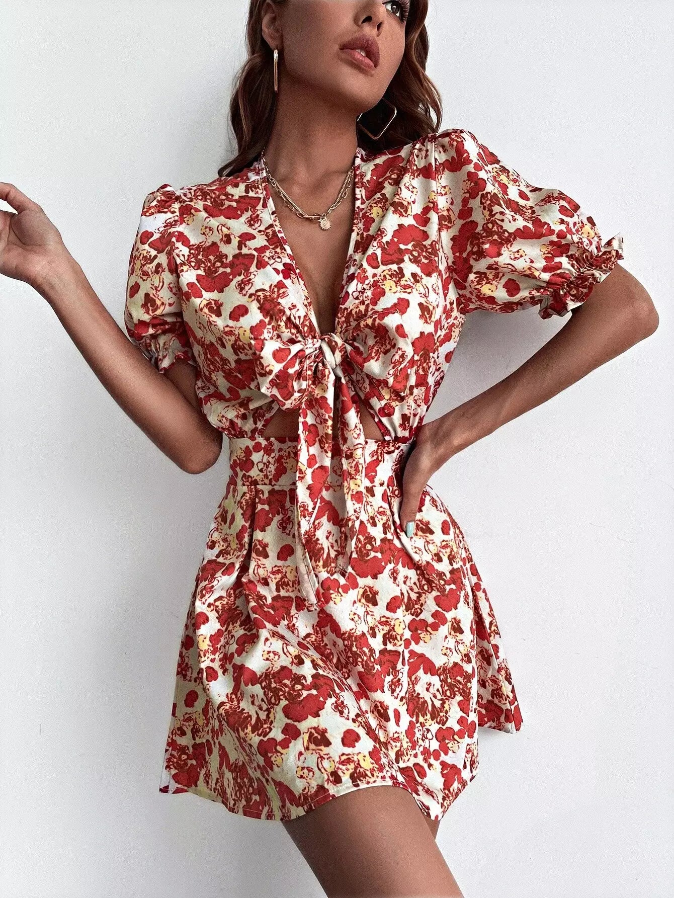 فستان بقصة A مع رباط أمامي وطبعة كاملة