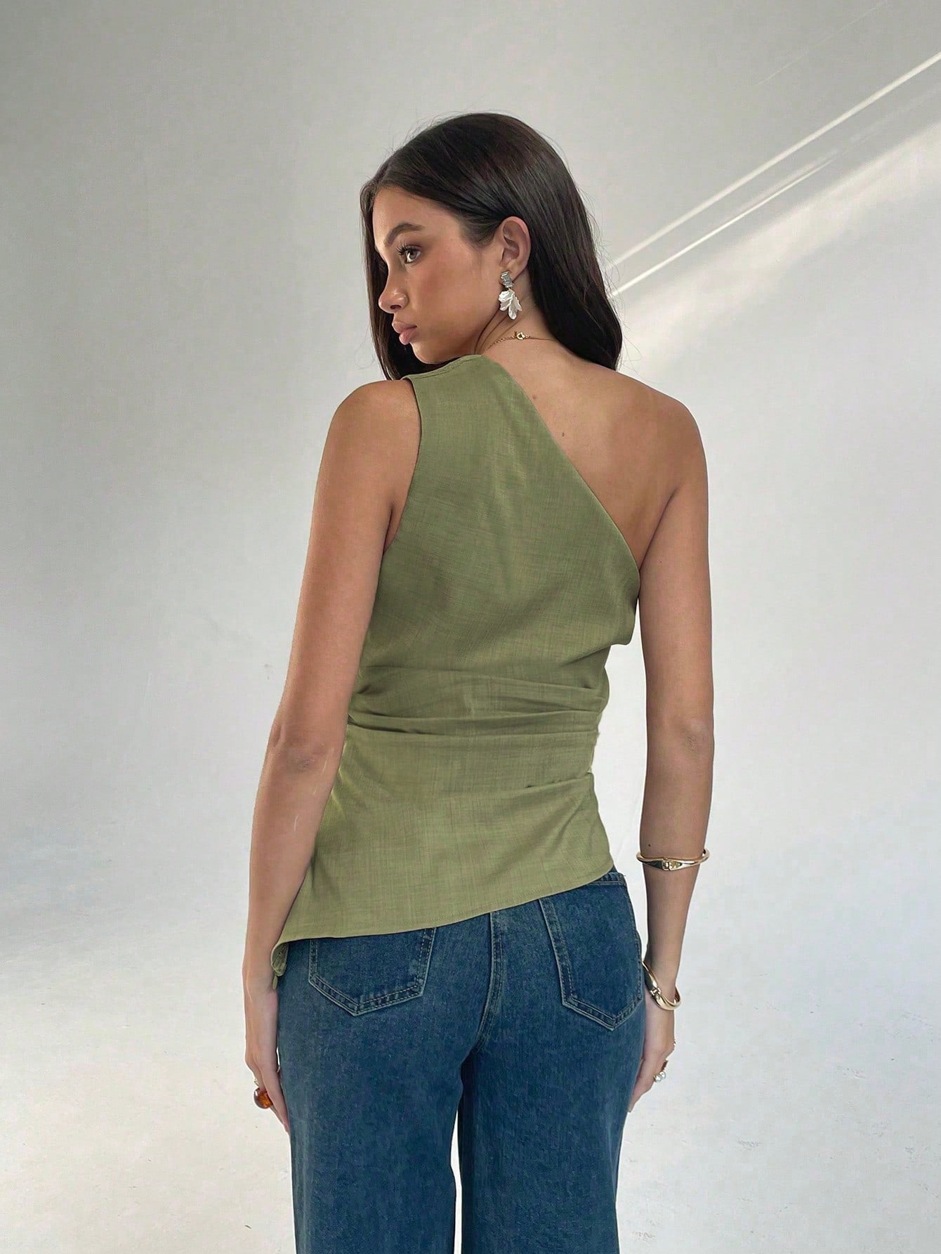 women Aloruh Sleeveless Oblique Collar Side Ruched Commuting Fashionable Women Blouse