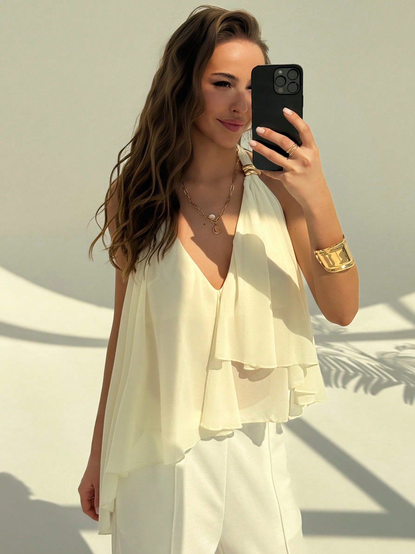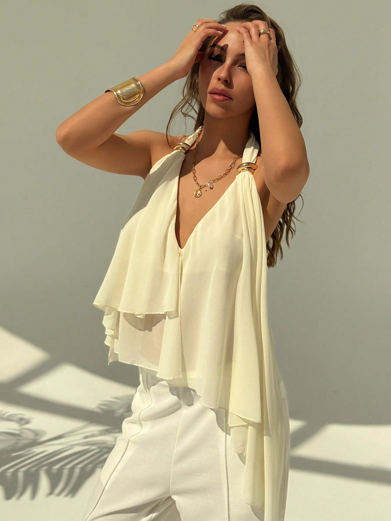 Aloruh Women's Sexy Asymmetric Hem Backless Halter Neck Shirt, Summer Summer Summer Outfits Summer Clothes