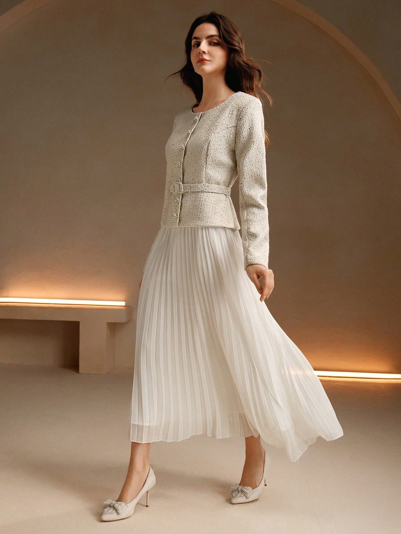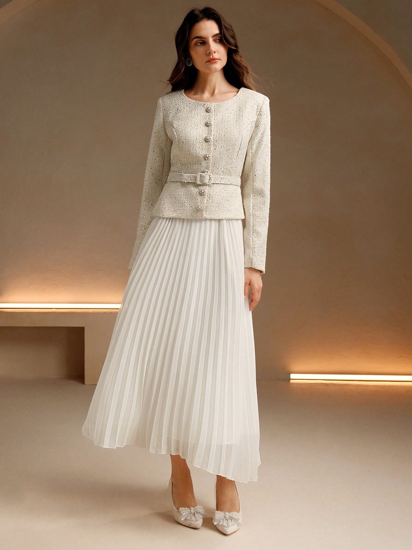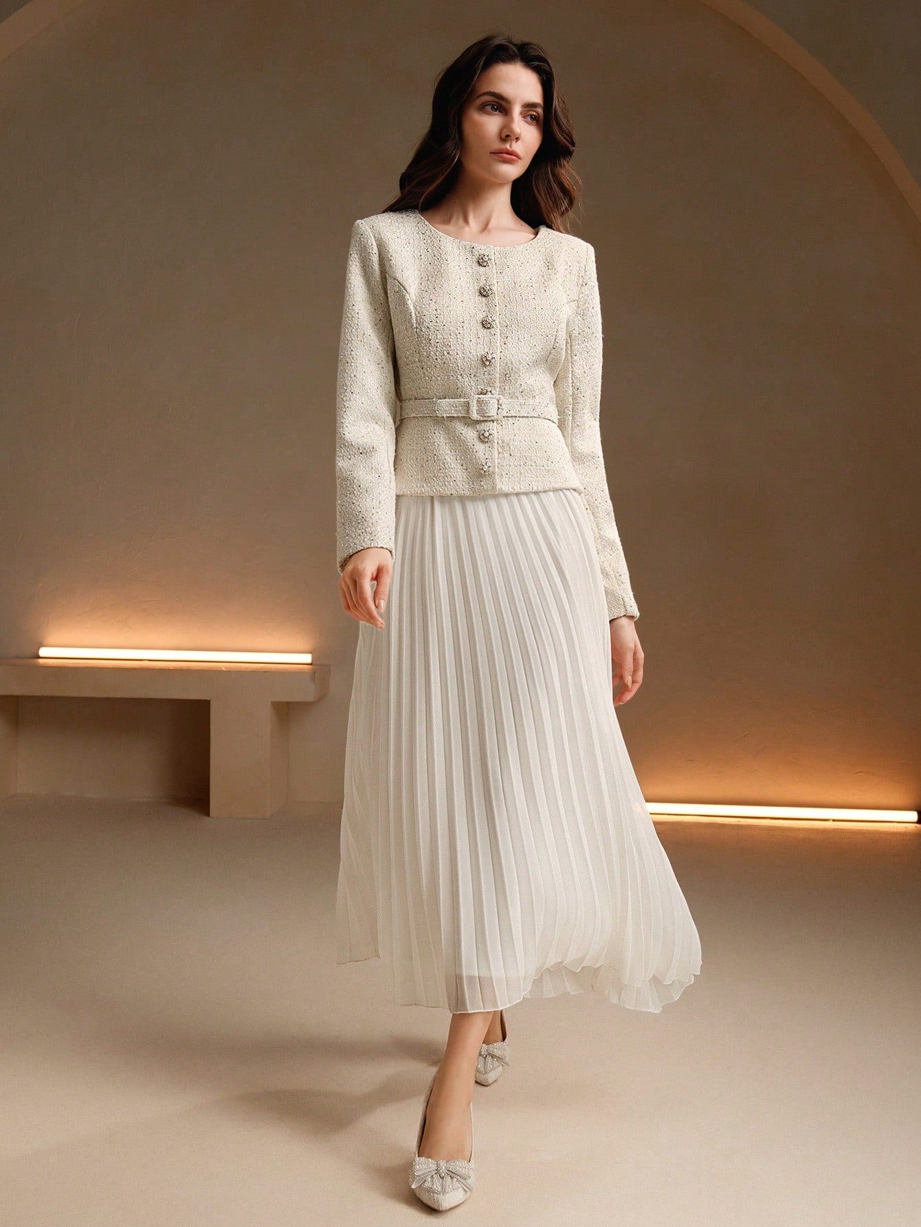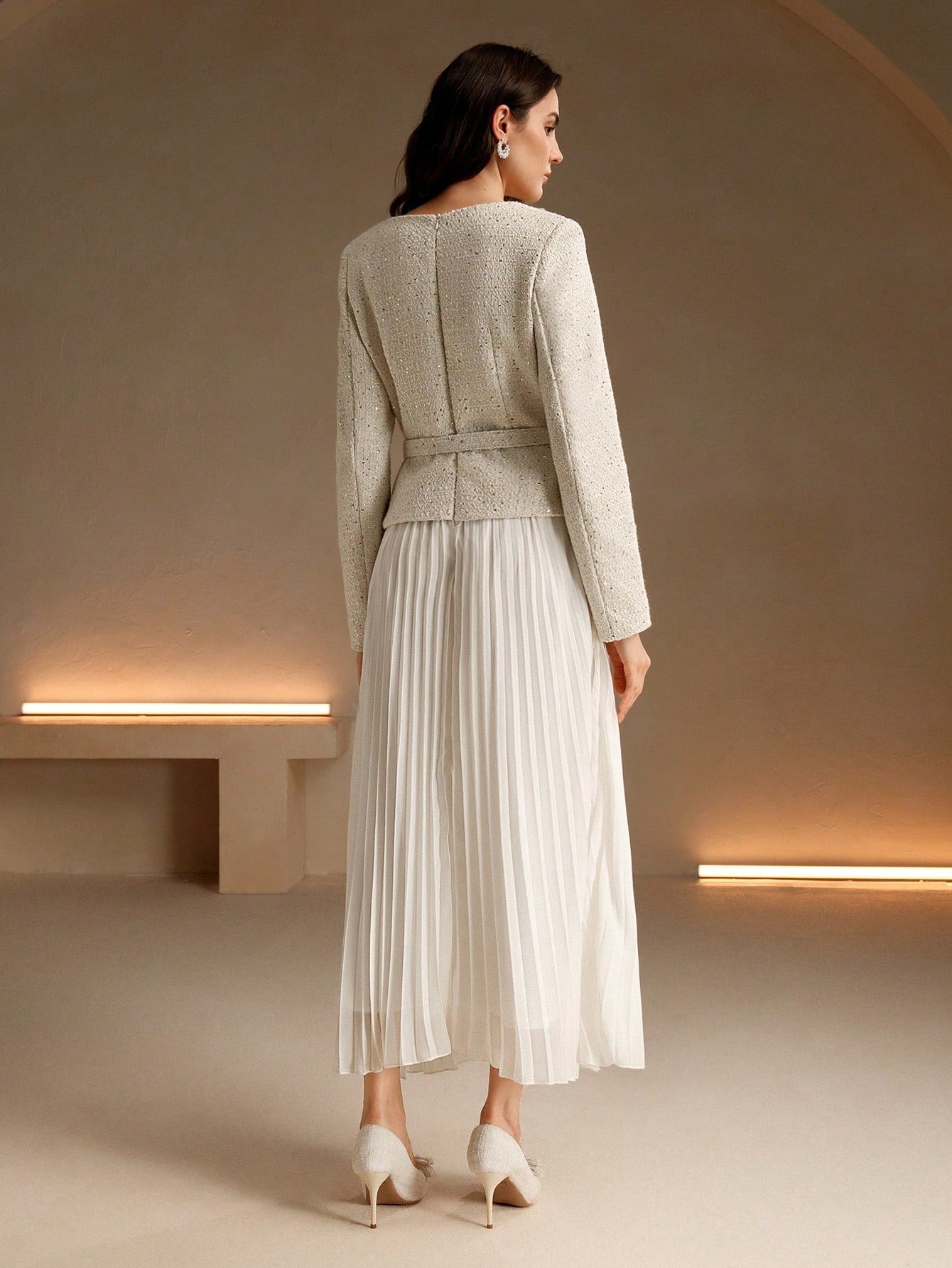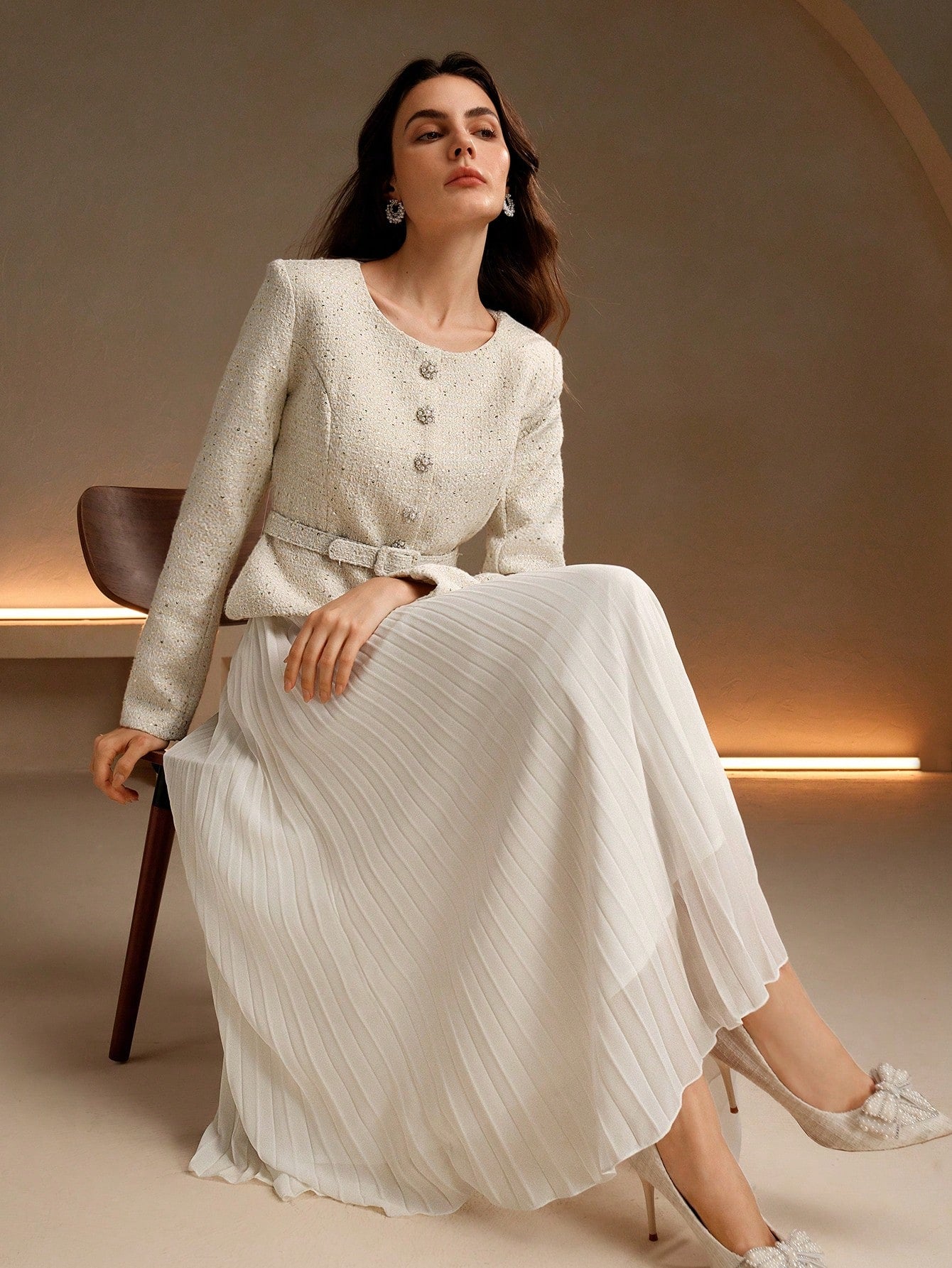 women Anewsta Women Long Sleeve Patchwork Pleated Dress Dress