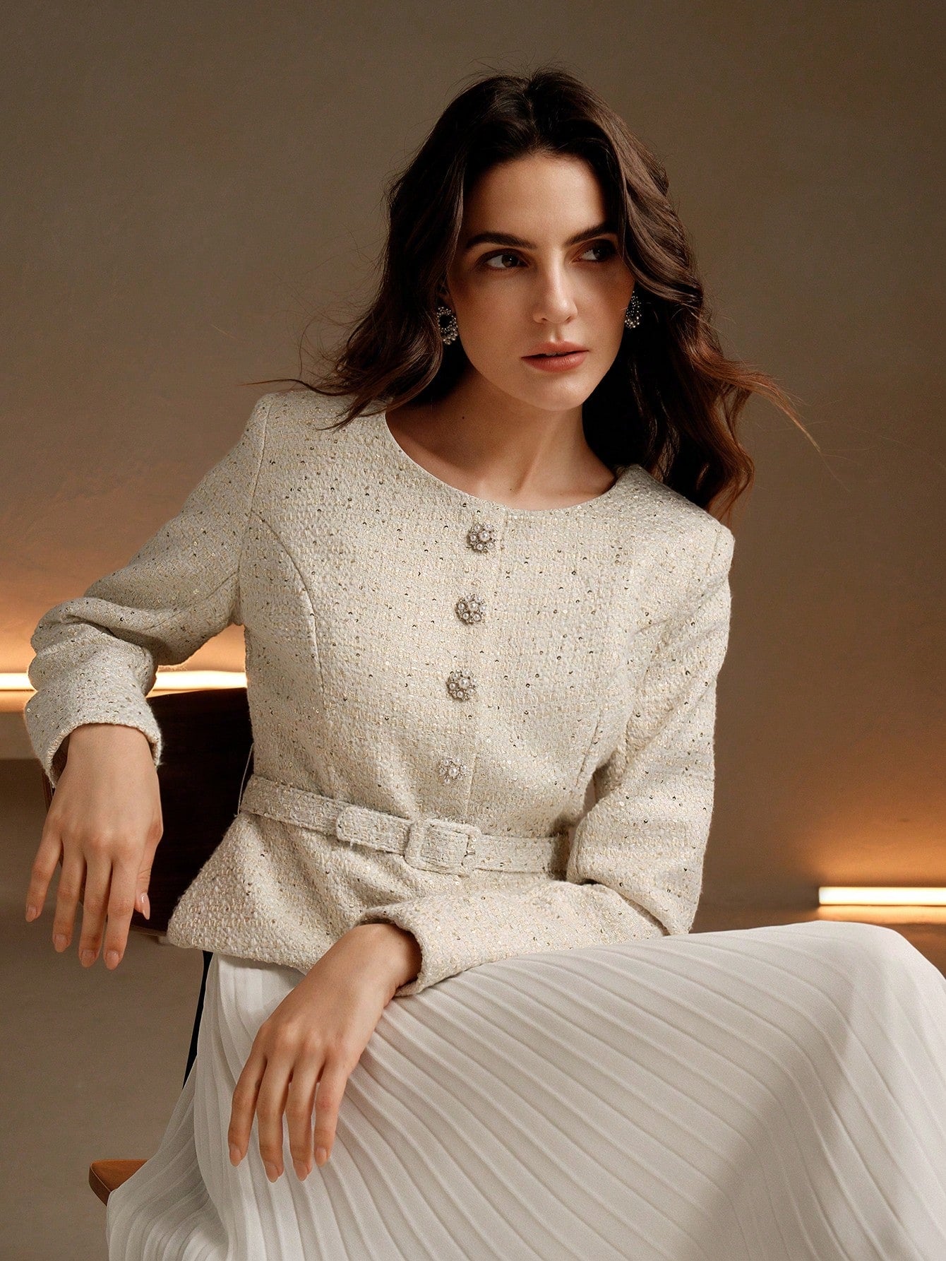 فستان أنيوستا النسائي بأكمام طويلة ومطرز بكسرات