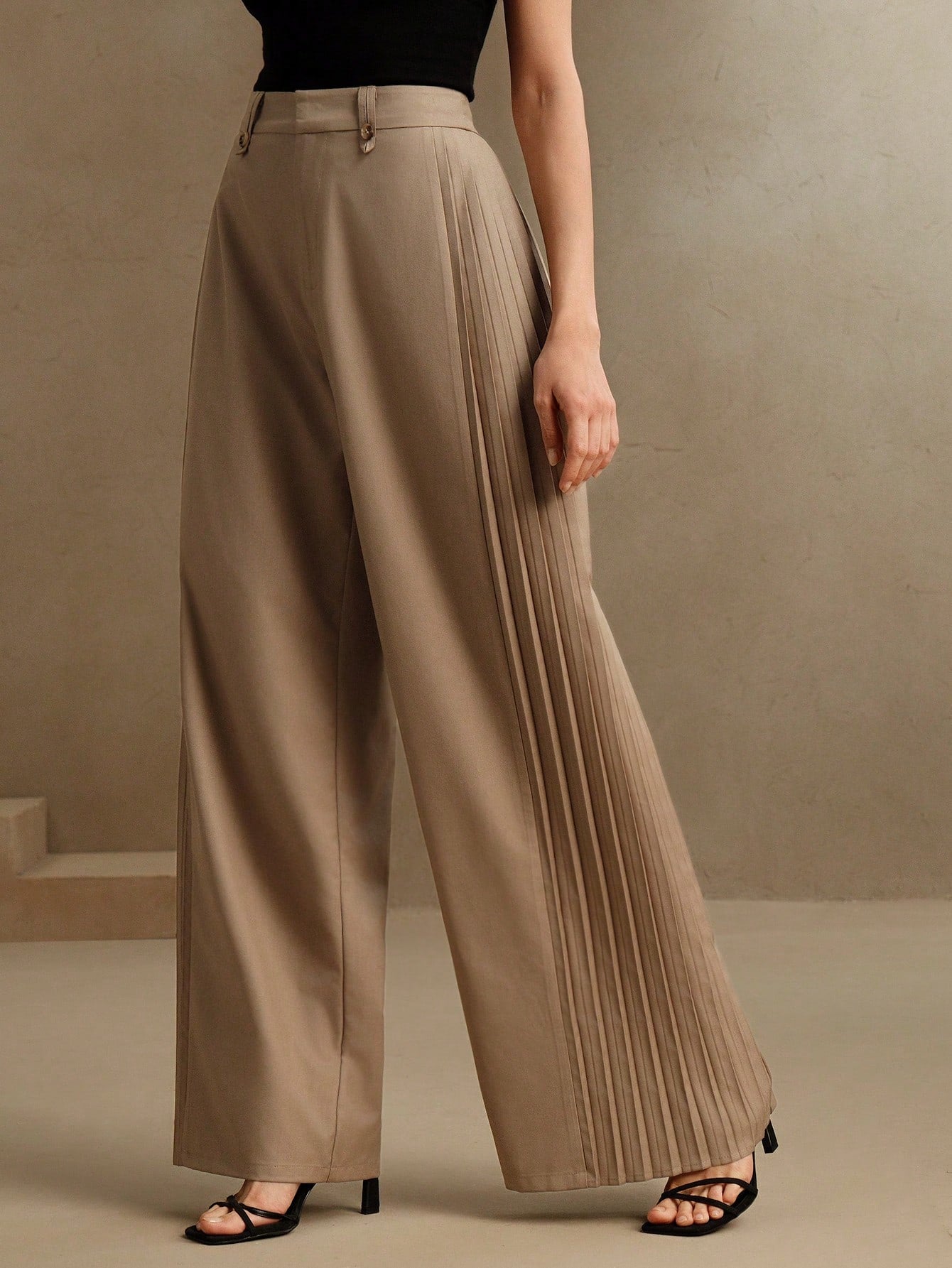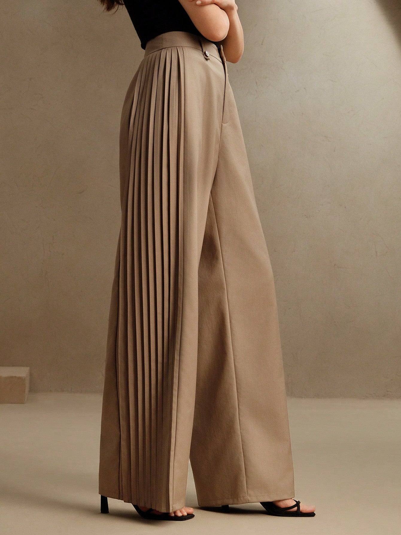 بنطلون أنيستا النسائي الأنيق ذو الطيات، بقصة واسعة الساق، بتصميم "عصري، متواضع"، ربيع/صيف