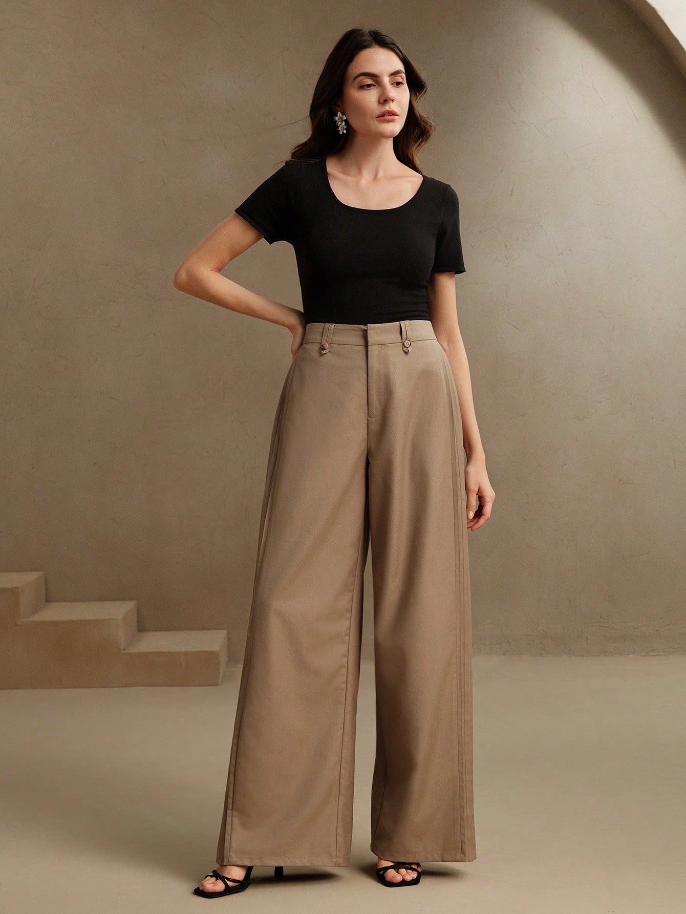 Anewsta Women's Pleated Elegant City Pants, Wide Leg Cut, "Old Money, Modest" Style, Spring/Summer