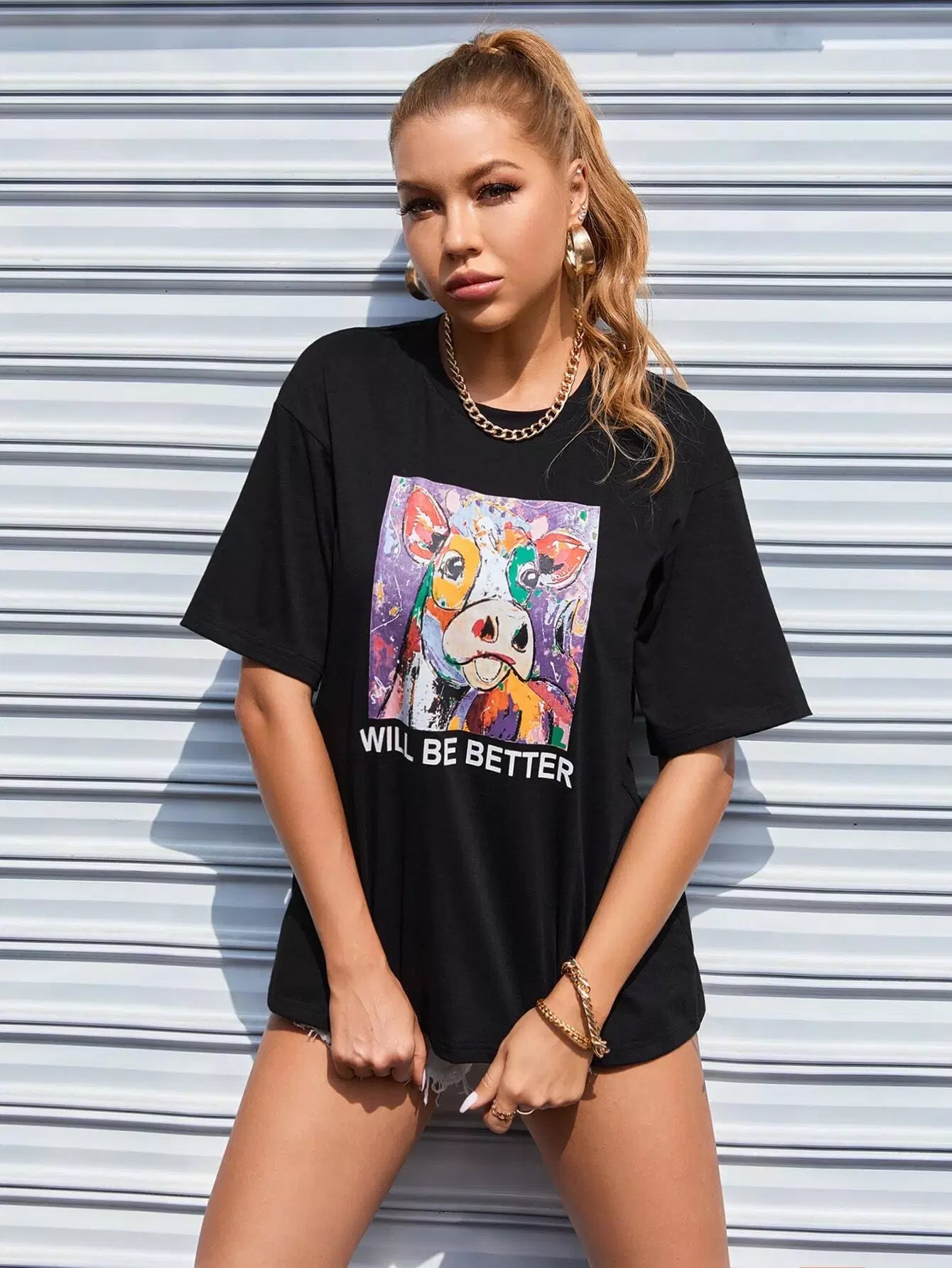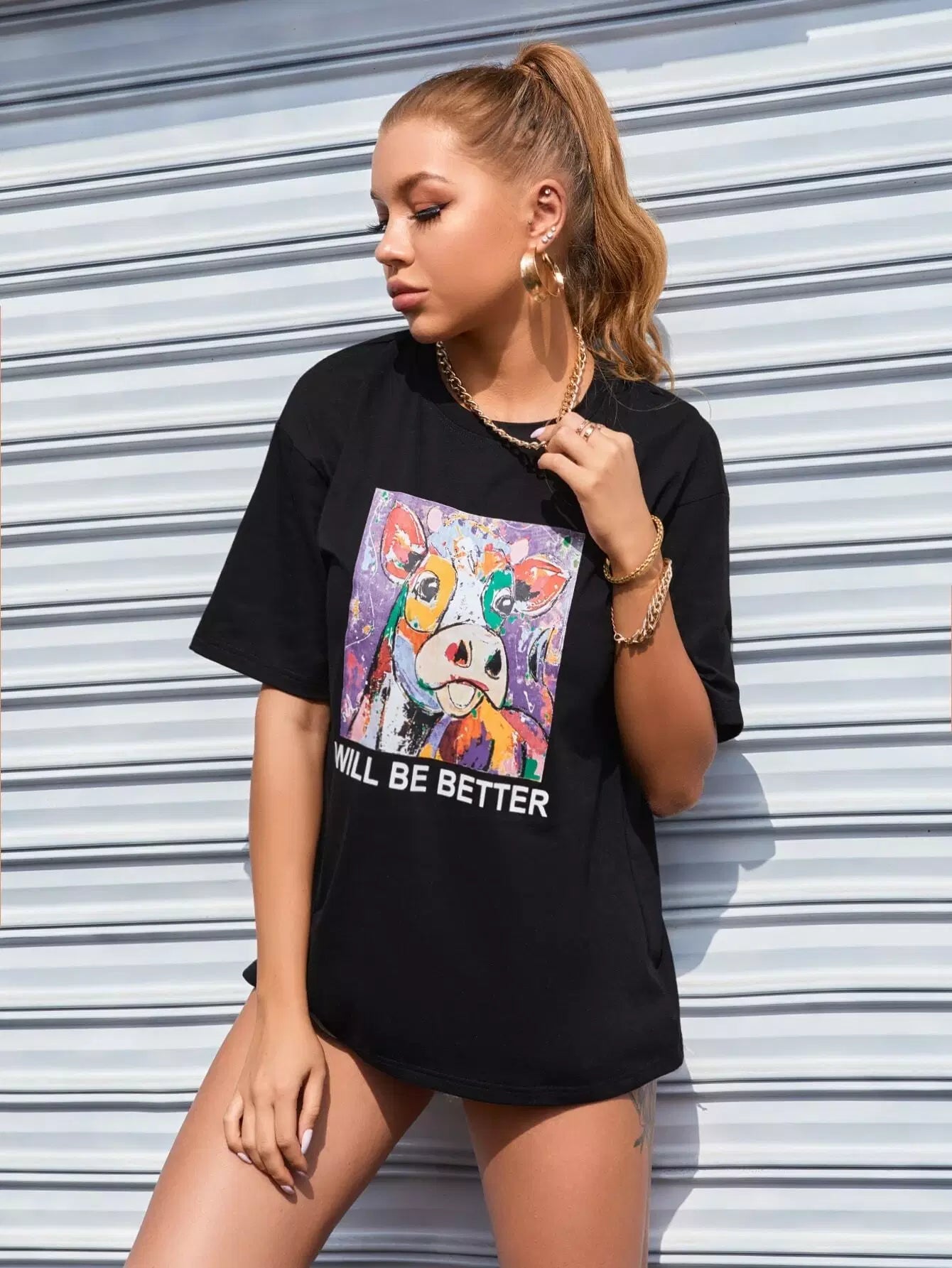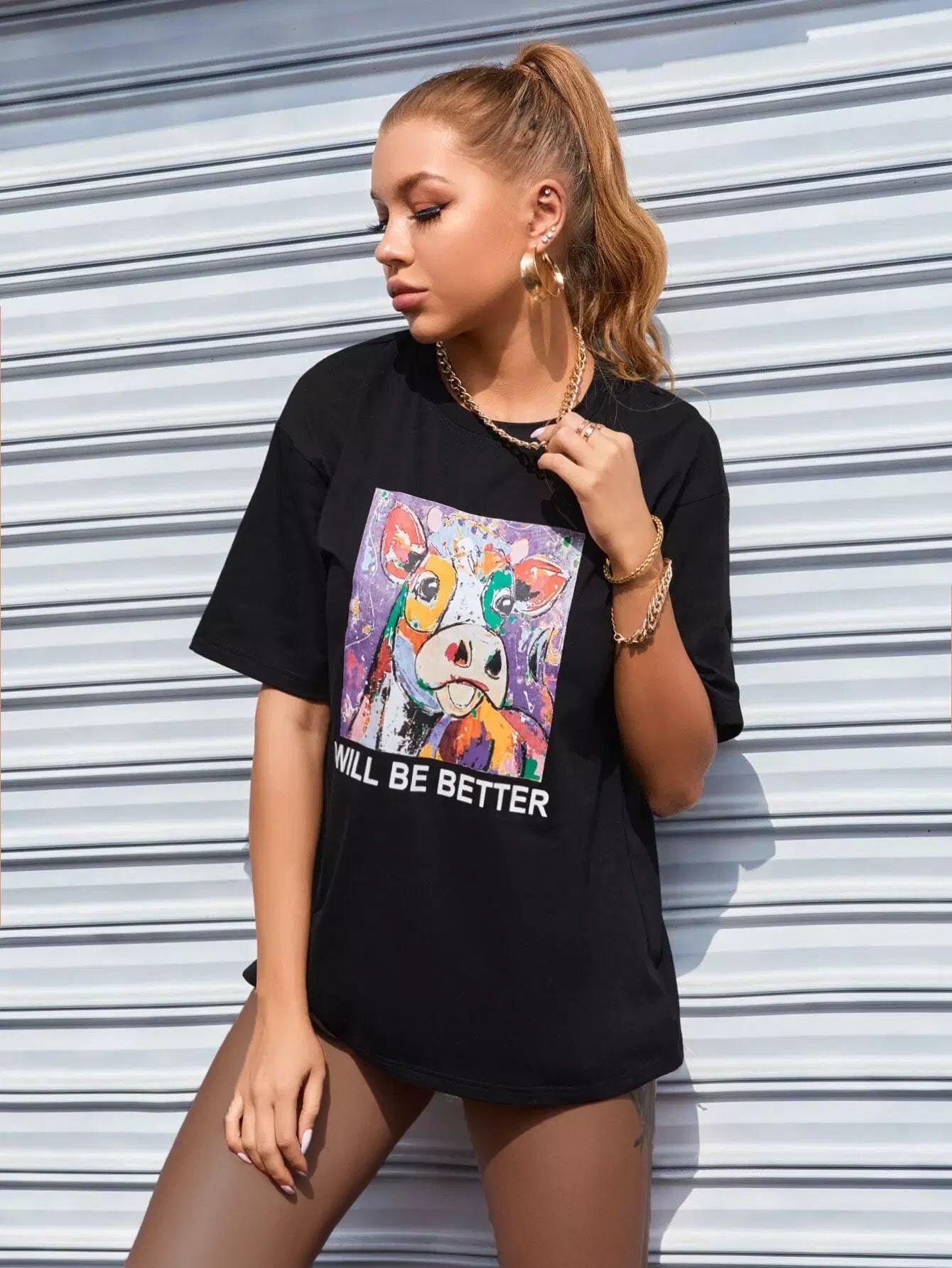 تي شيرت جرافيك على شكل حيوان وشعار