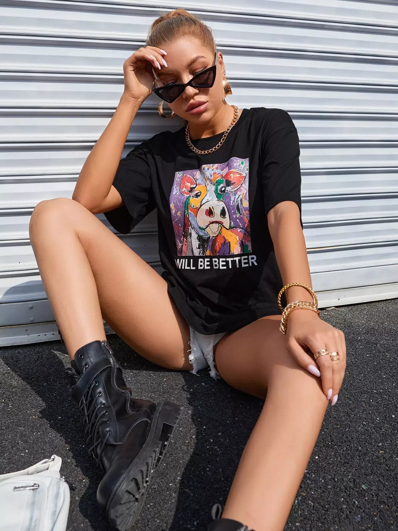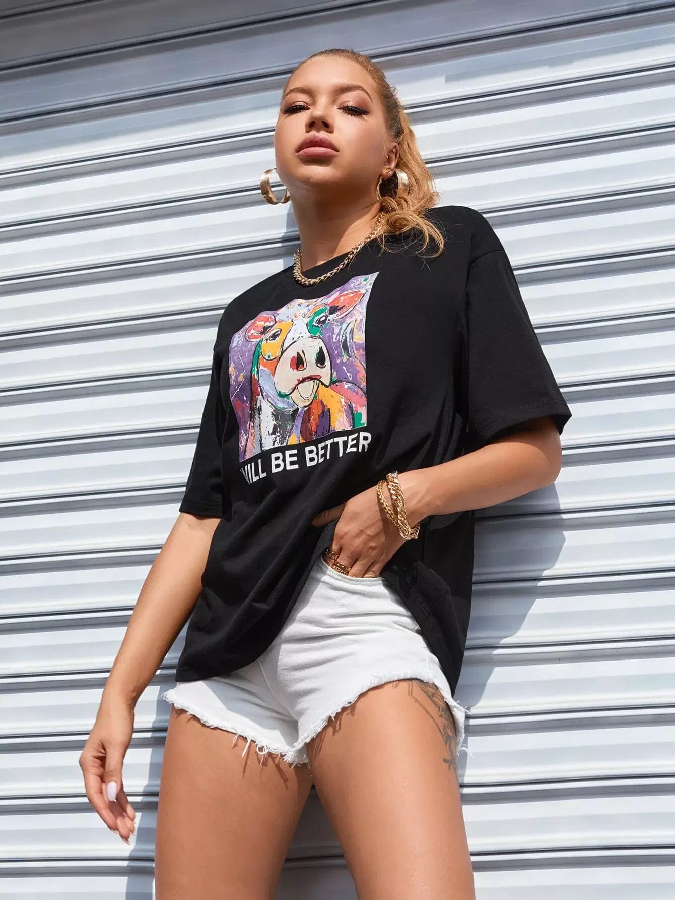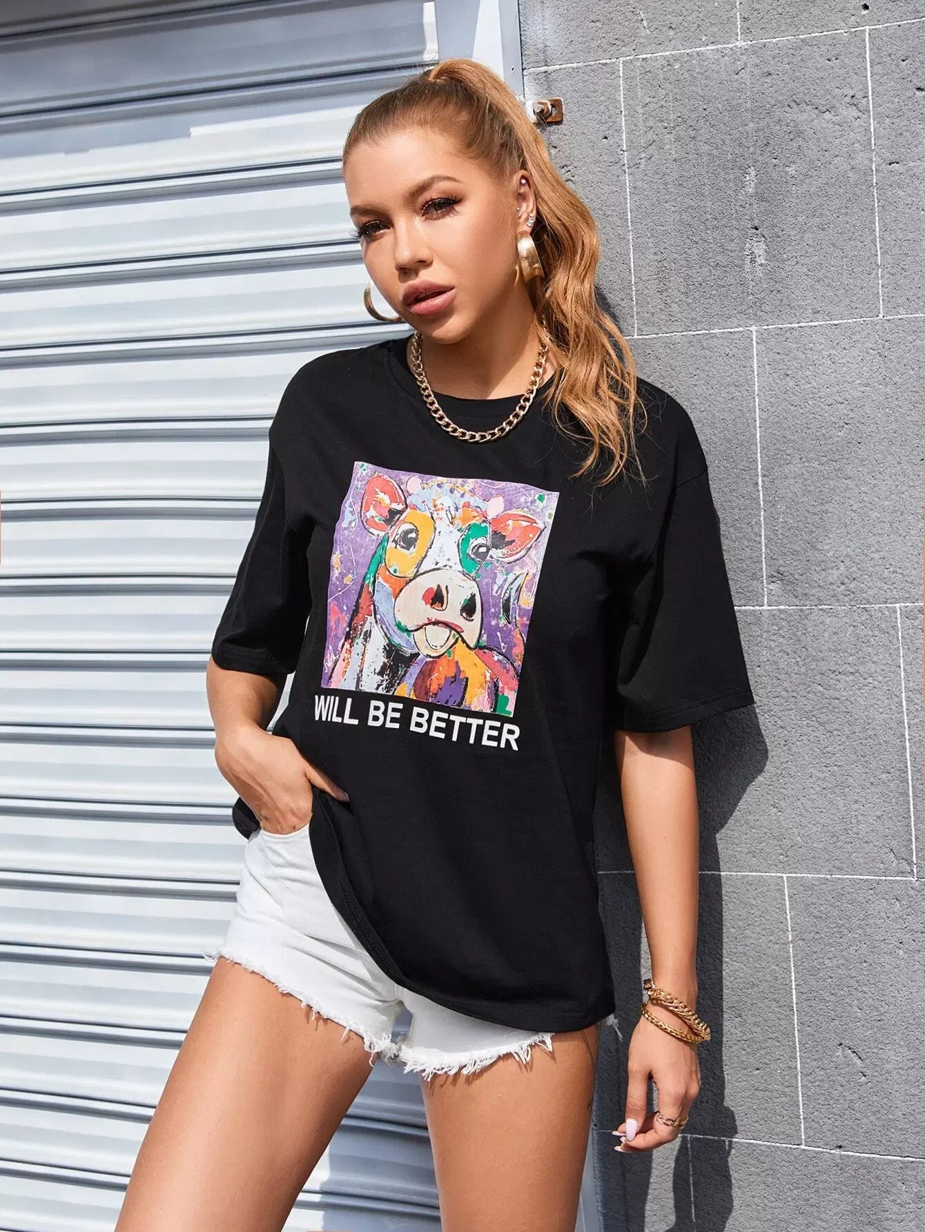 تي شيرت جرافيك على شكل حيوان وشعار