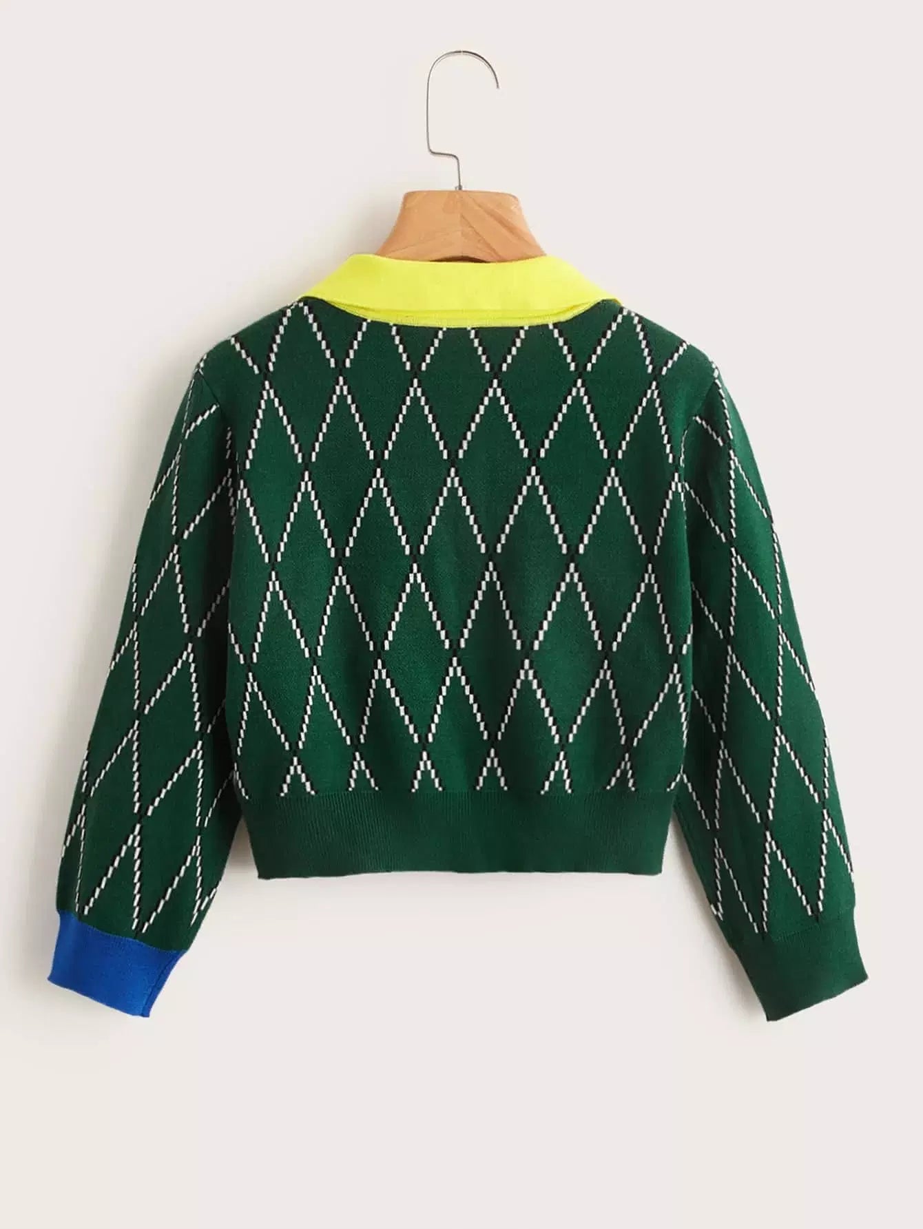 كنزة بياقة بياقة نصف زر بنقشة أرجيل بلون مغاير