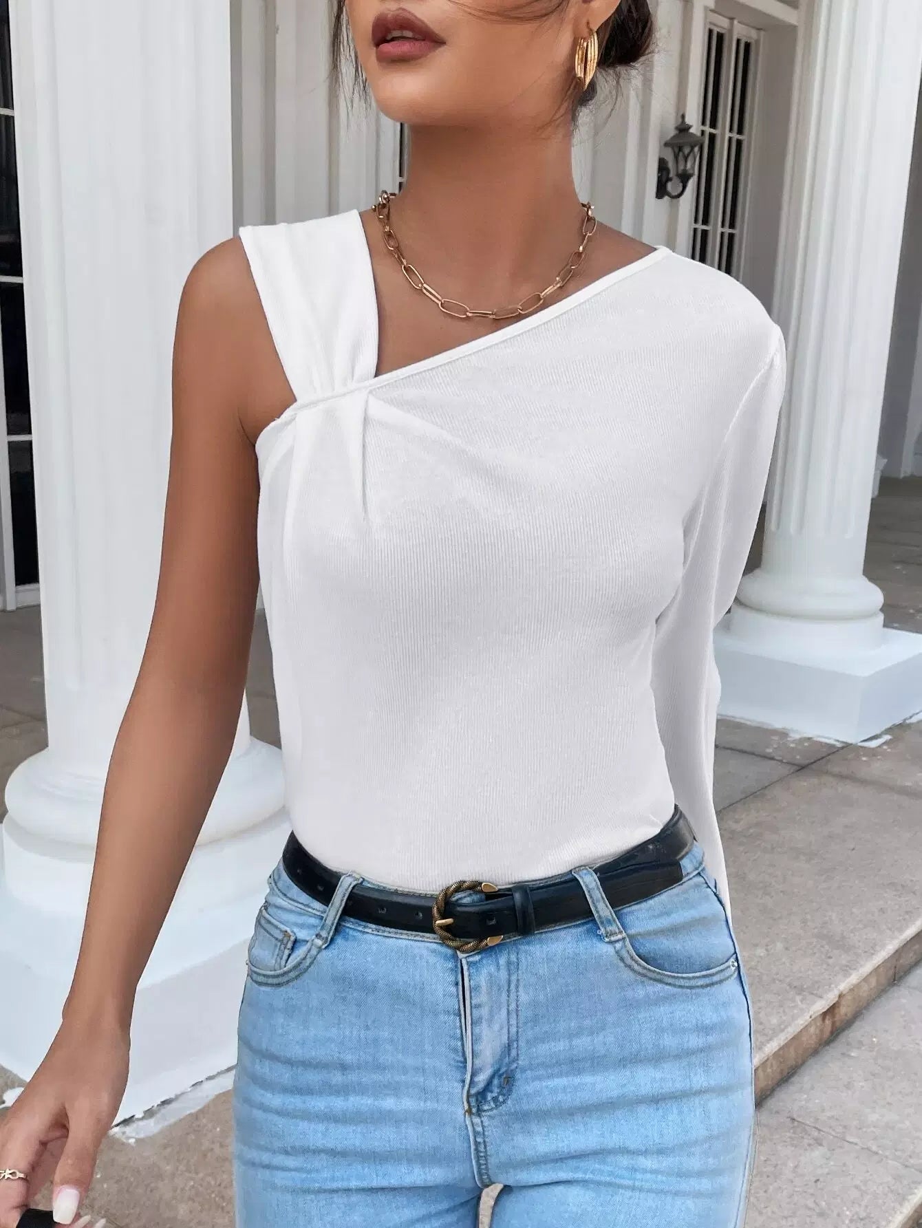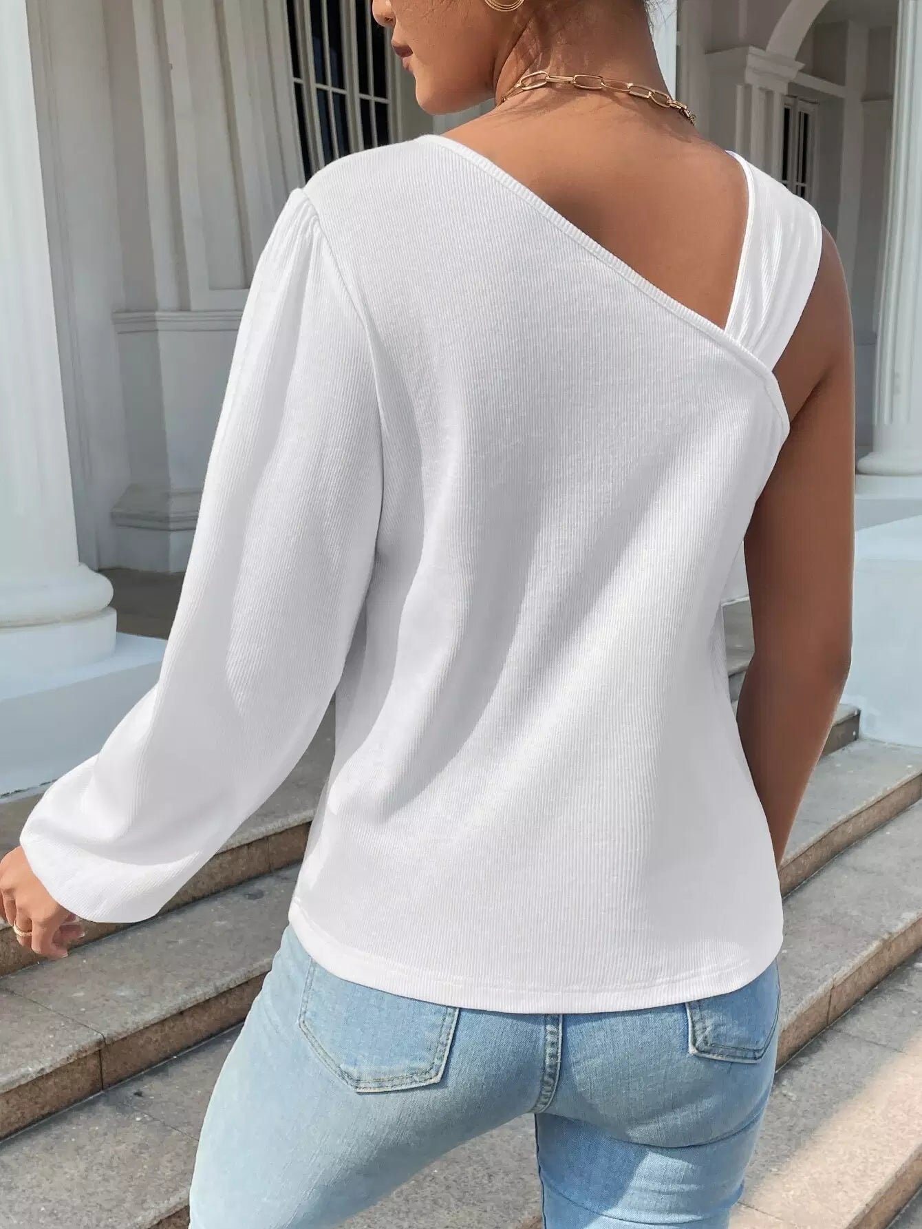 تي شيرت سادة برقبة غير متماثلة