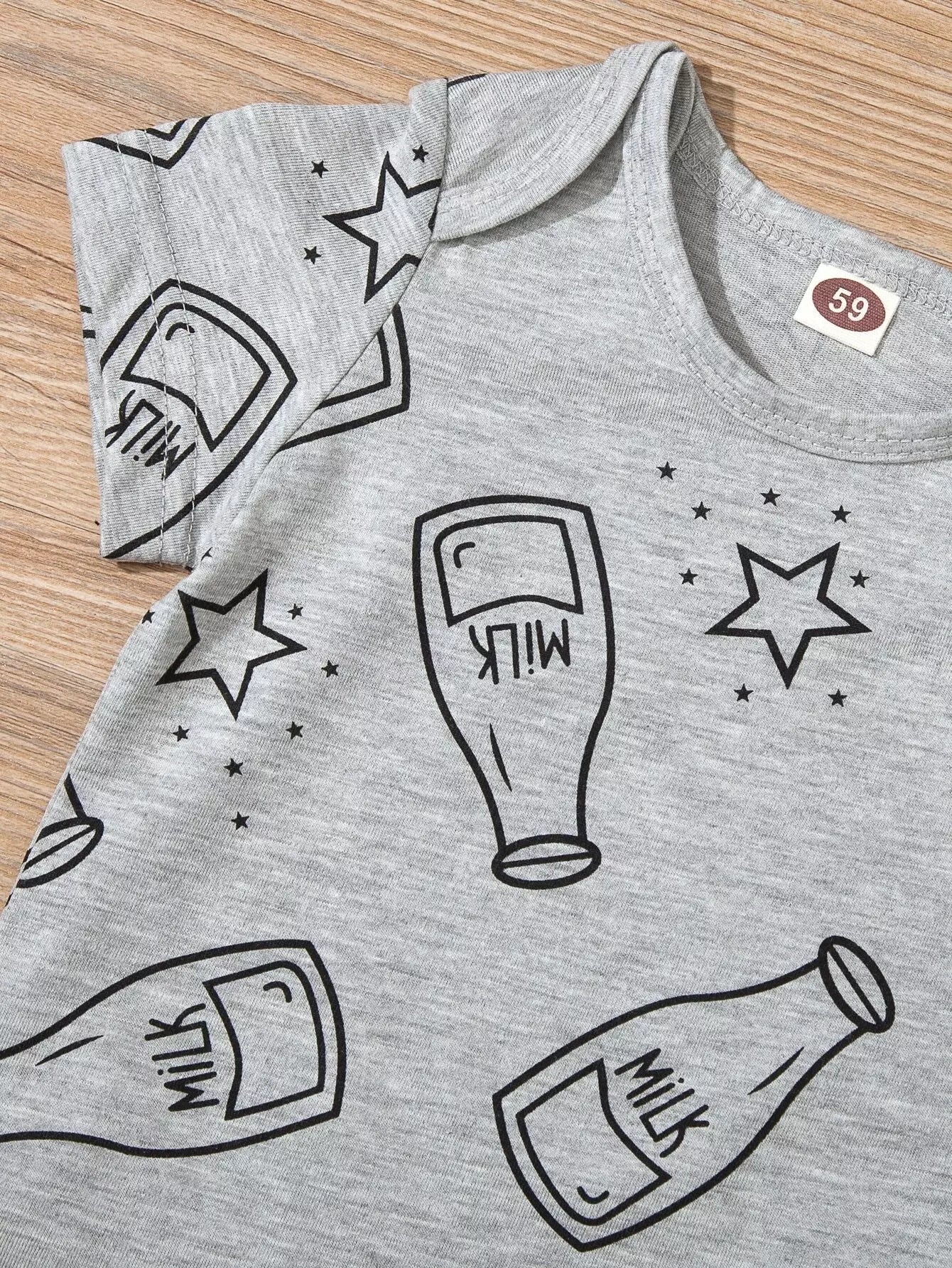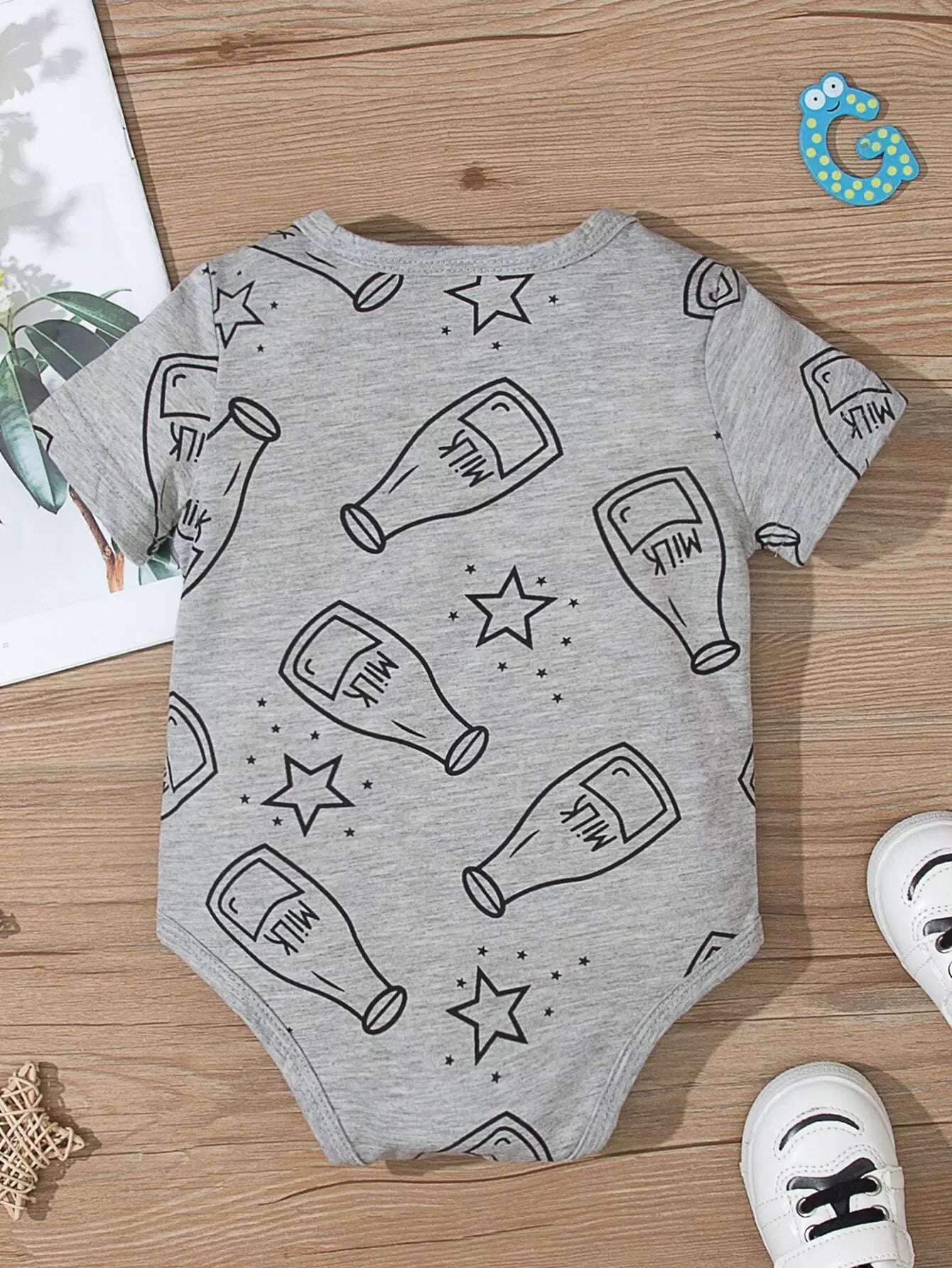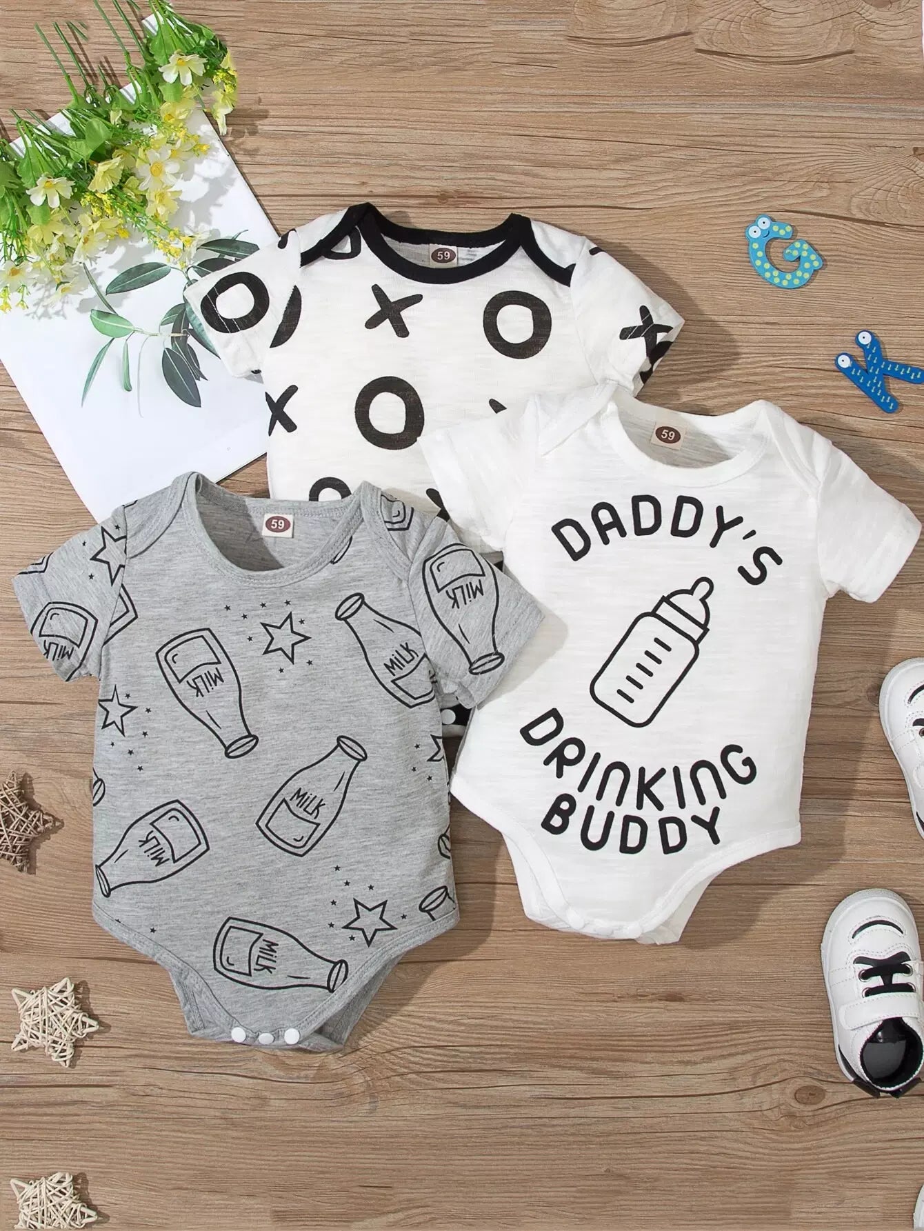 طقم رضيع 3 قطع لباس قطعة واحدة مزين بنجمة وشعار