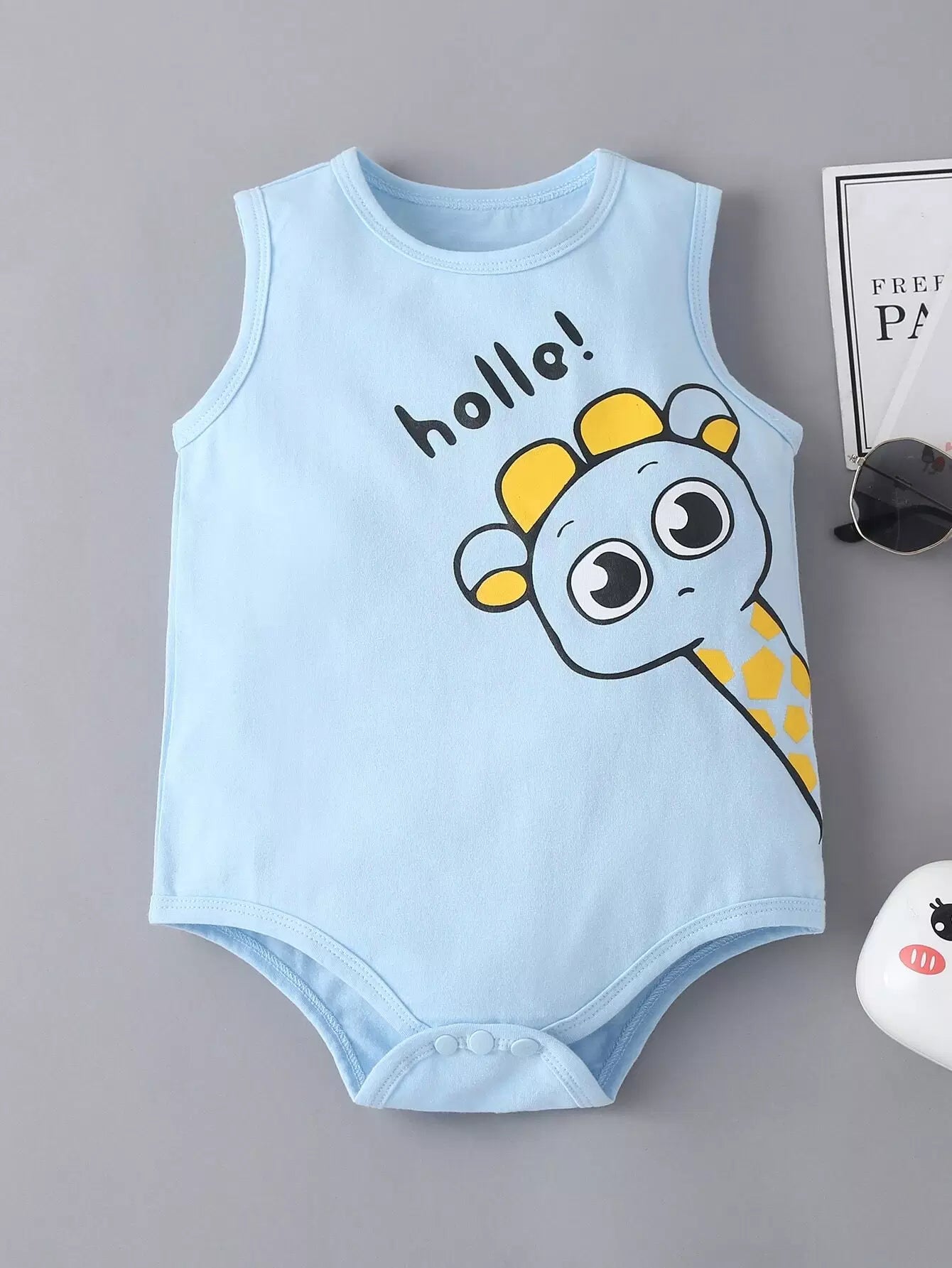 لباس رياضي بدون أكمام بنقشة زرافة كرتونية لطفل رضيع